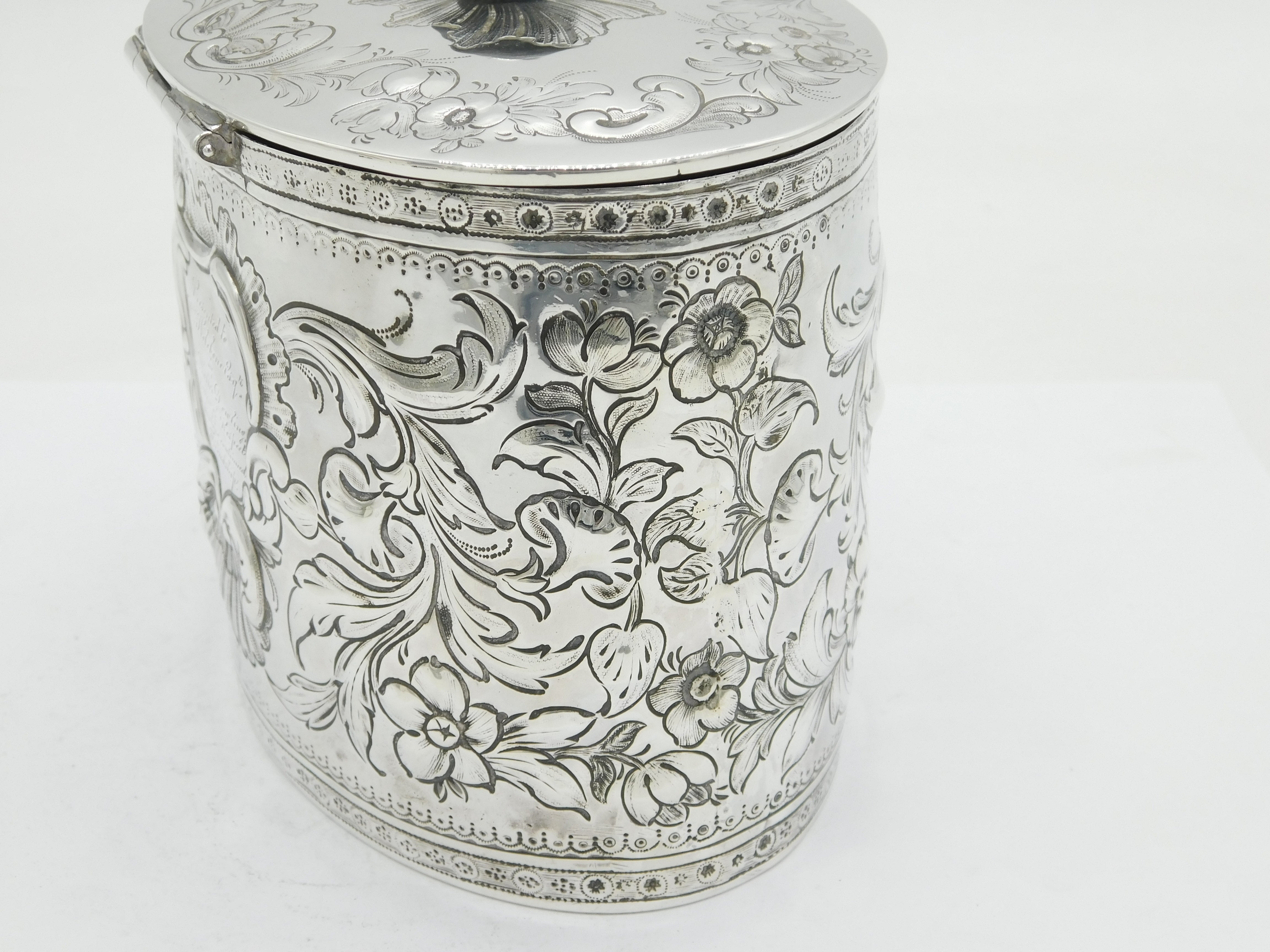 George III Sterling Silver Floral Pattern Tea Caddy Antique 1783 London