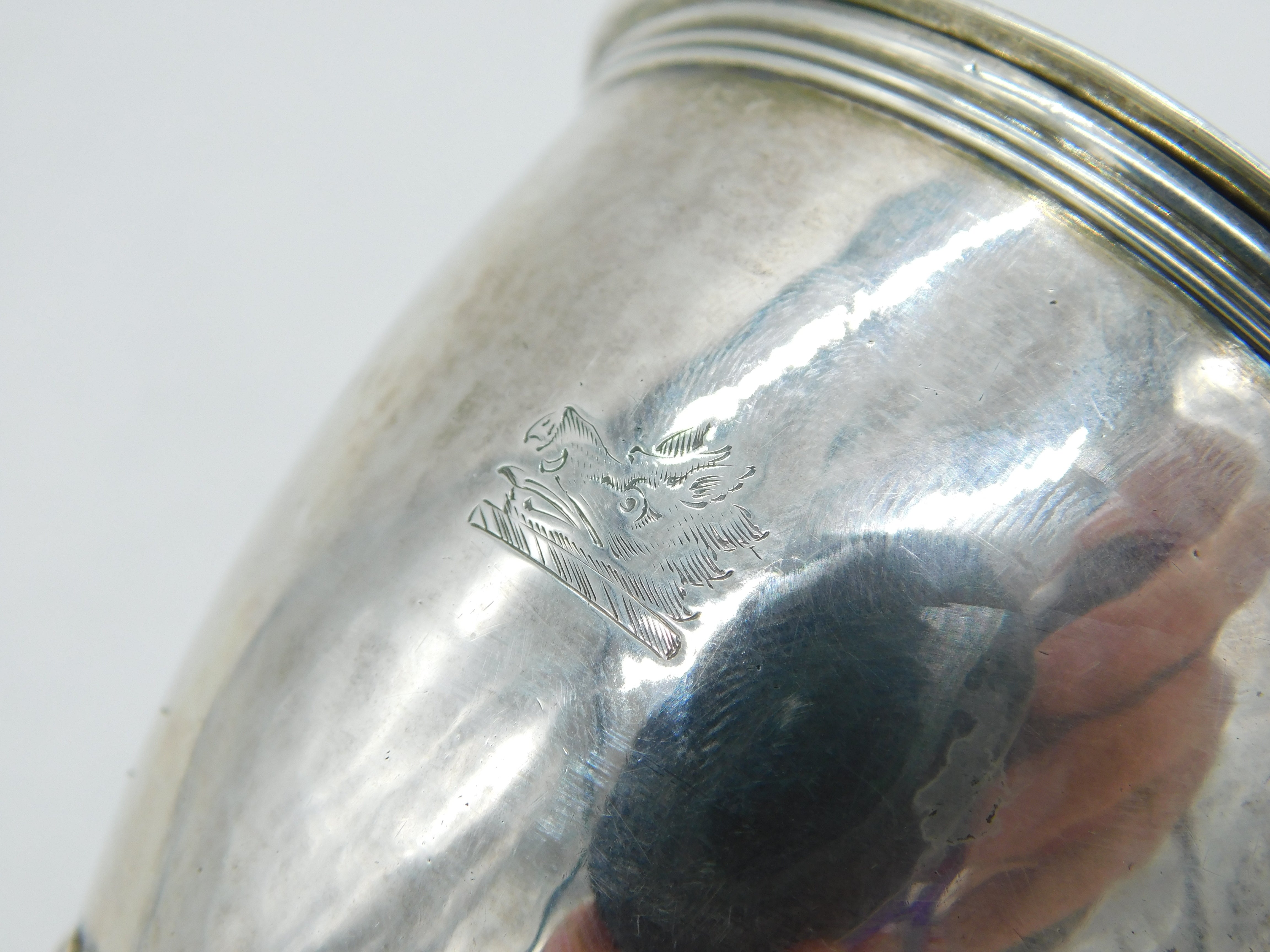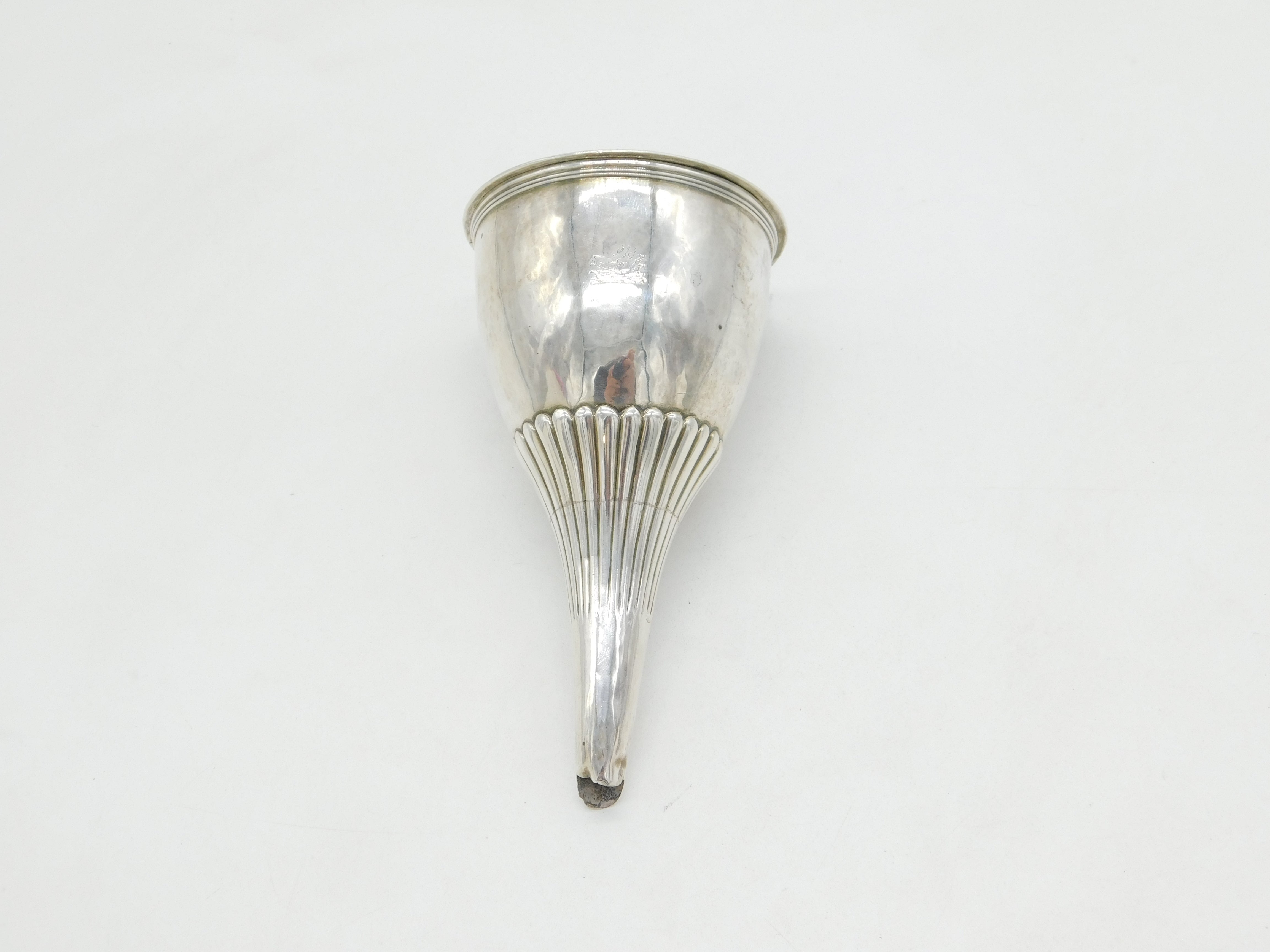 George III Sterling Silver Fluted Heraldic Crest Wine Funnel Antique 1800 London