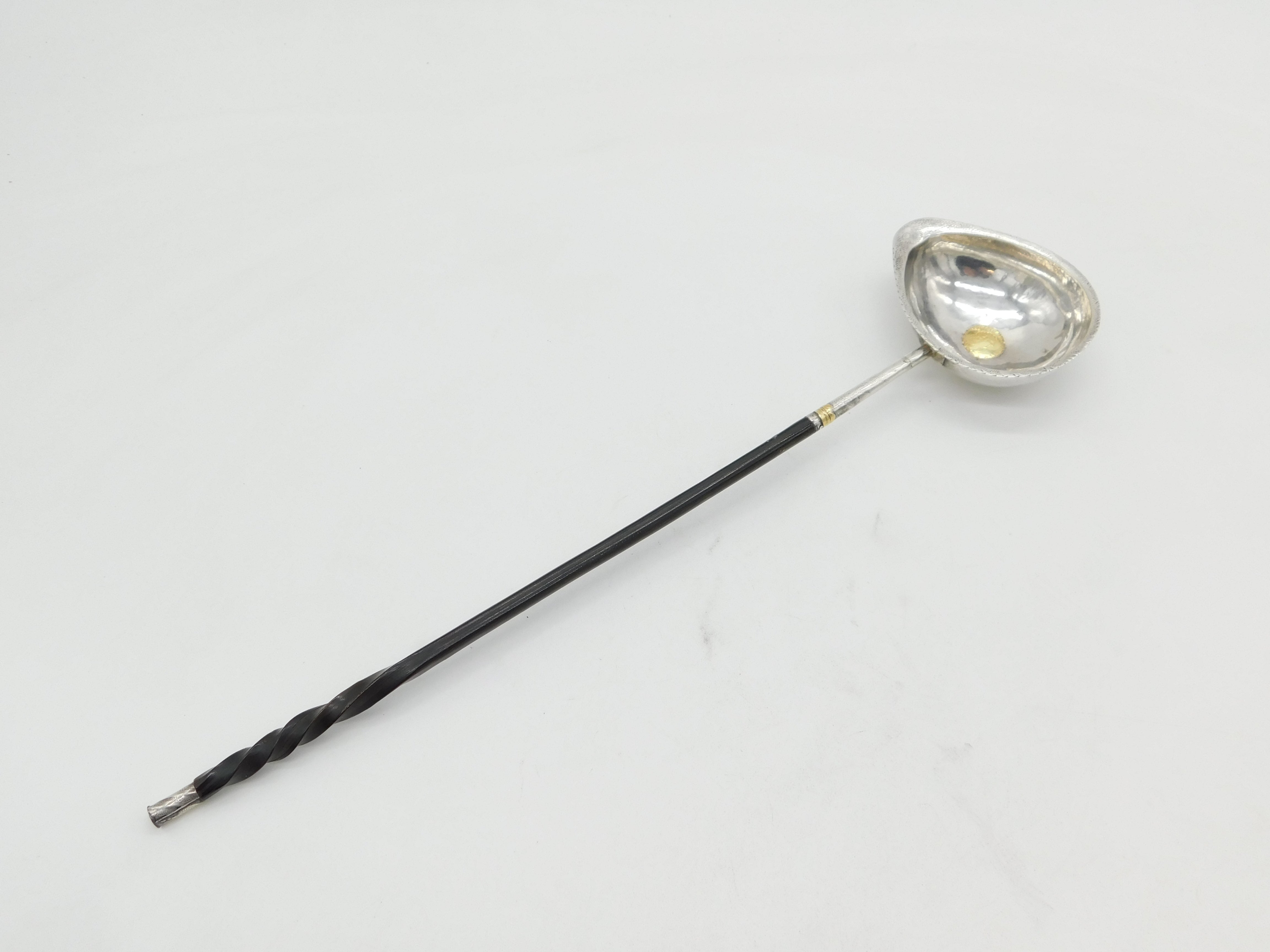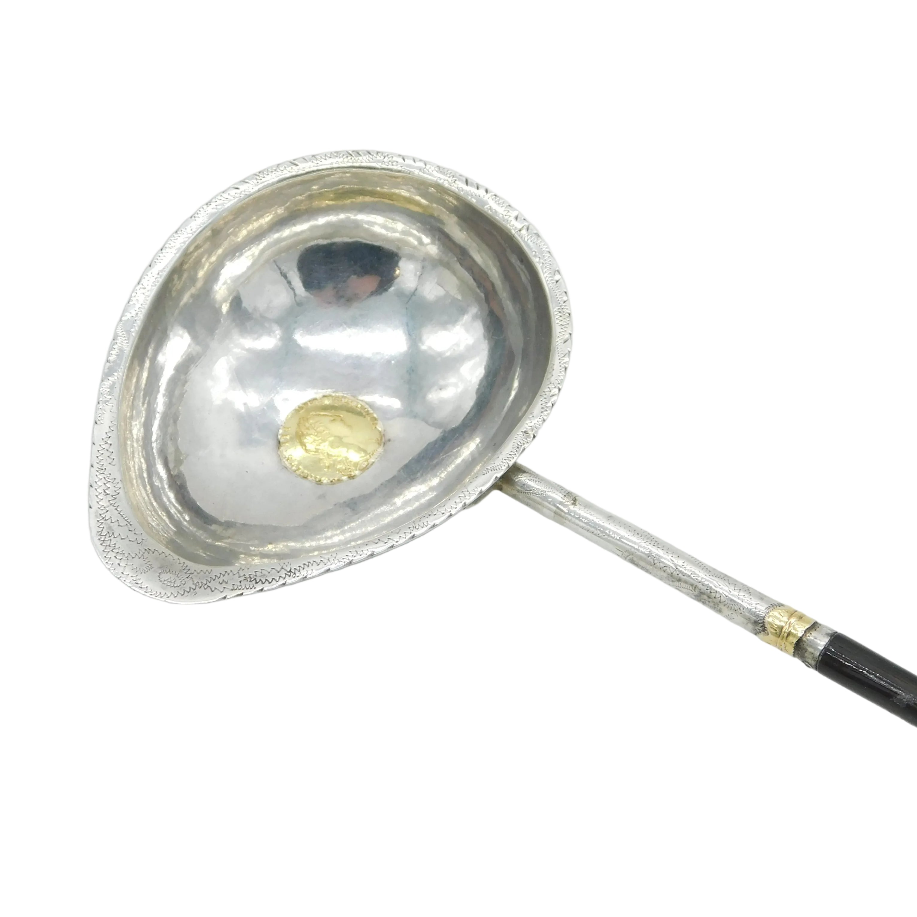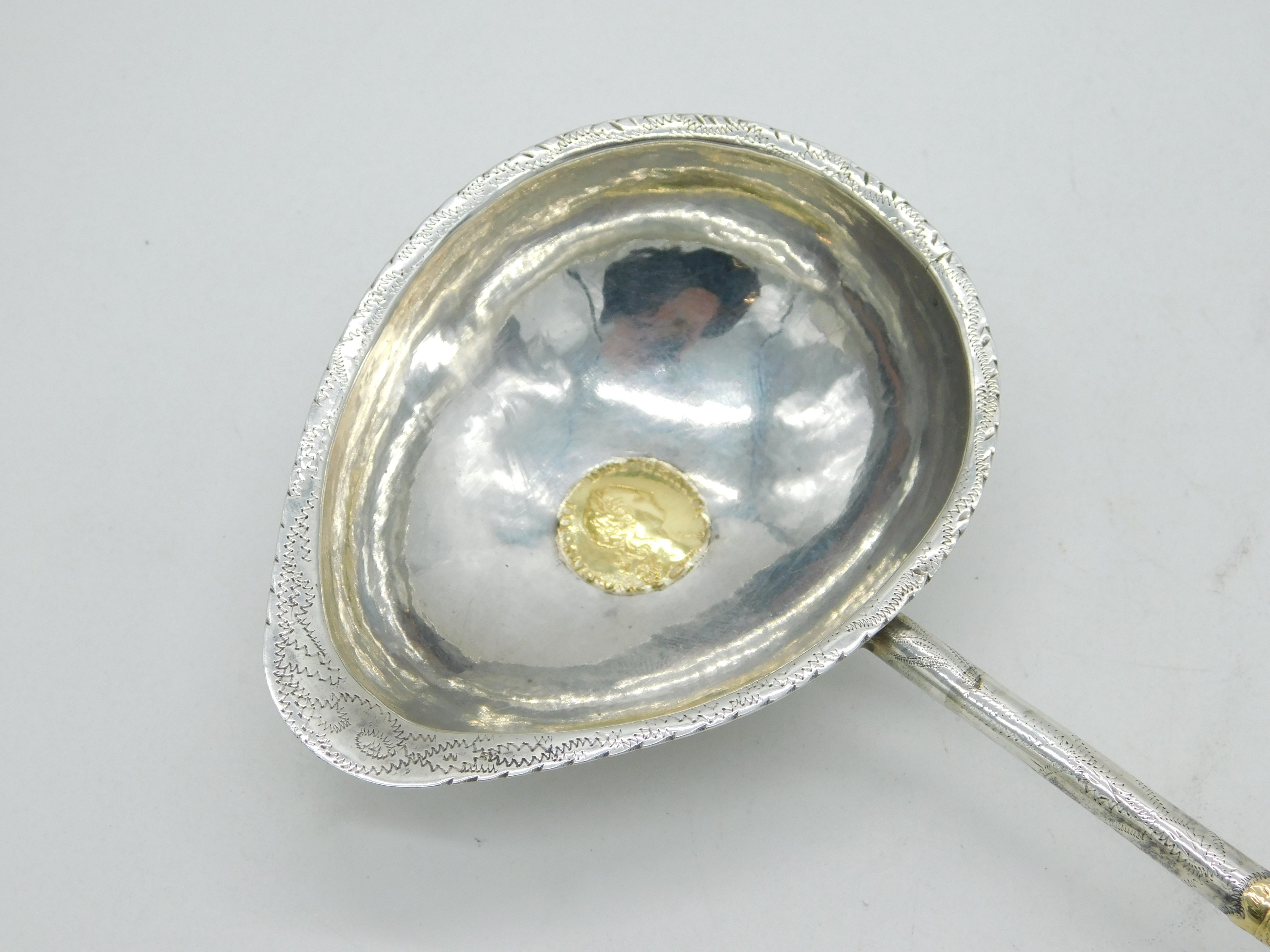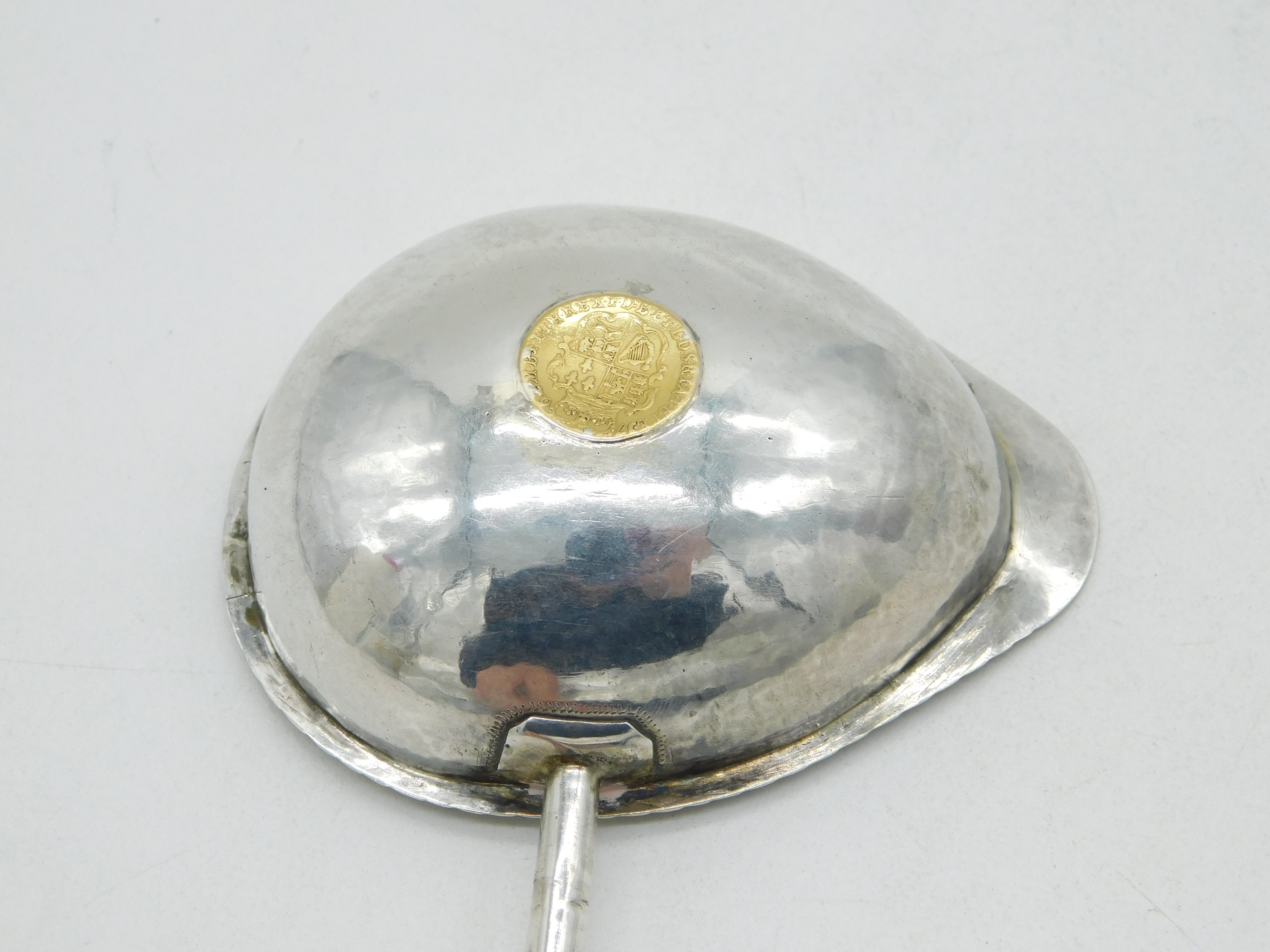 George III Sterling Silver & Gold Quarter Guinea Coin Set Toddy Ladle Antique