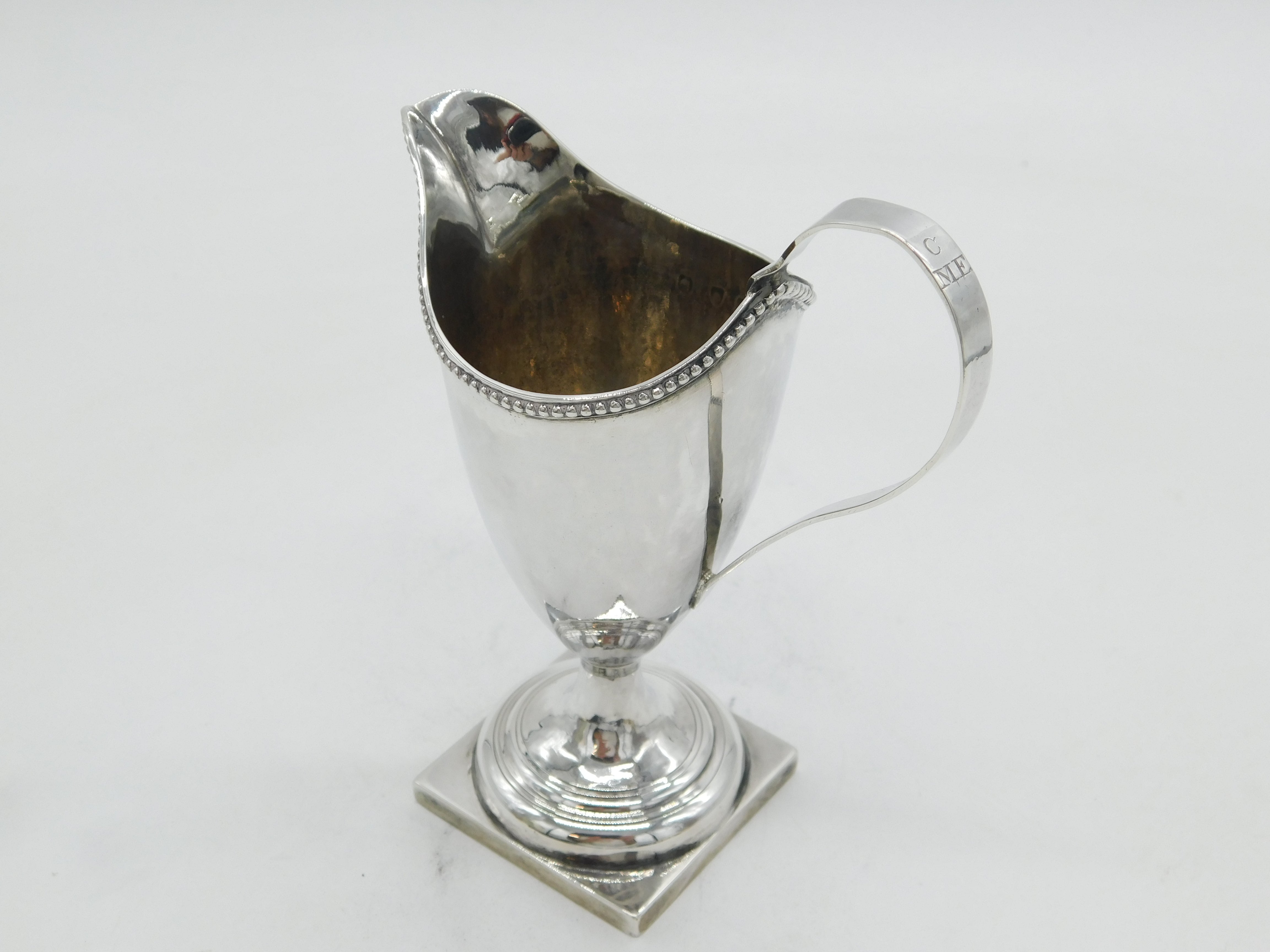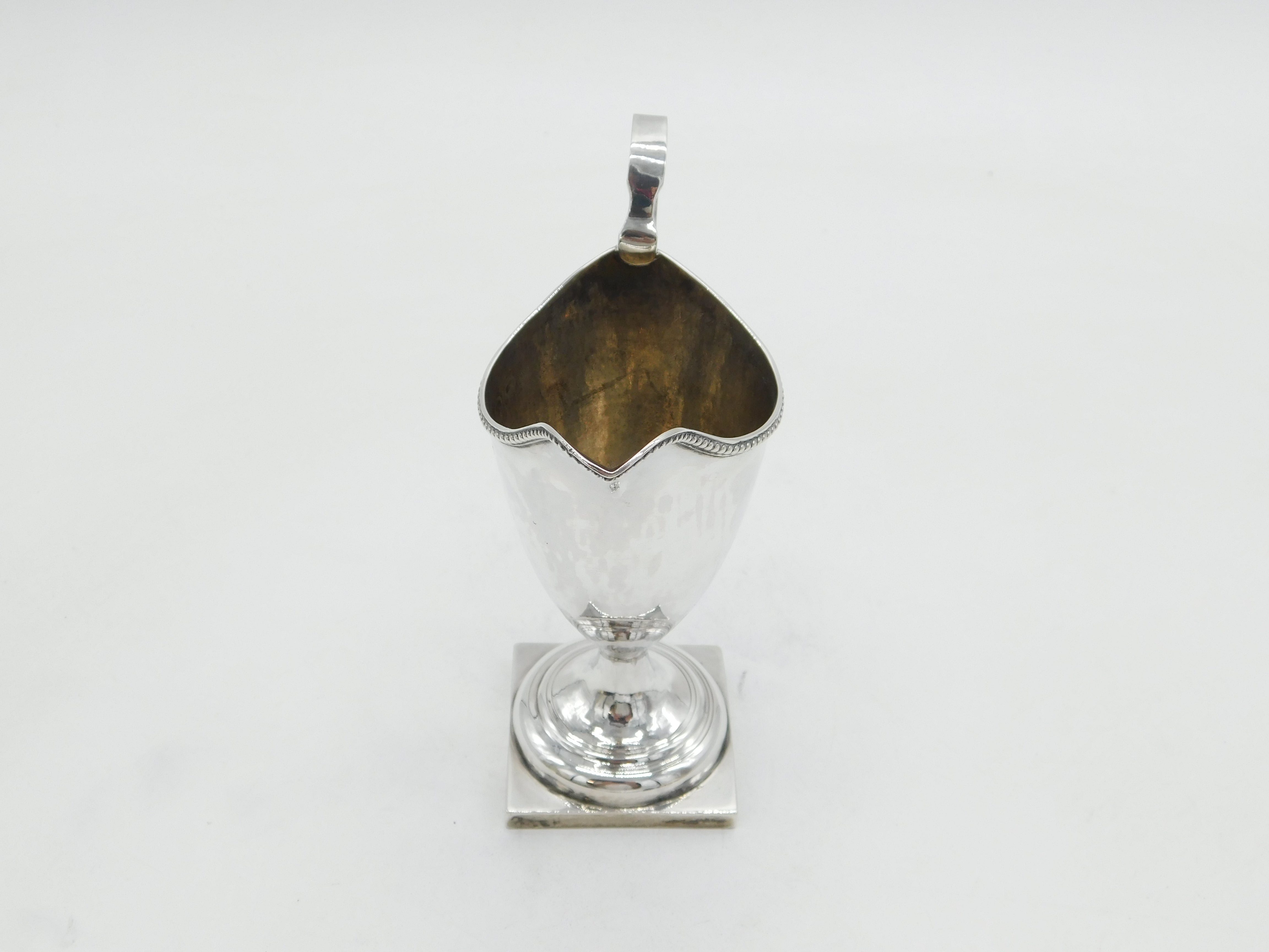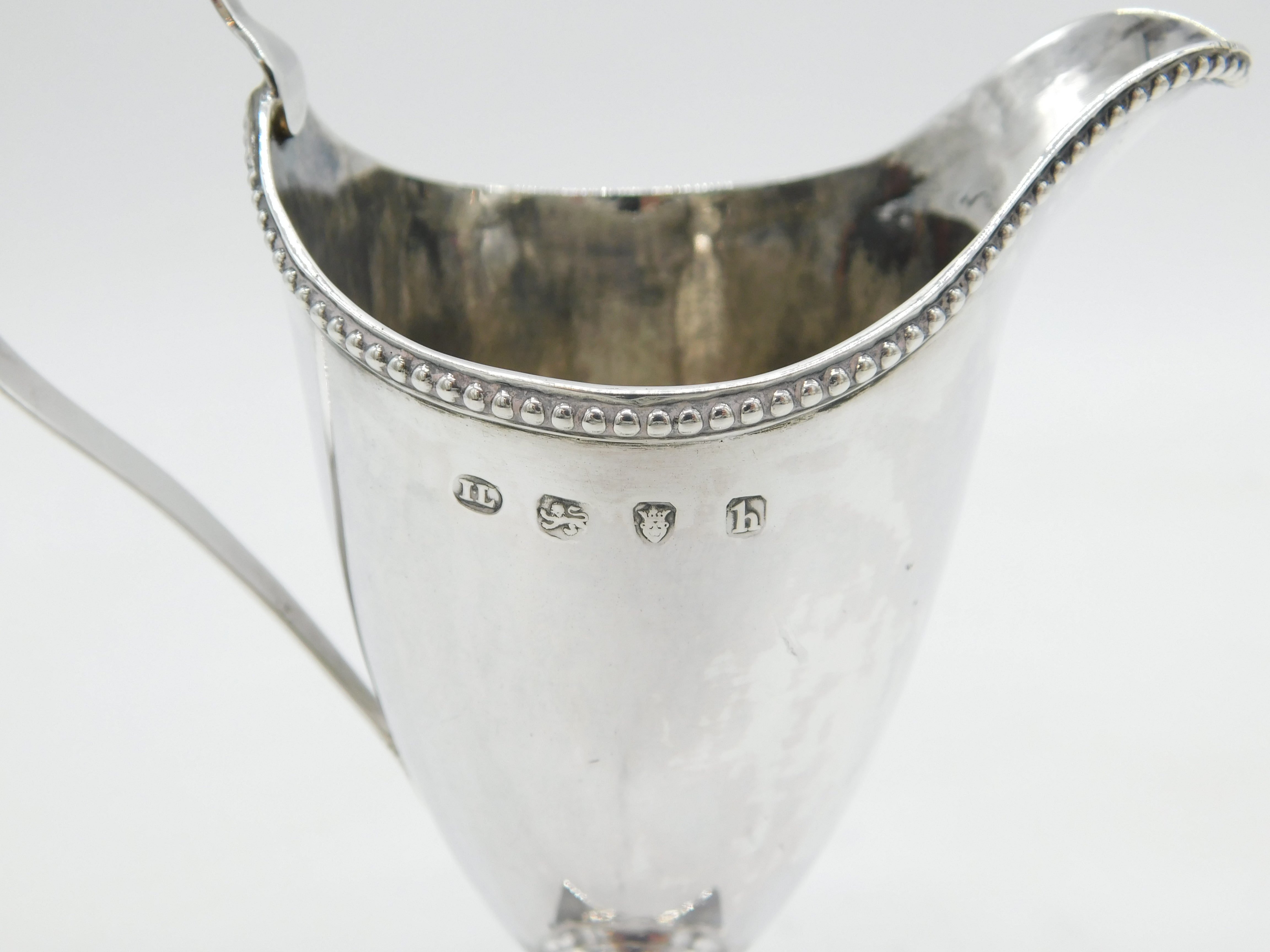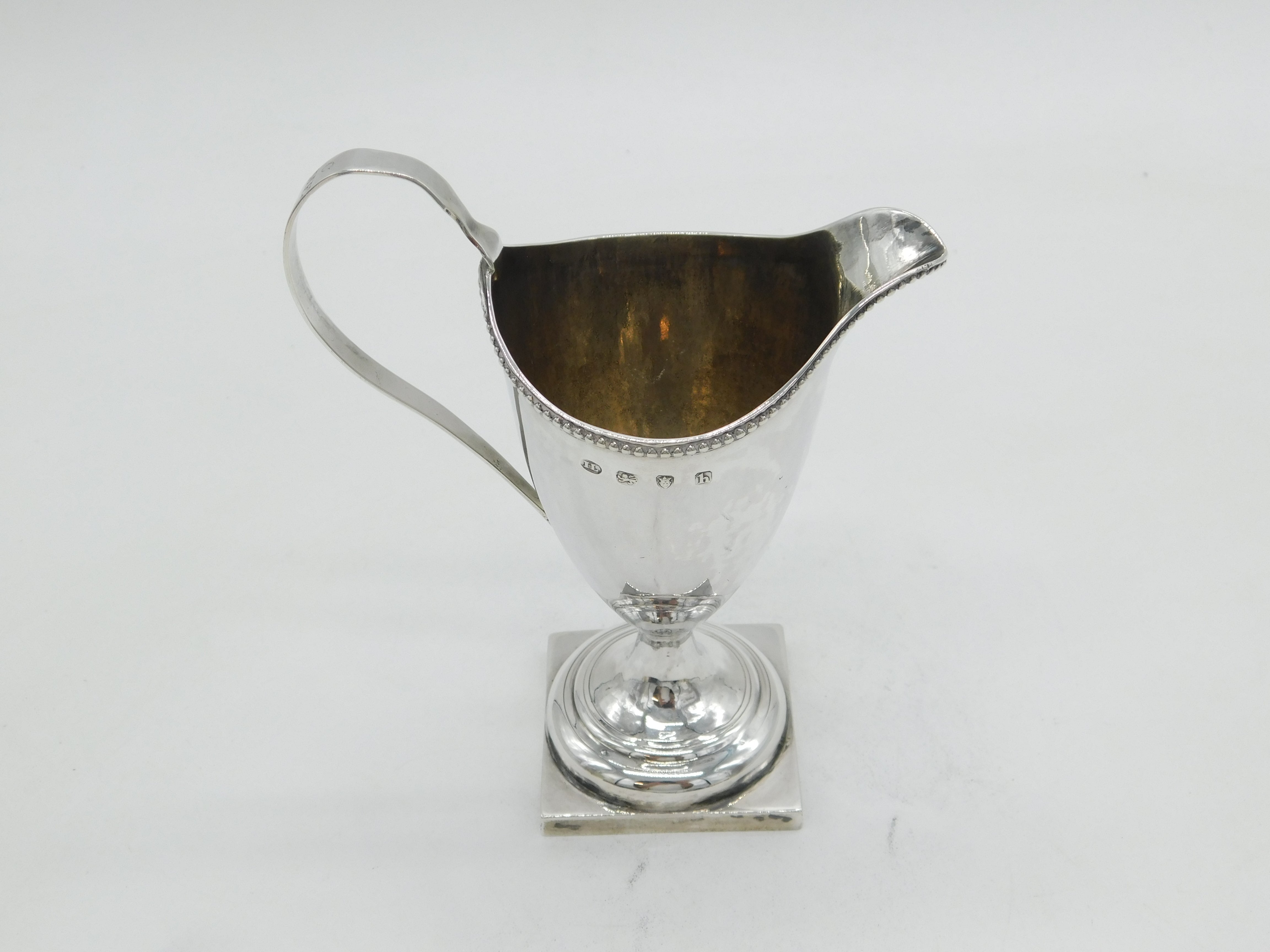 Details: A fantastic and wonderfully designed antique georgian sterling silver helmet cream jug with lovely detailing to include beaded edging hallmarked London 1783 to the top edge. This is a wonderful item that would make a perfect gift or addition to any collection.