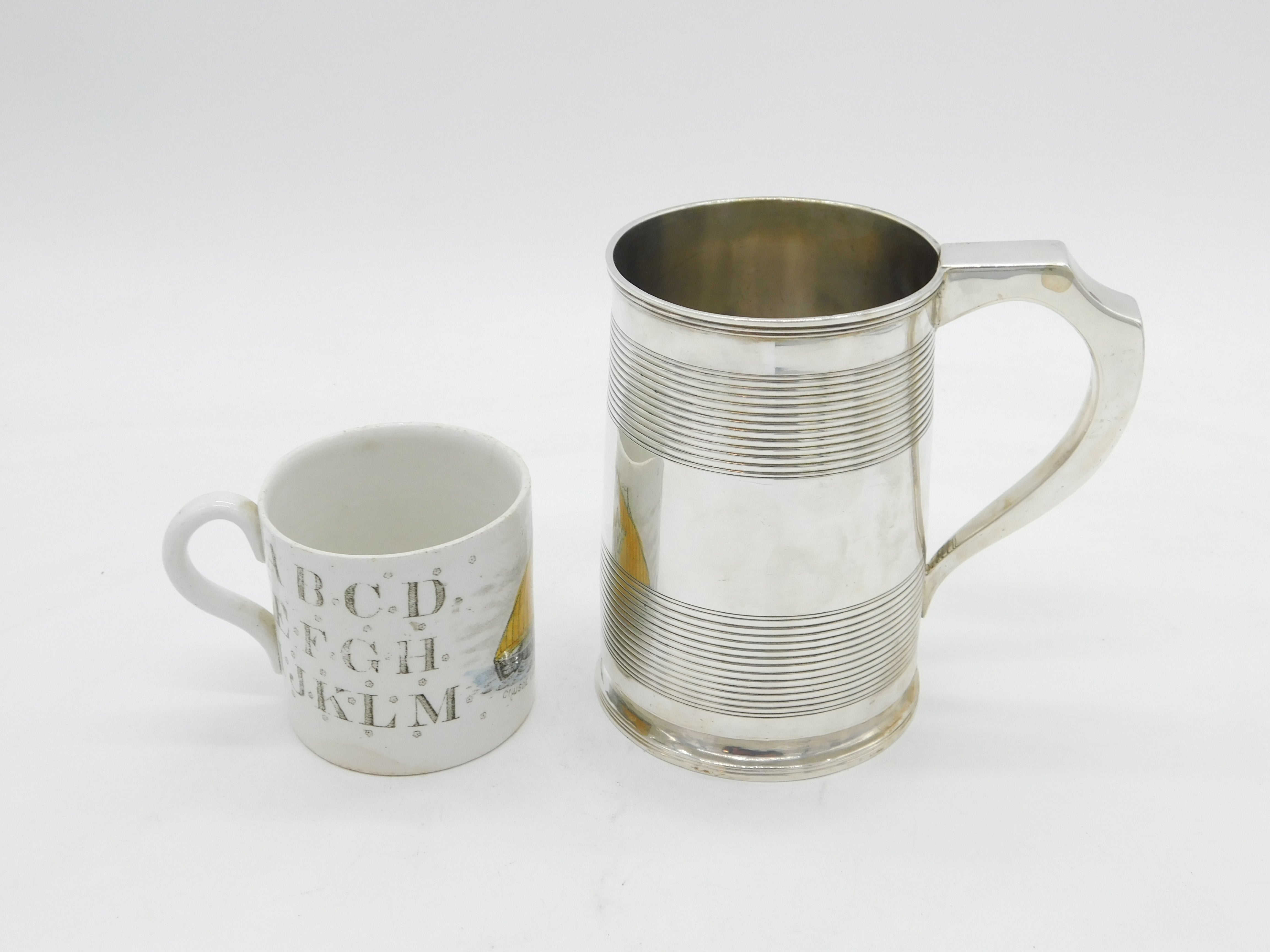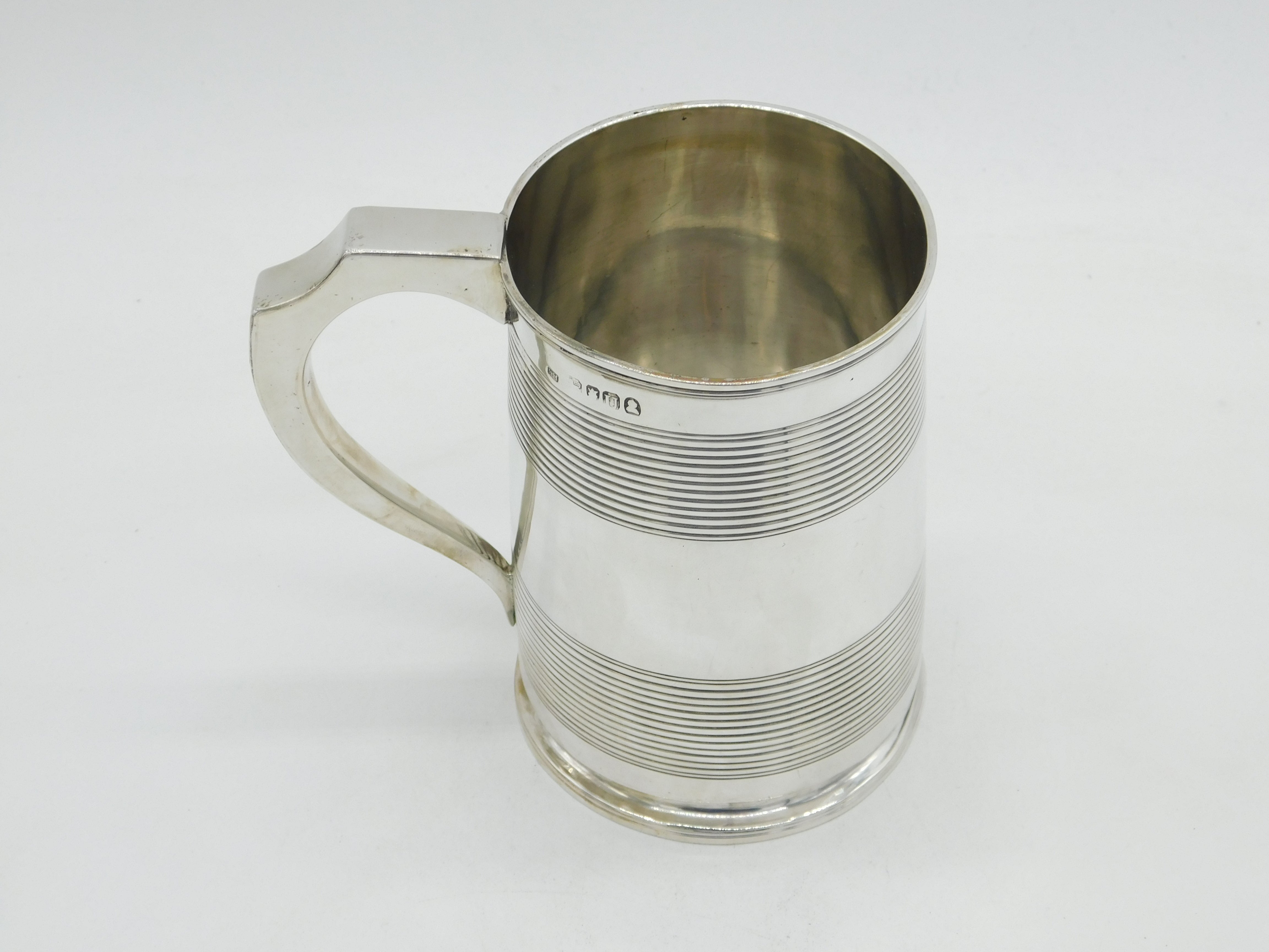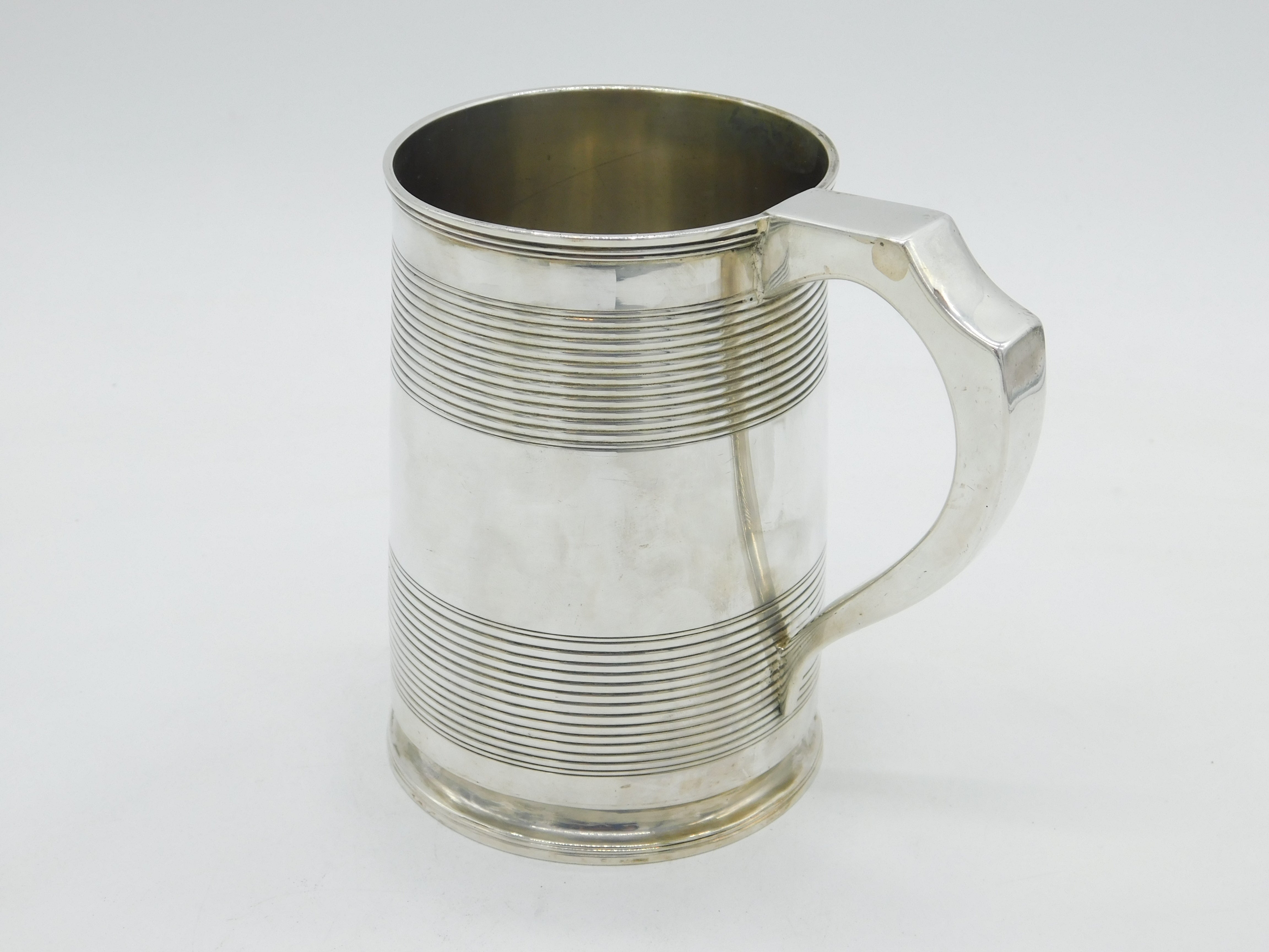 George III Sterling Silver Lined Pattern Pint Tankard Antique 1815 London