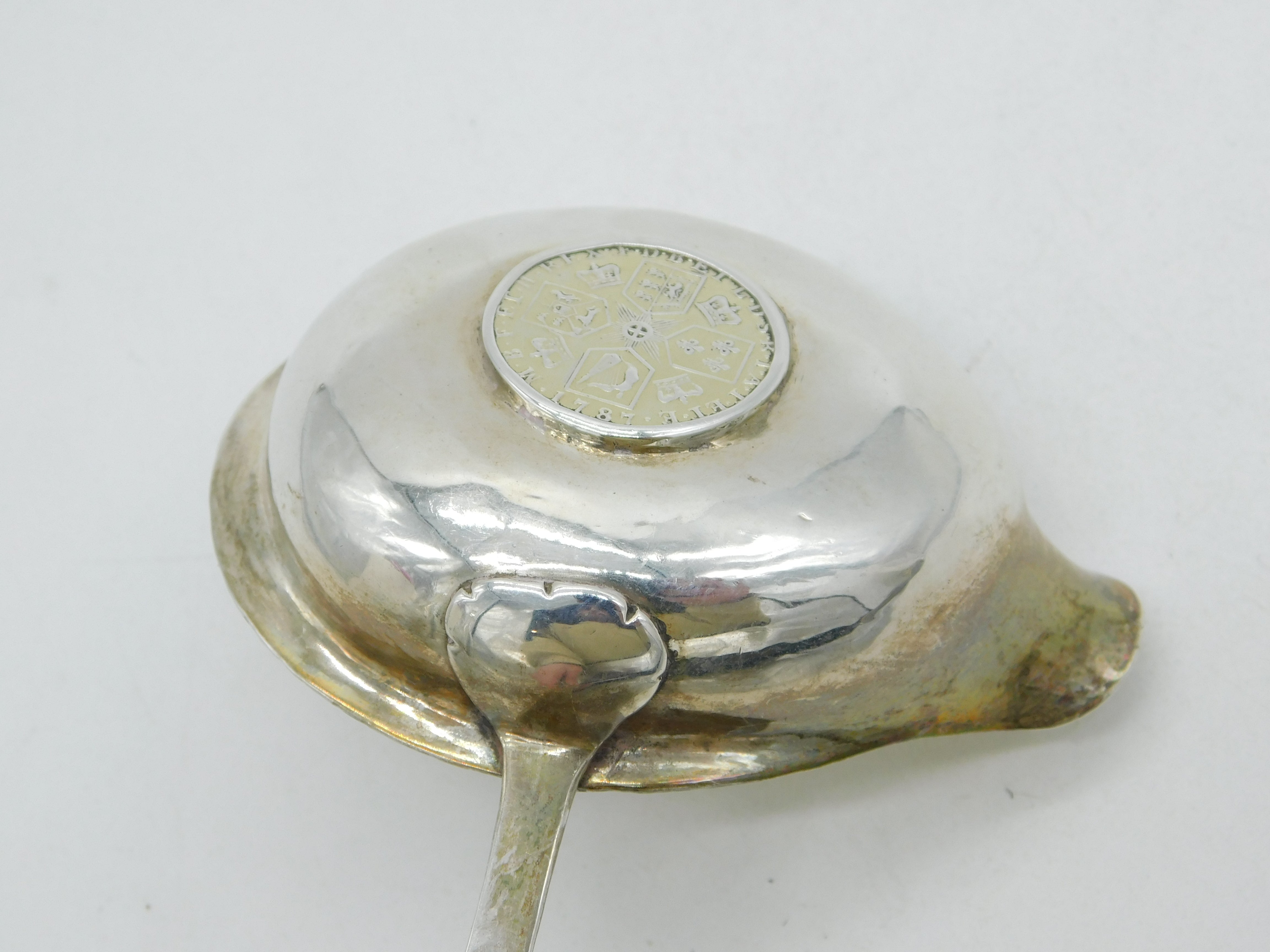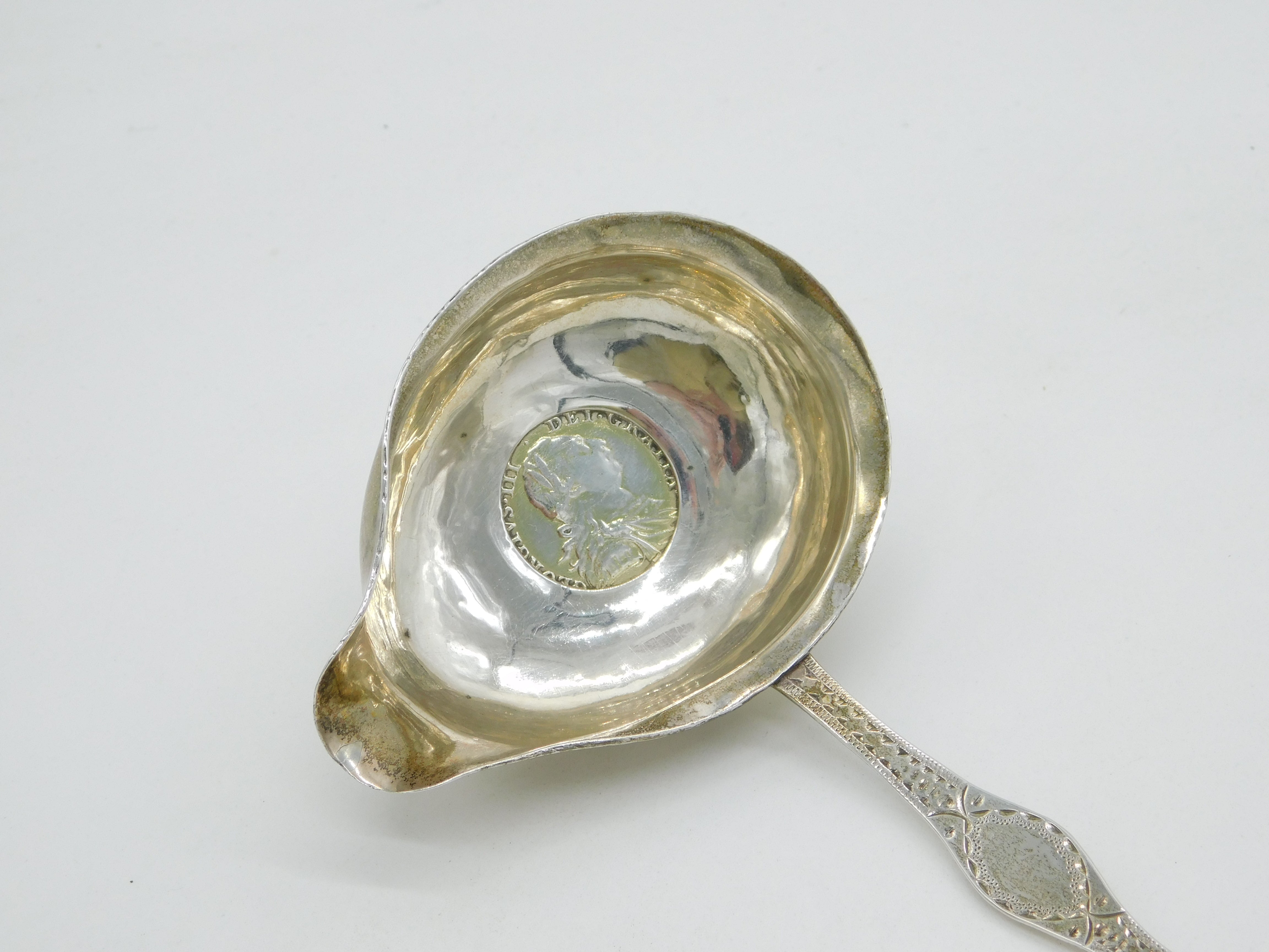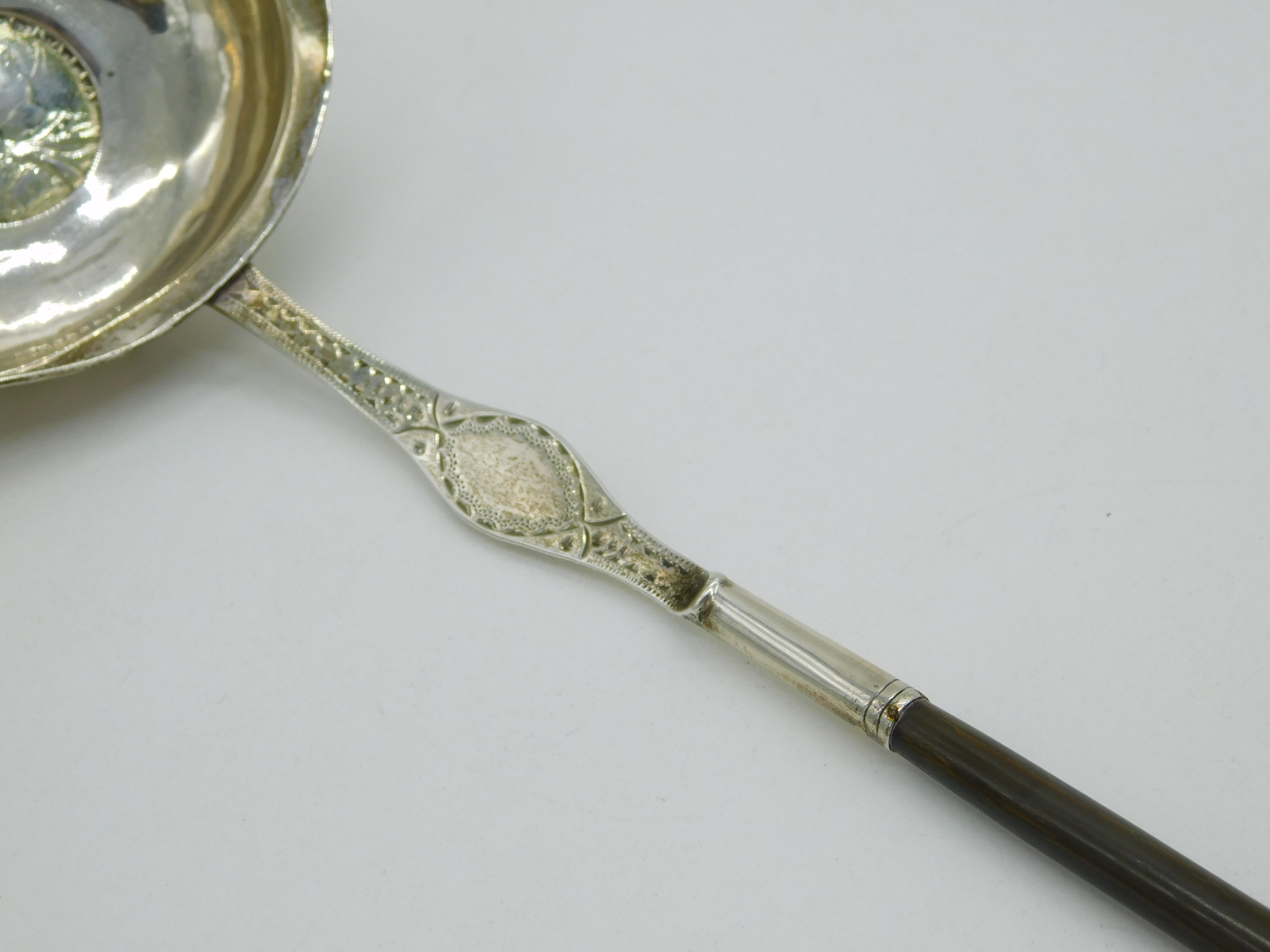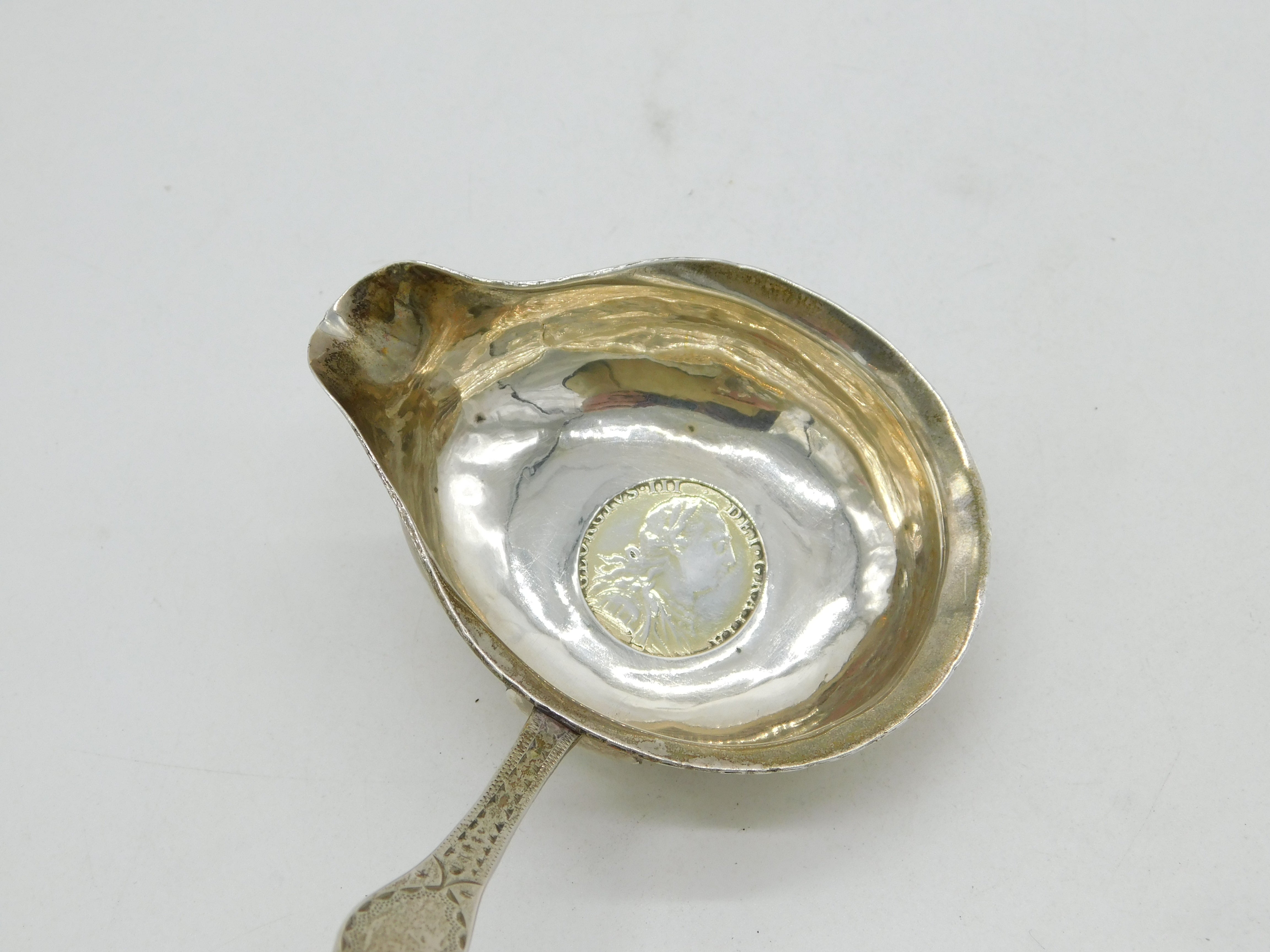 George III Sterling Silver Long Handled Shilling Coin Set Toddy Ladle Antique c1790