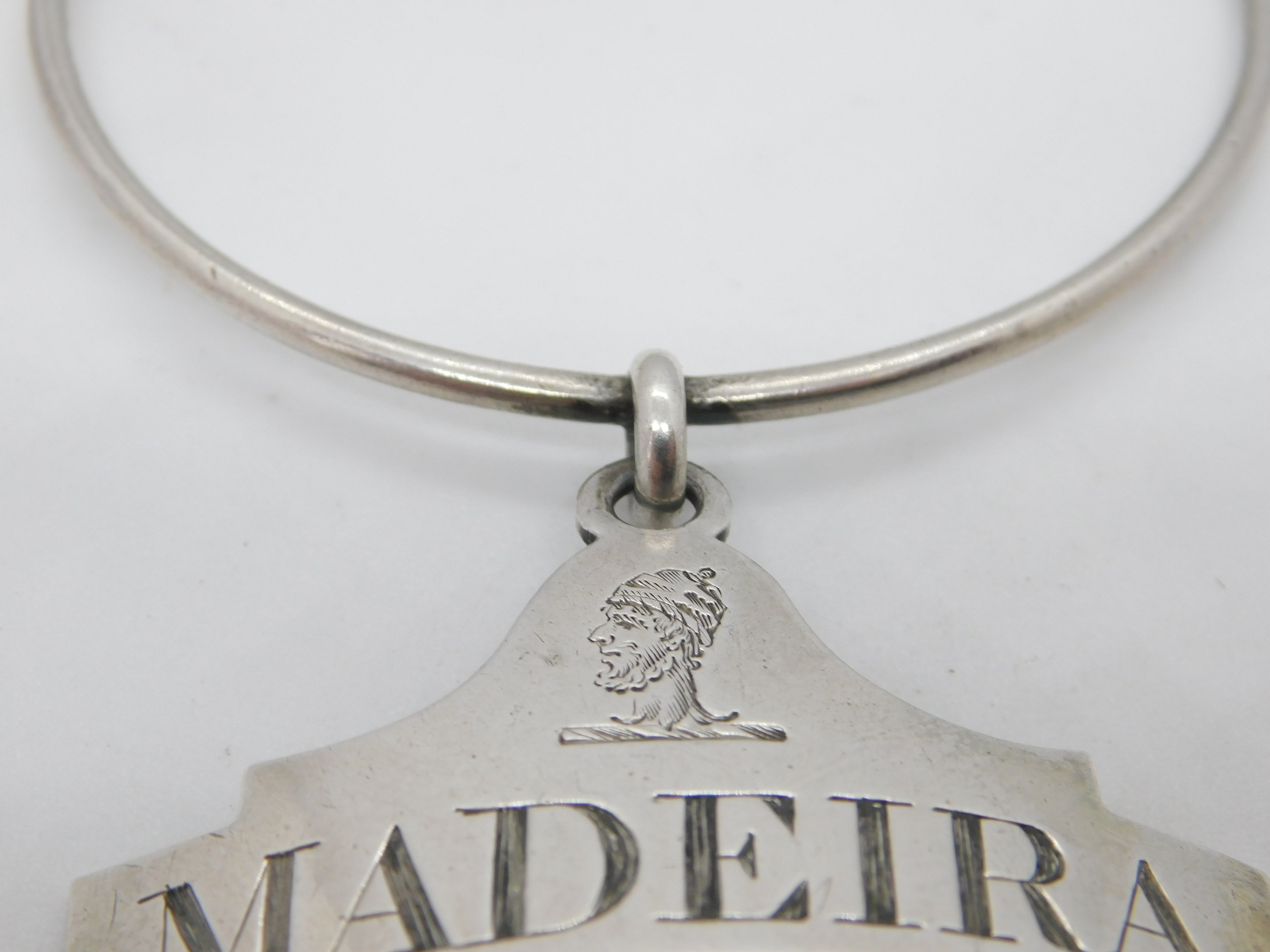 Details: A fantastic and wonderfully designed antique Georgian sterling silver bright cut madeira bottle neck collar label with charming crest above the writing hallmarked London 1805 by Robert Garrard I notable for his production of labels and collars. This is a wonderful item that would make a perfect gift or addition to any collection. The BOX pictured is for PRESENTATION ONLY and is NOT included in the listings but used to frame the pictures unless specifically stated otherwise.
