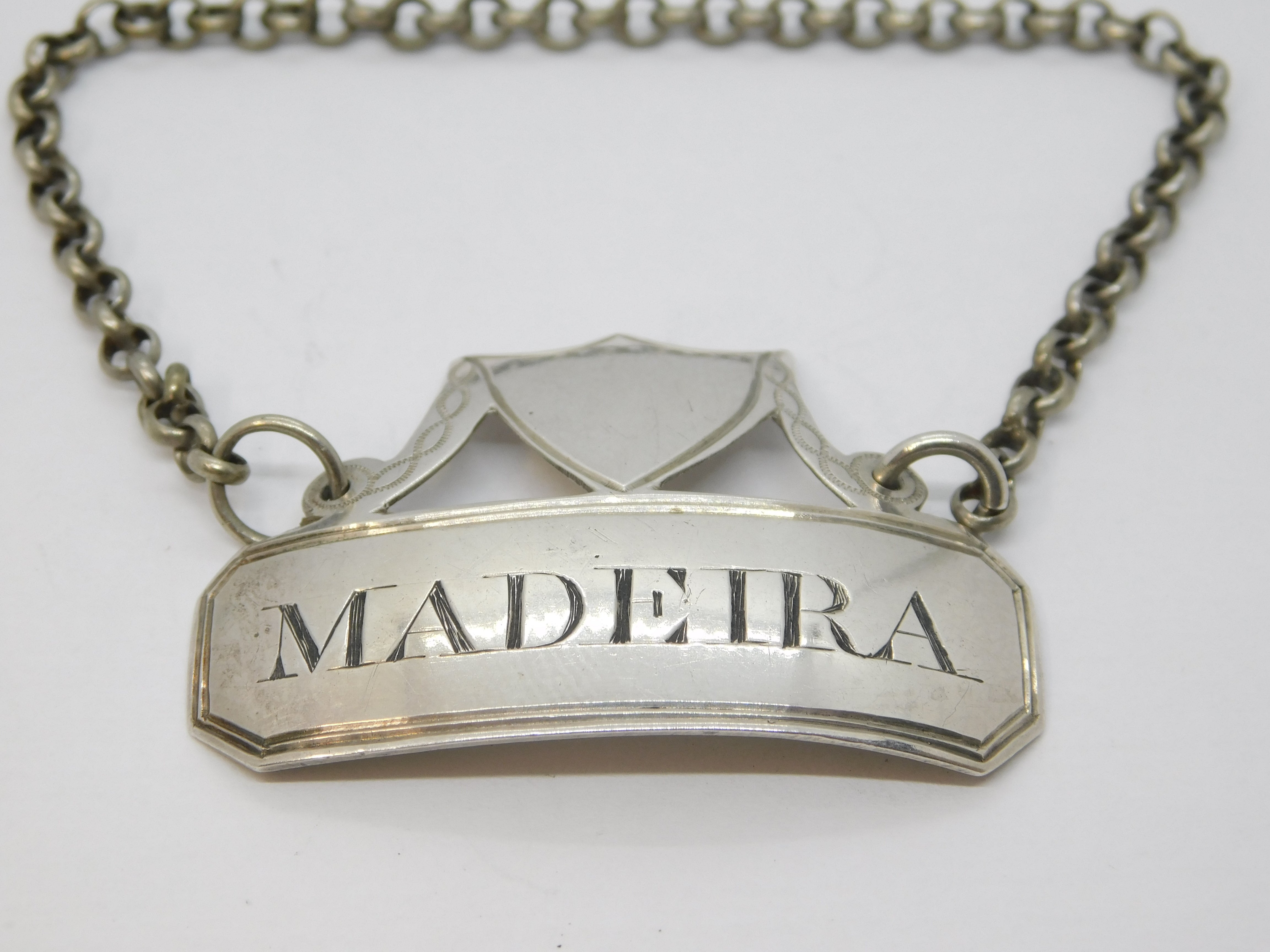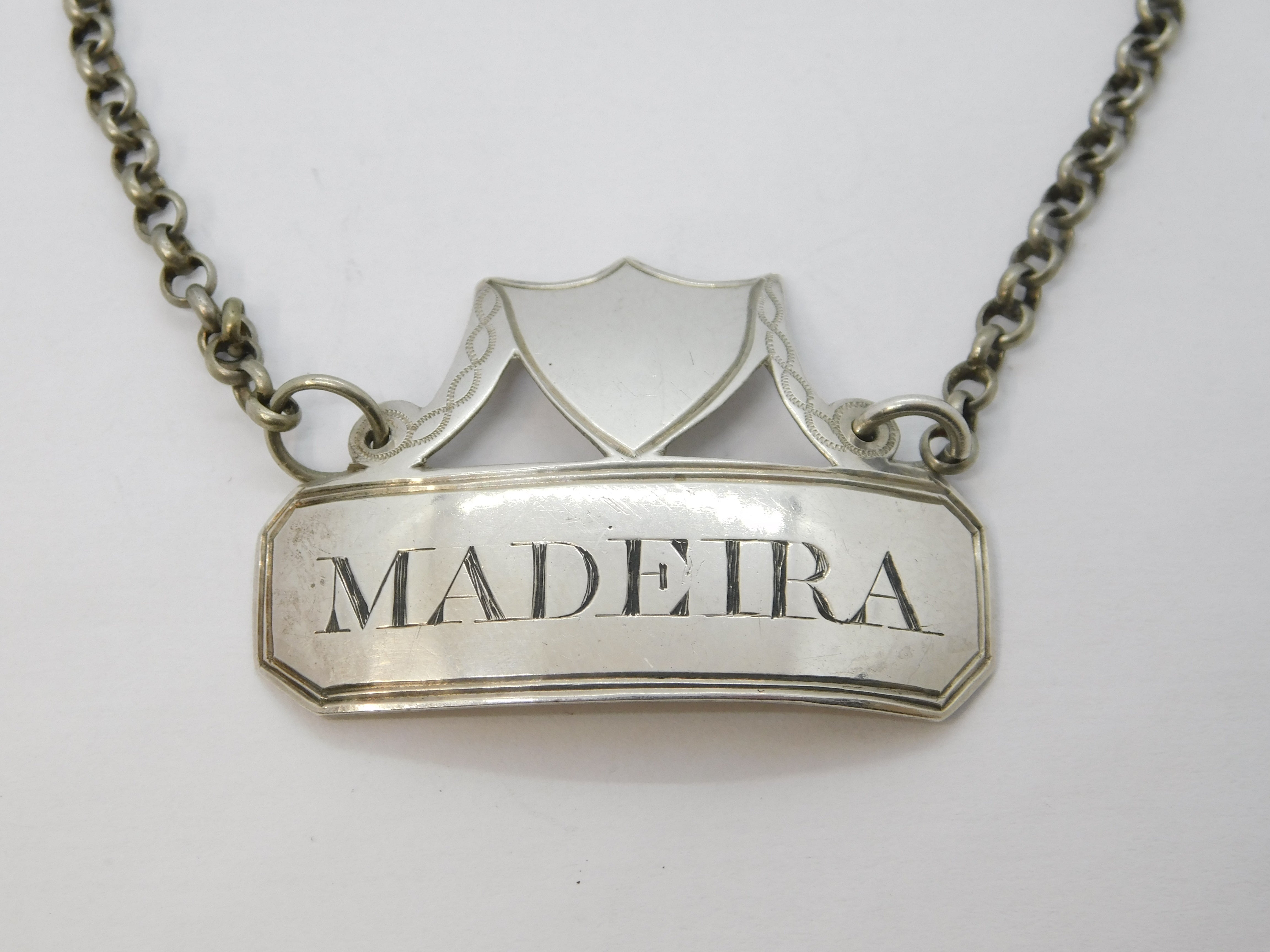 George III Sterling Silver Madeira Shield Decanter Label Antique 1795 Birmingham