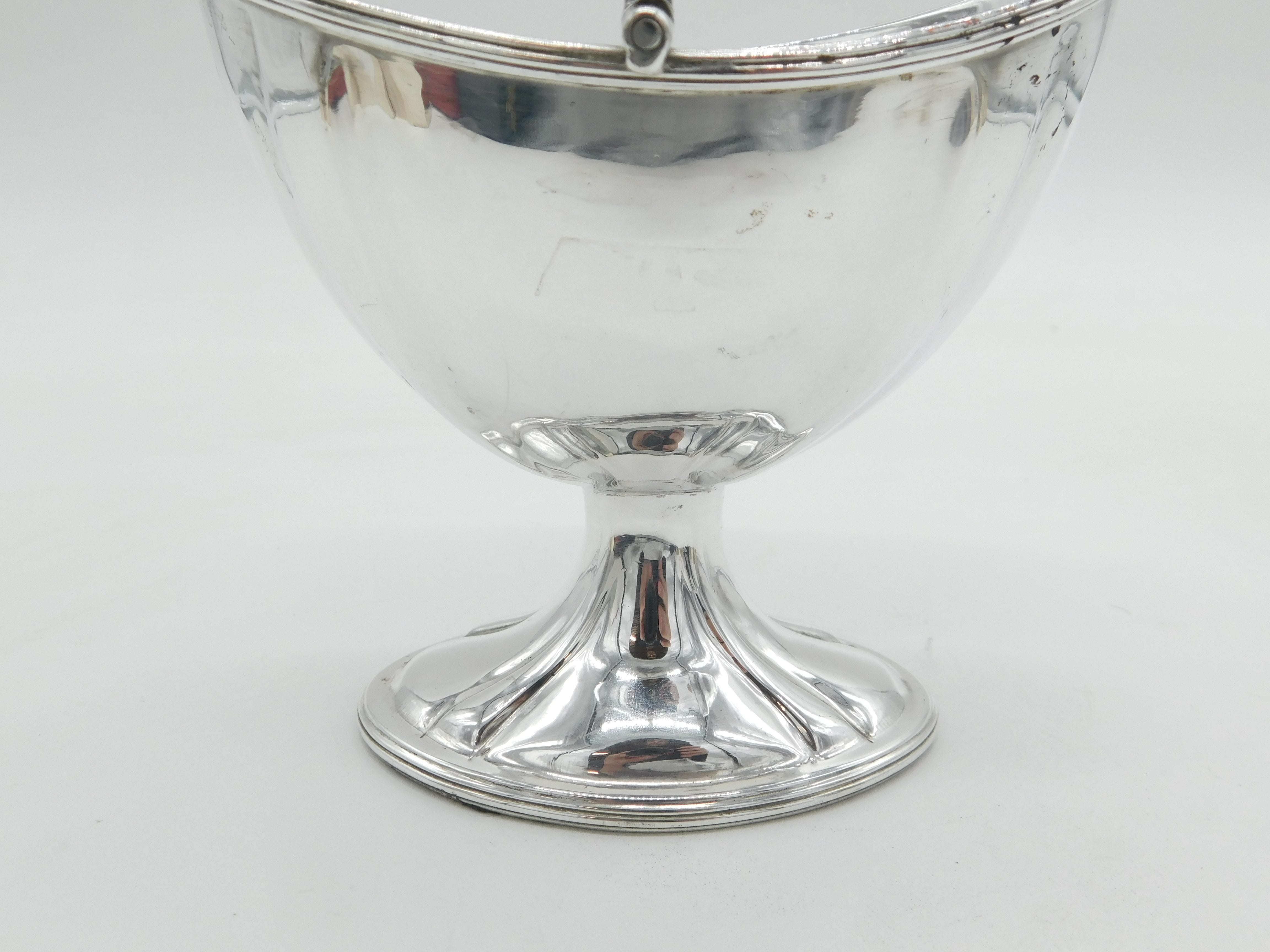 Details: A fantastic and wonderfully designed antique georgian sterling silver pedestal swing handled sugar bowl with lovely detailing hallmarked London 1796 by Henry Chawner & John Eames. This is a wonderful item that would make a perfect gift or addition to any collection.
