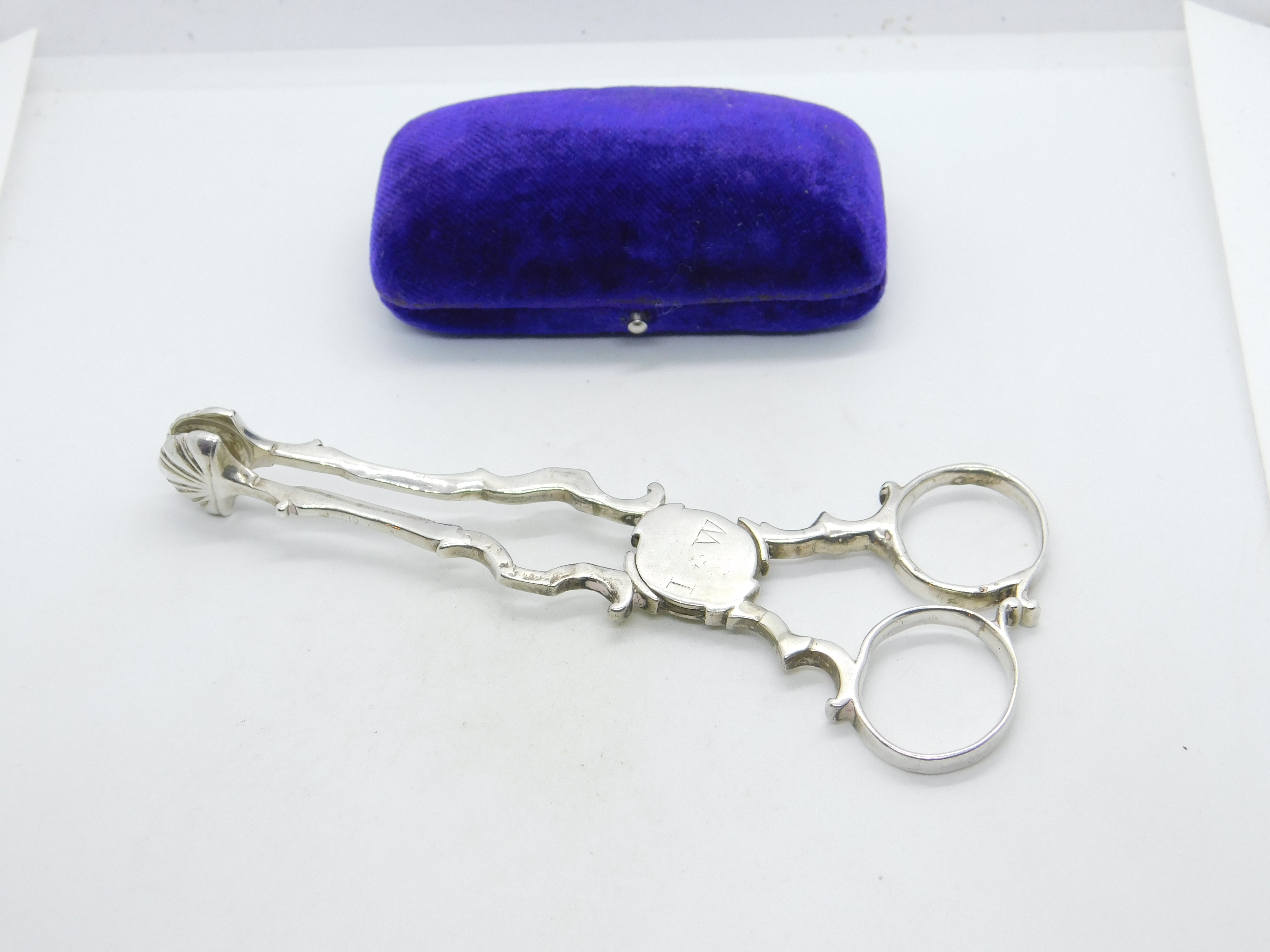 Details: A fantastic and wonderfully designed antique georgian sterling silver shell bowl sugar nips with lovely detailing, bright cut initials to the centre hallmarked London c1790 by Stephen Adams. This is a wonderful item that would make a perfect gift or addition to any collection. The BOX pictured is for PRESENTATION ONLY and is NOT included in the listings but used to frame the pictures unless specifically stated otherwise.
