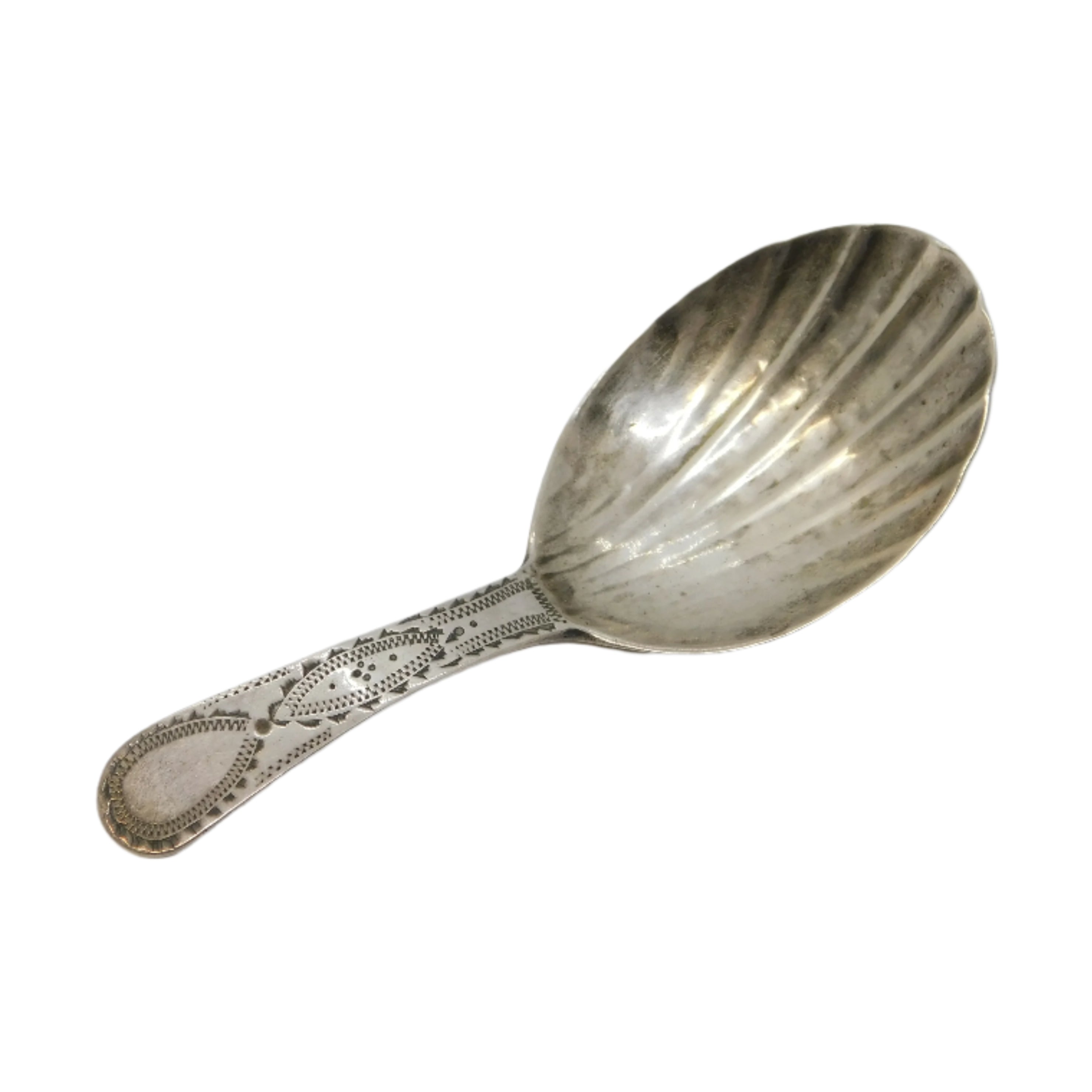 George III Sterling Silver Shell Bowl Tea Caddy Spoon Antique 1811 London