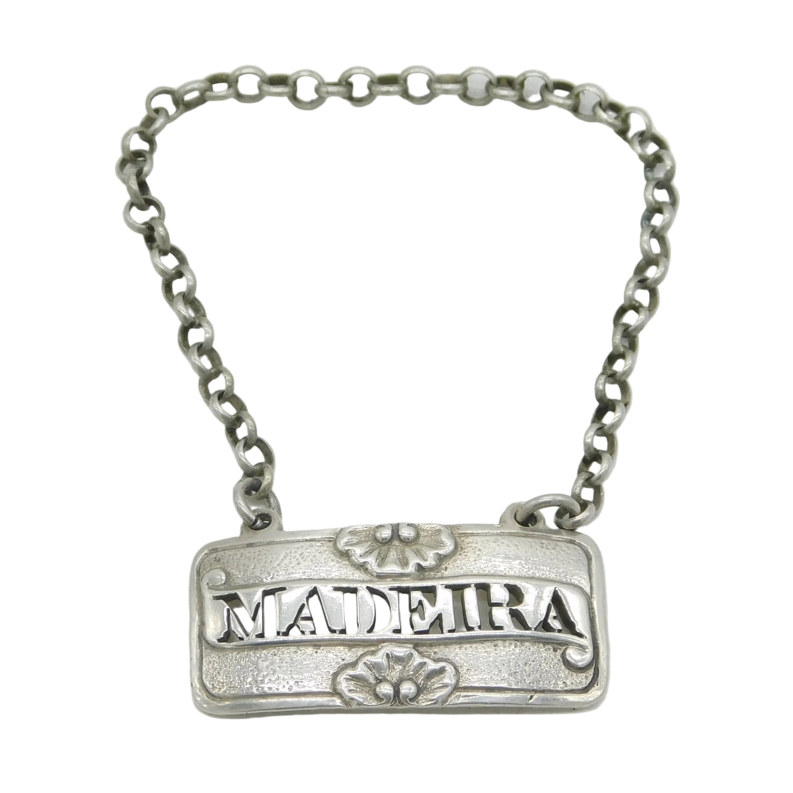 Details: A fantastic and wonderfully designed antique georgian sterling silver pierced madeira decanter label with shell decoration, hallmarked to the reverse for London 1798 by Phipps & Robinson. This is a wonderful item that would make a perfect gift or addition to any collection. We are more than happy to provide XRF reports for items upon request.