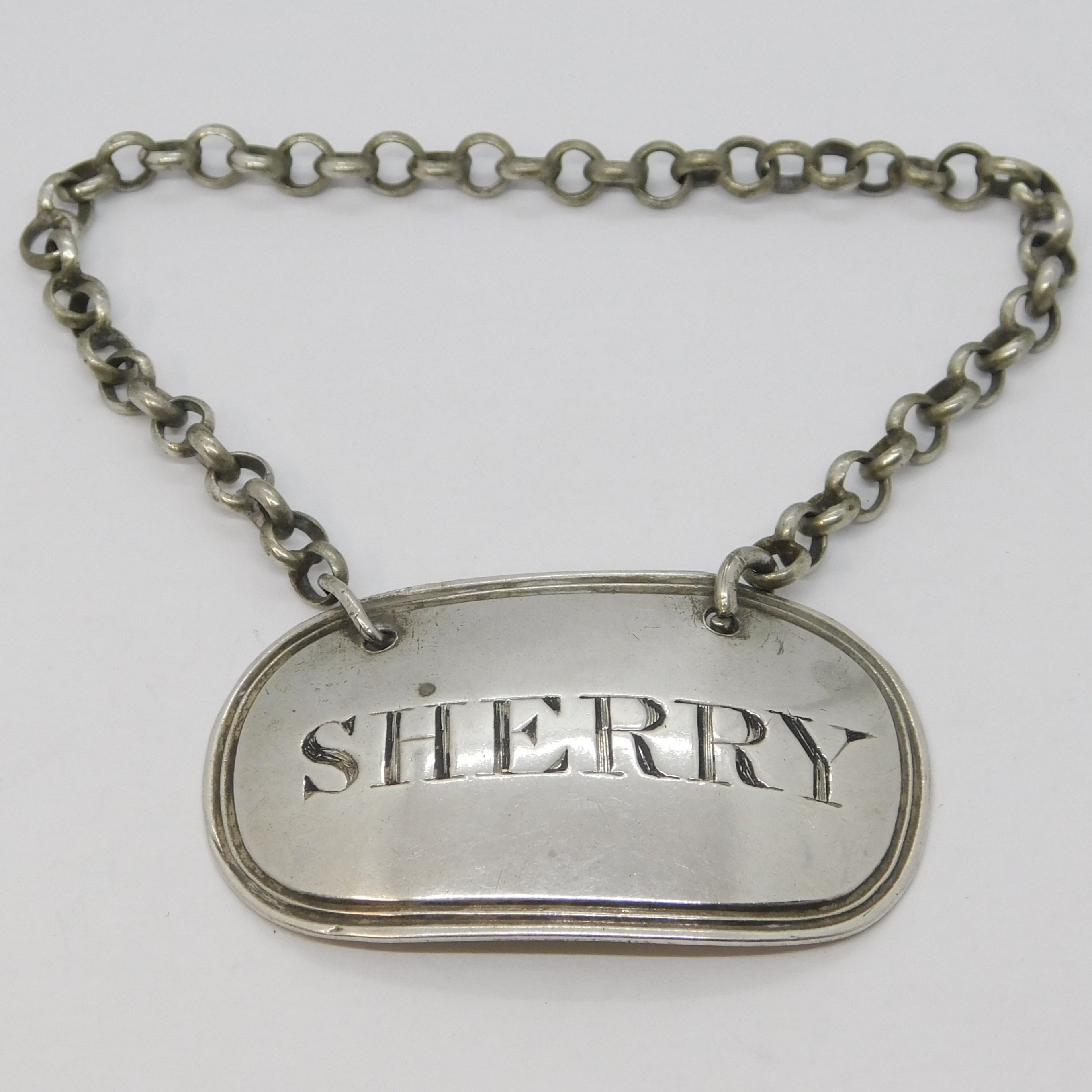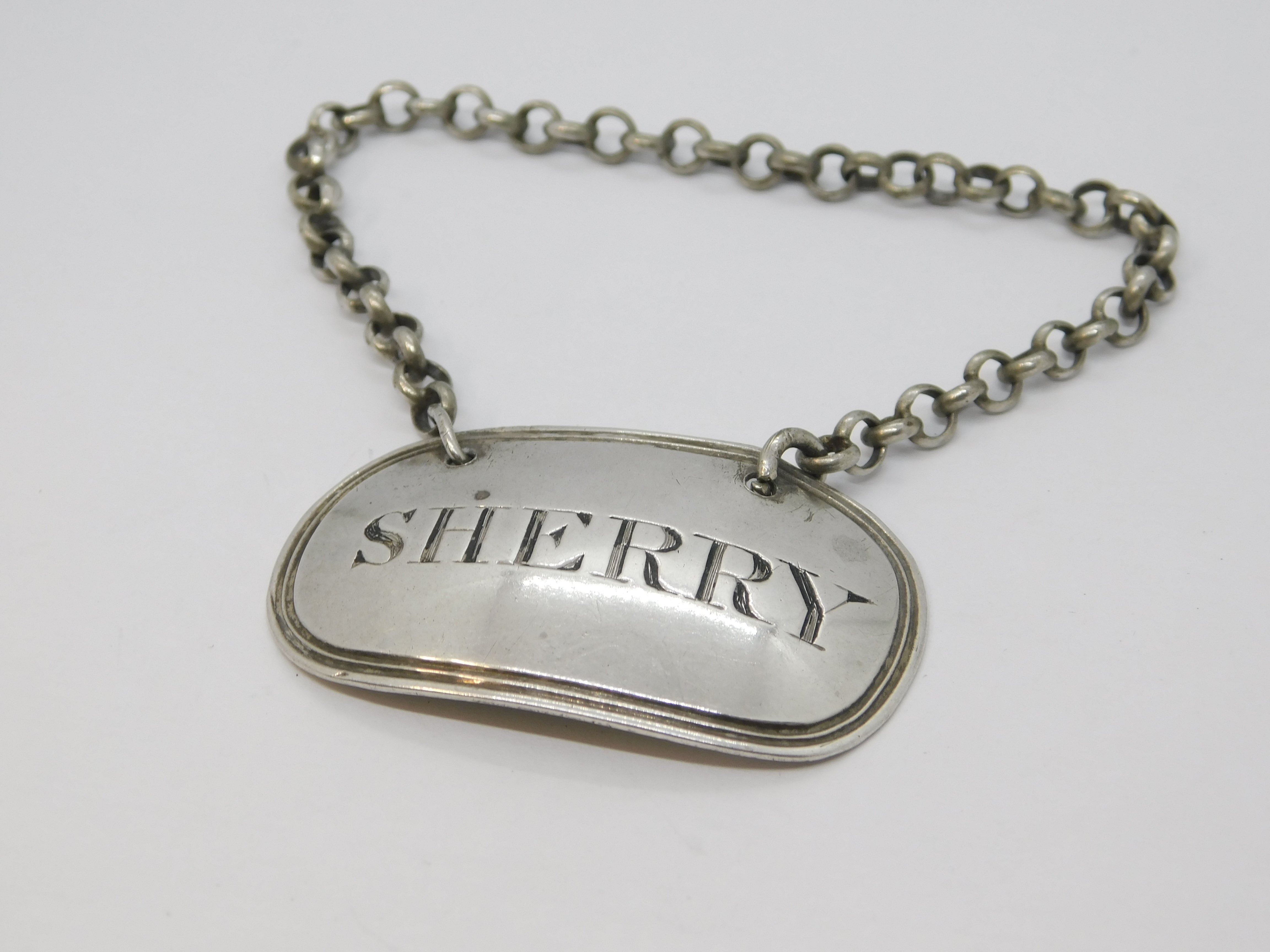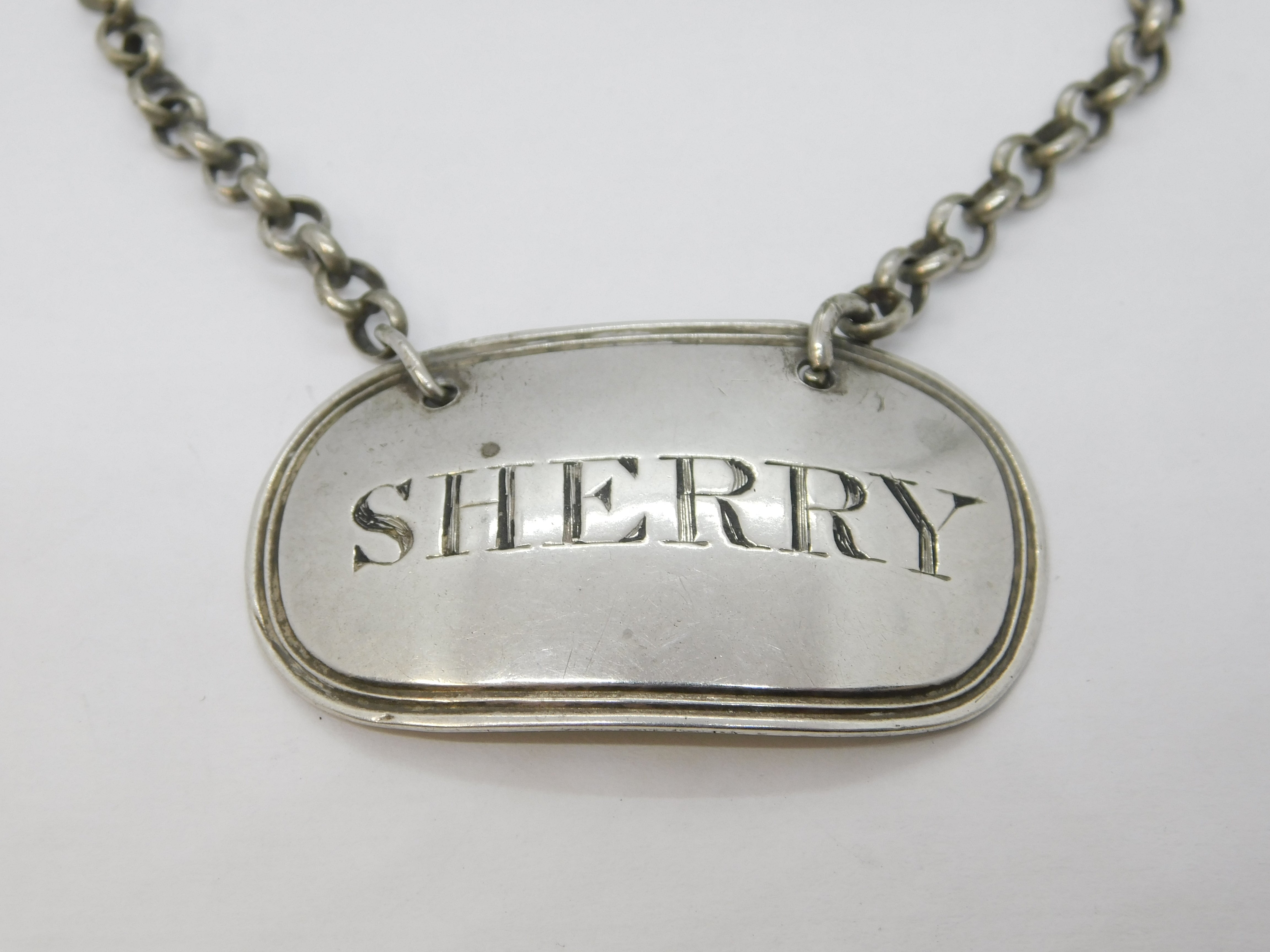George III Sterling Silver Sherry Decanter Label Antique 1819 London Charles Rawlings