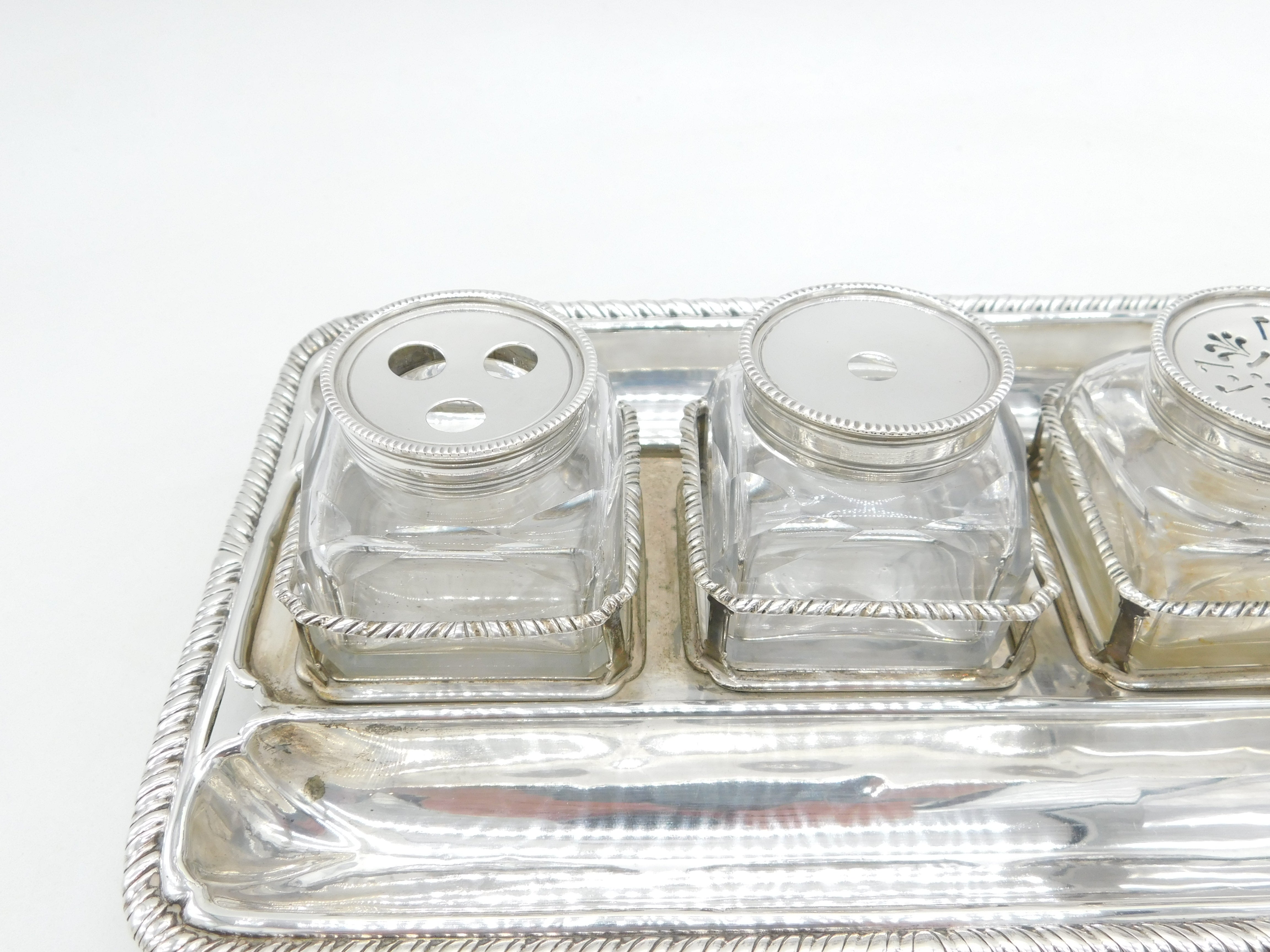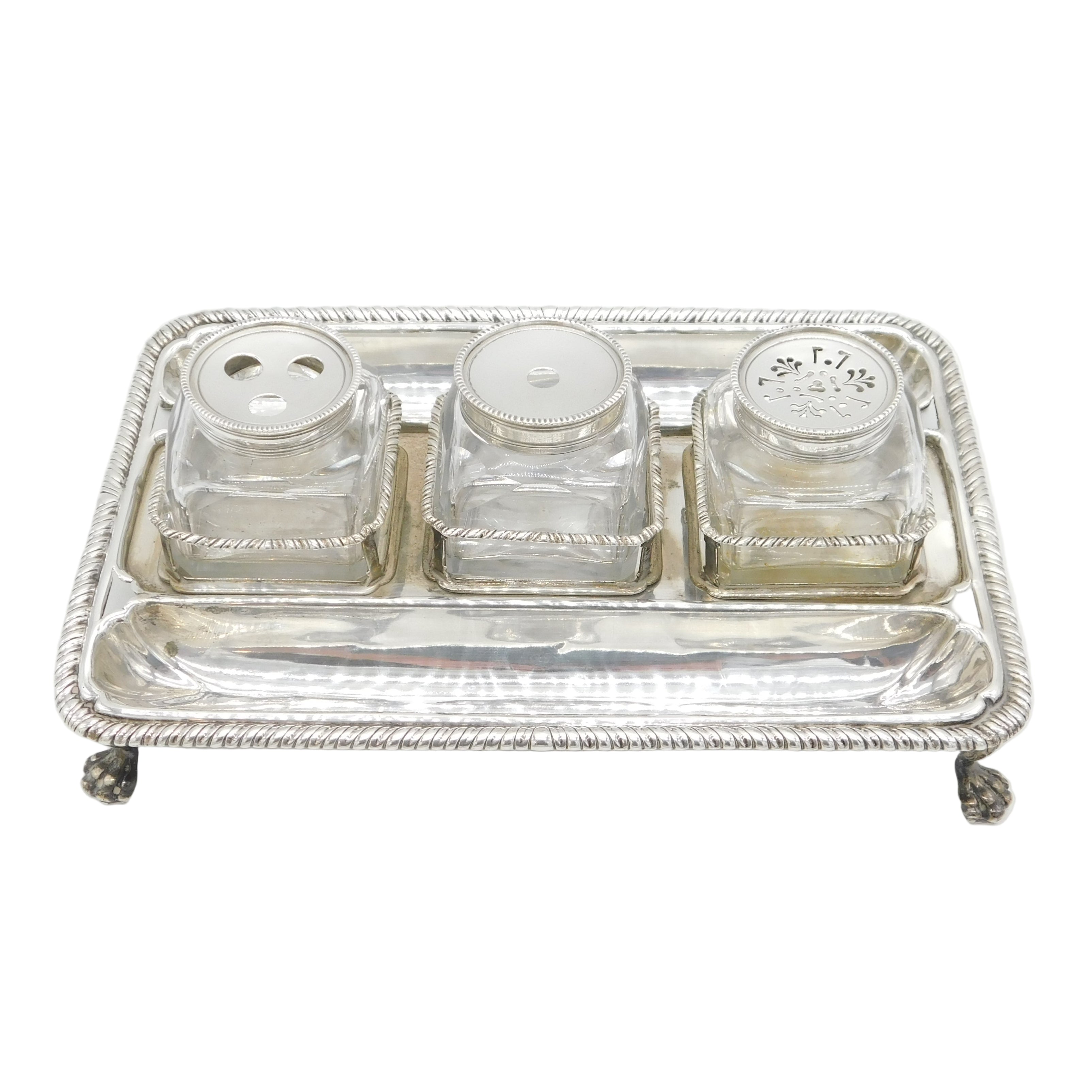 George III Sterling Silver Three-Piece Glass Desk Stand Antique 1767 London