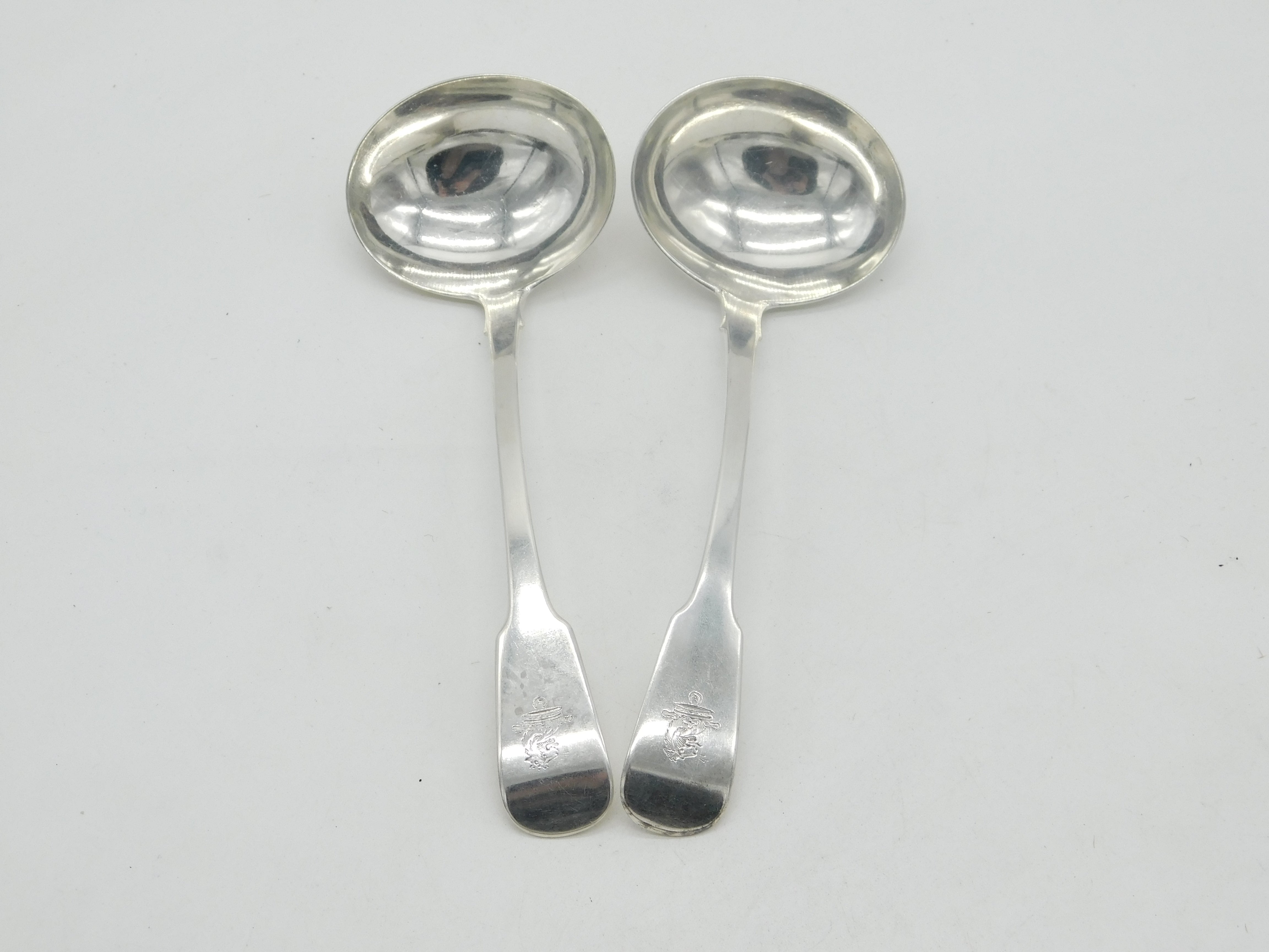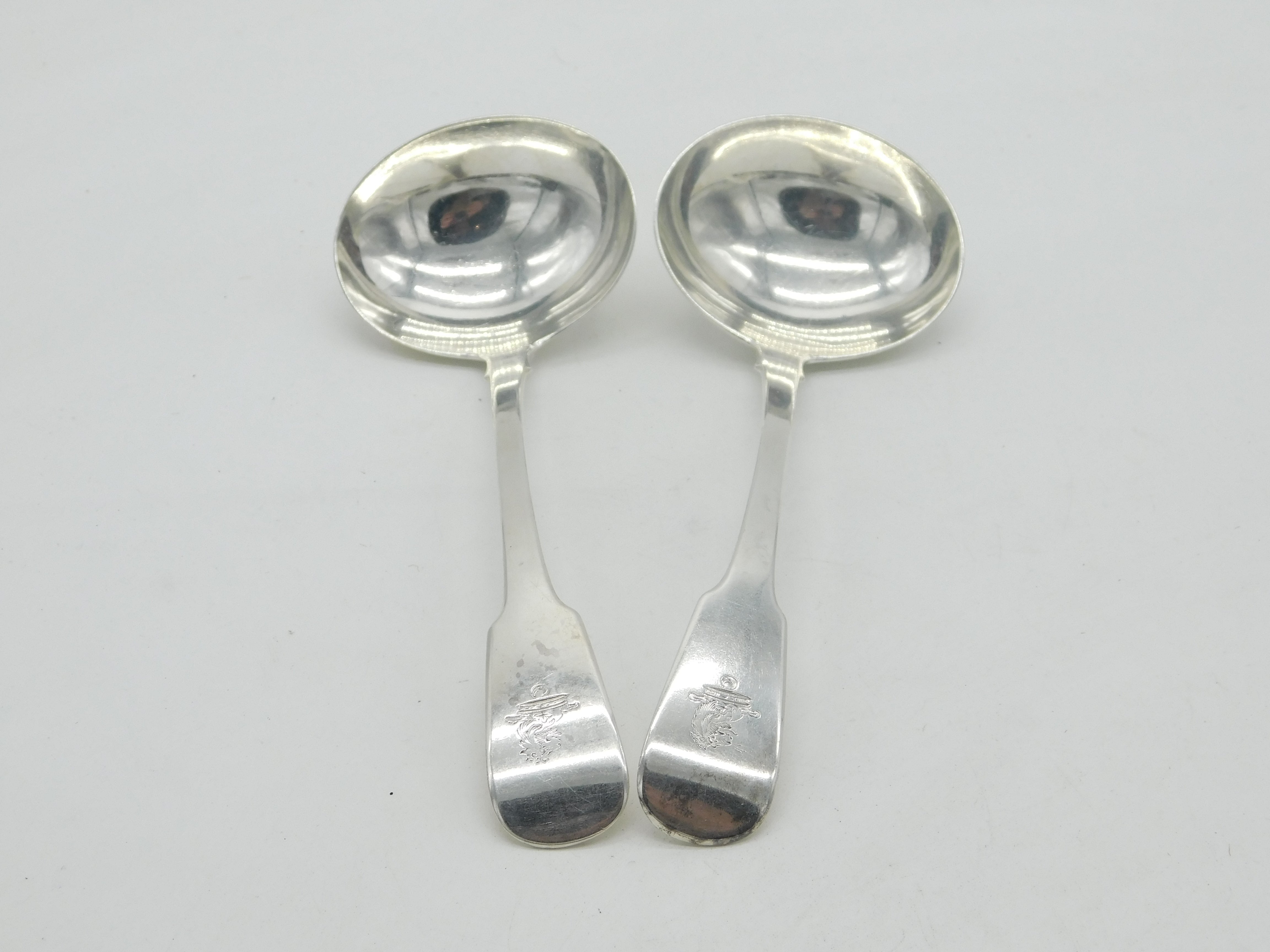 George IV Pair of Irish Sterling Silver Lion Crest Sauce Ladles 1825 Dublin Antique
