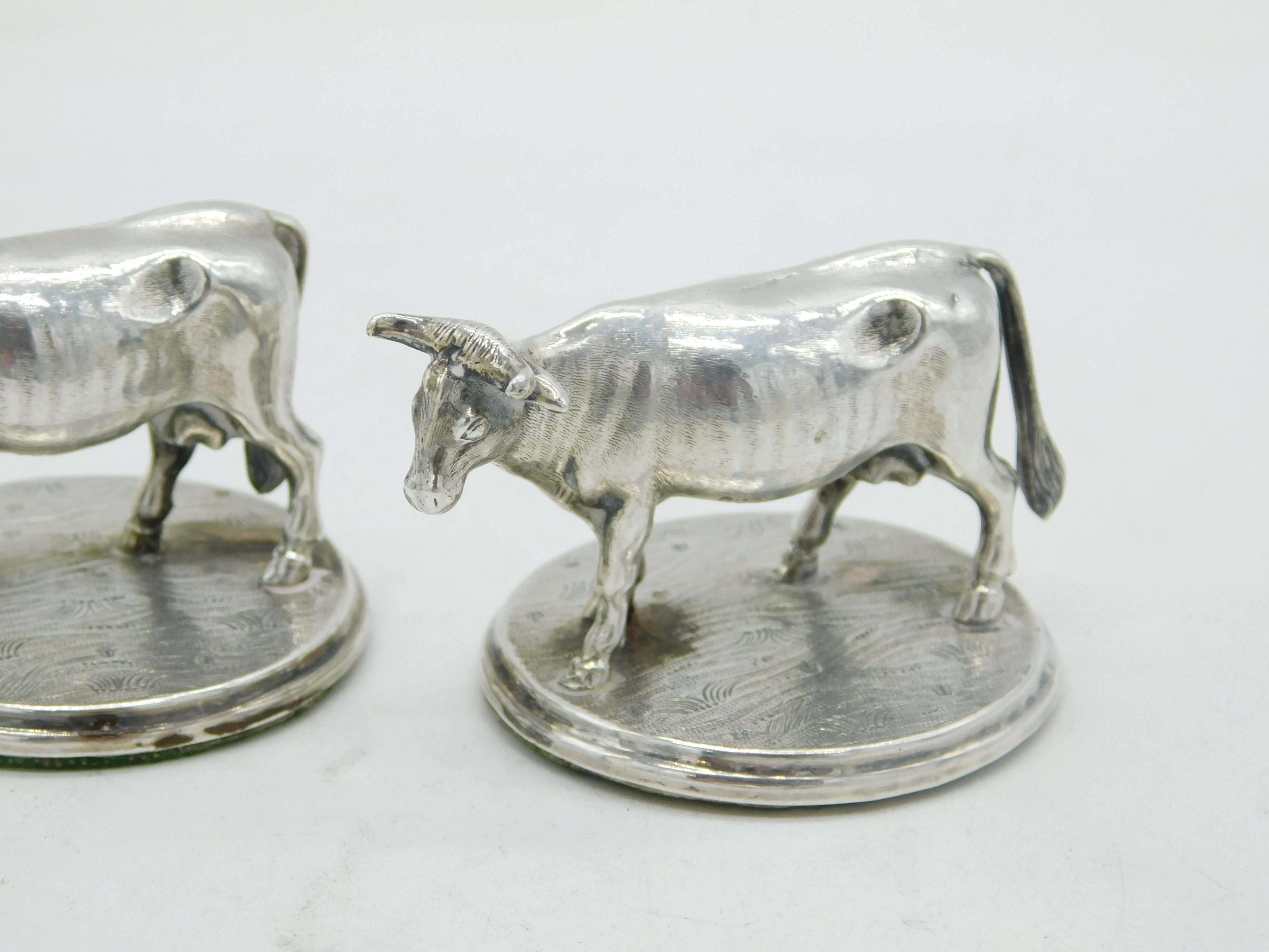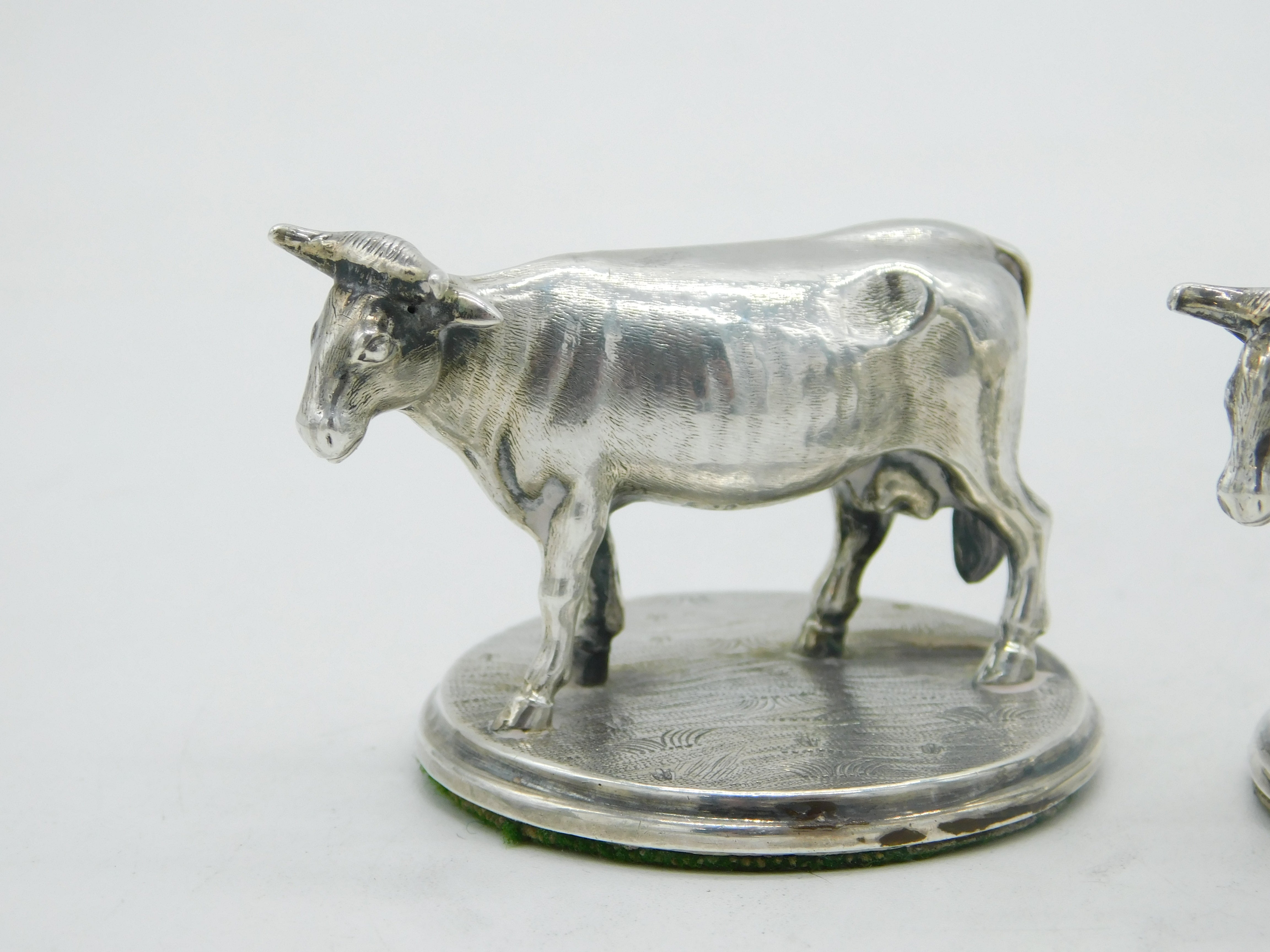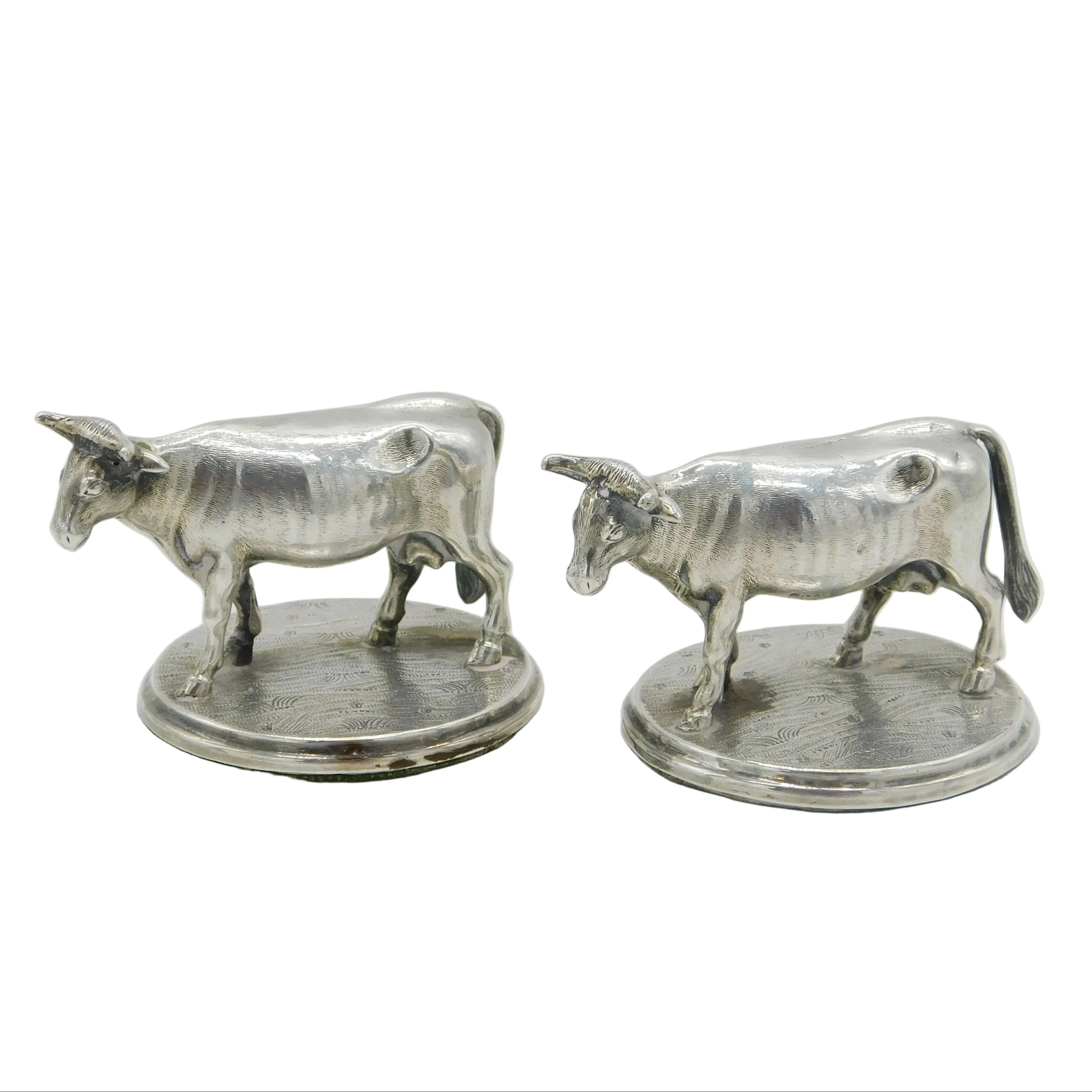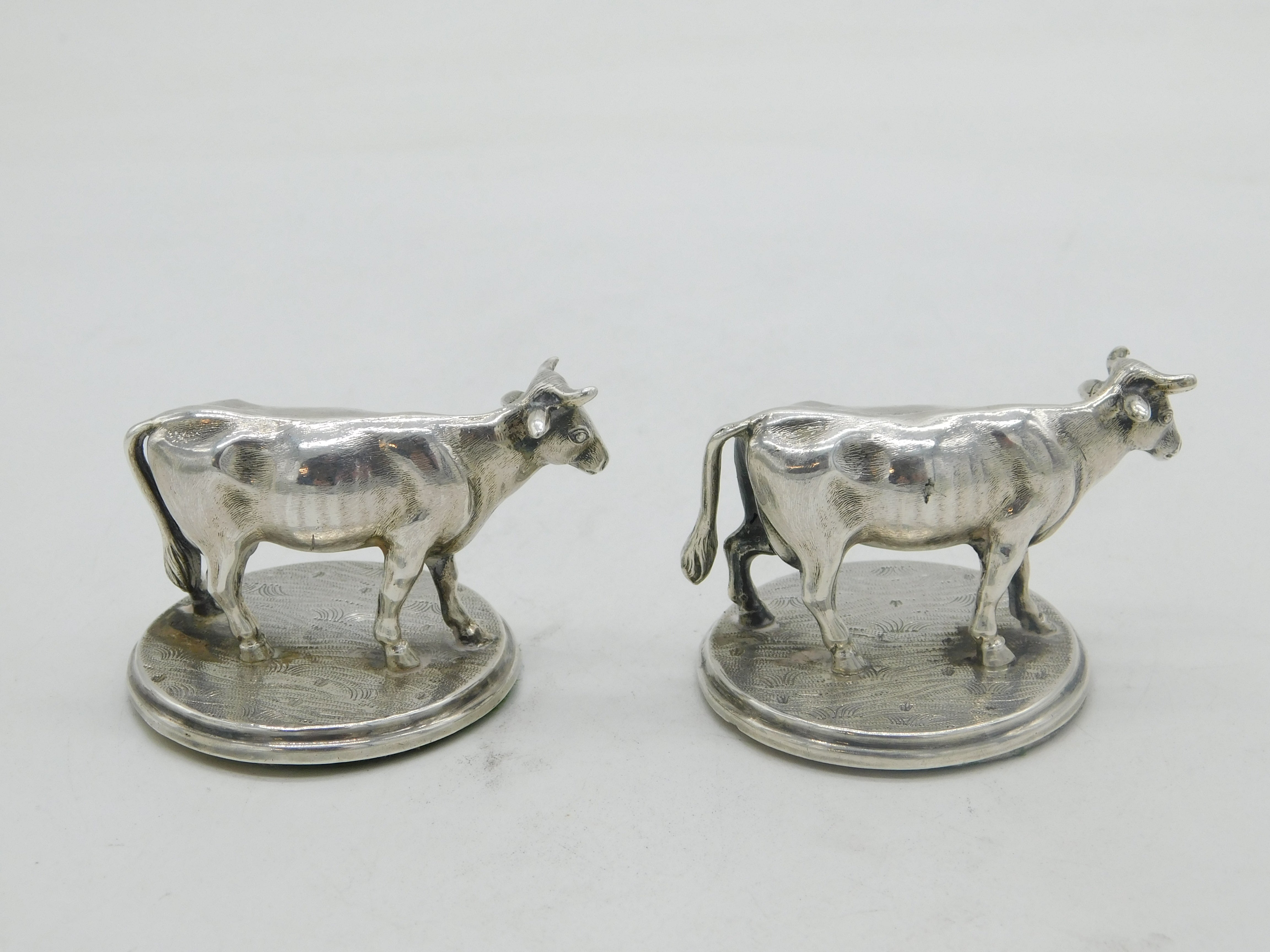 Details: A fantastic and wonderfully designed antique georgian pair of sterling silver dairy cow figurines or ornaments with lovely figurative design, hallmarked to the both for Sheffield c1820 by Creswick & Co. This is a wonderful item that would make a perfect gift or addition to any collection. We are more than happy to provide XRF reports for items upon request.