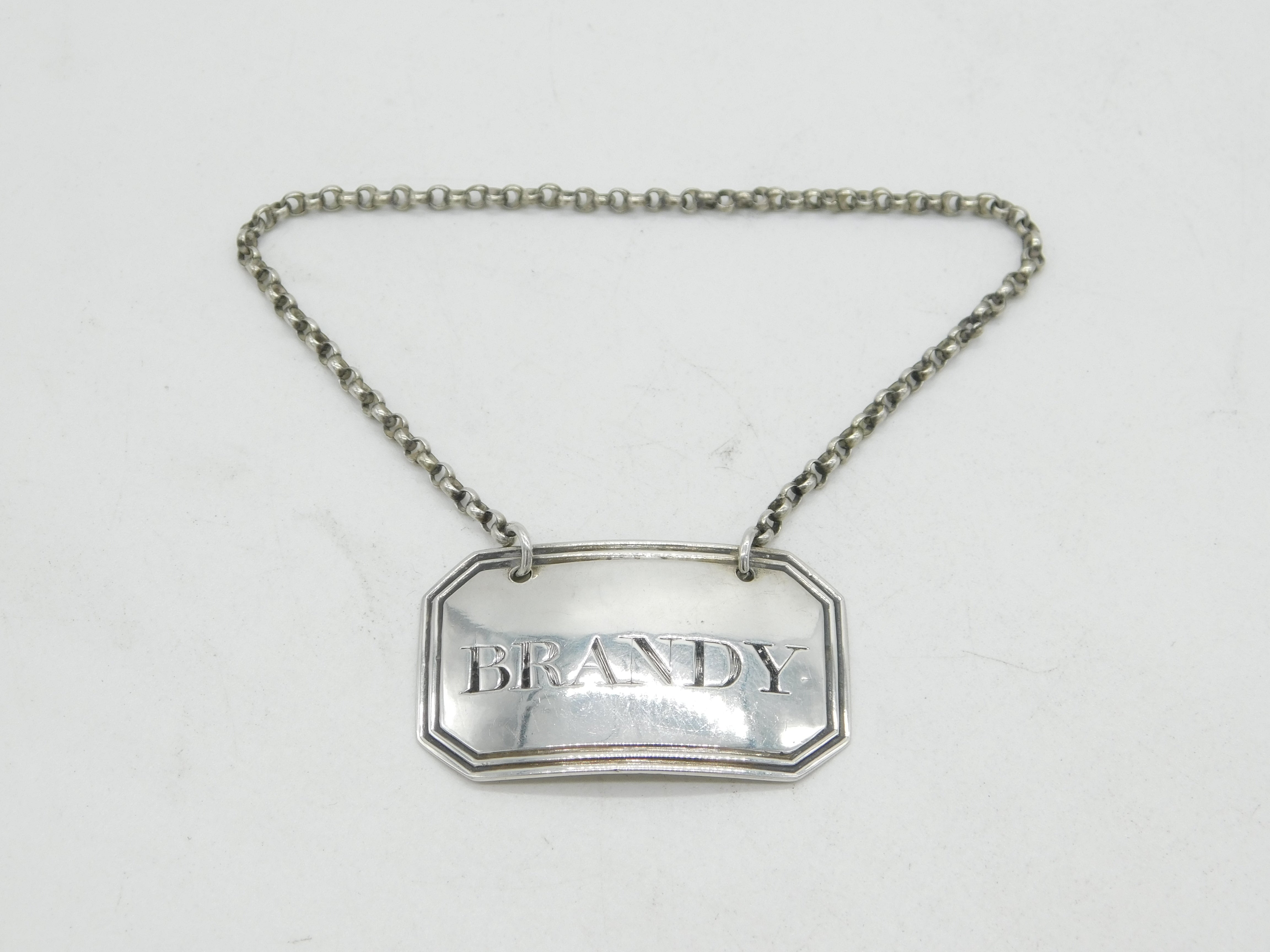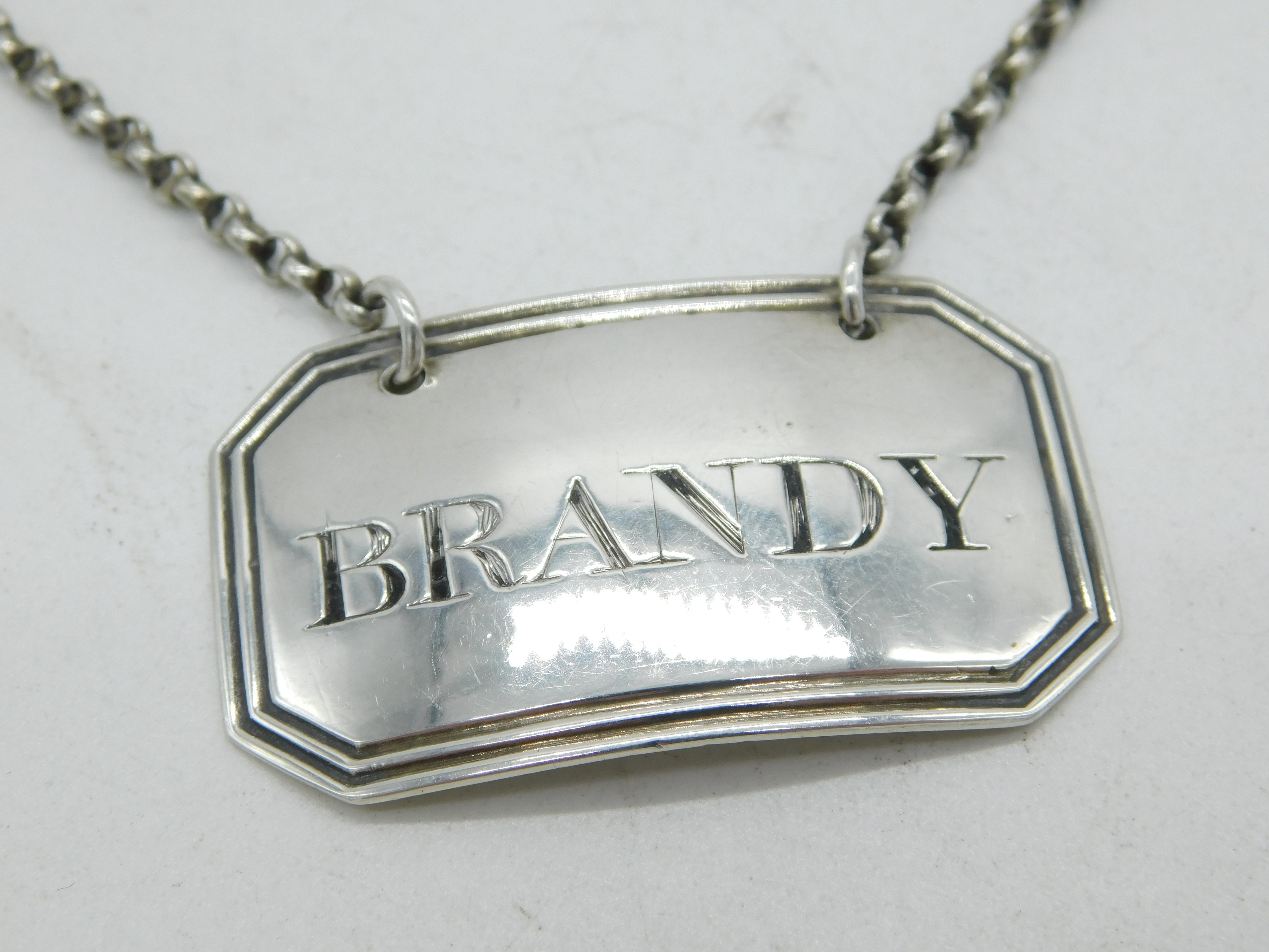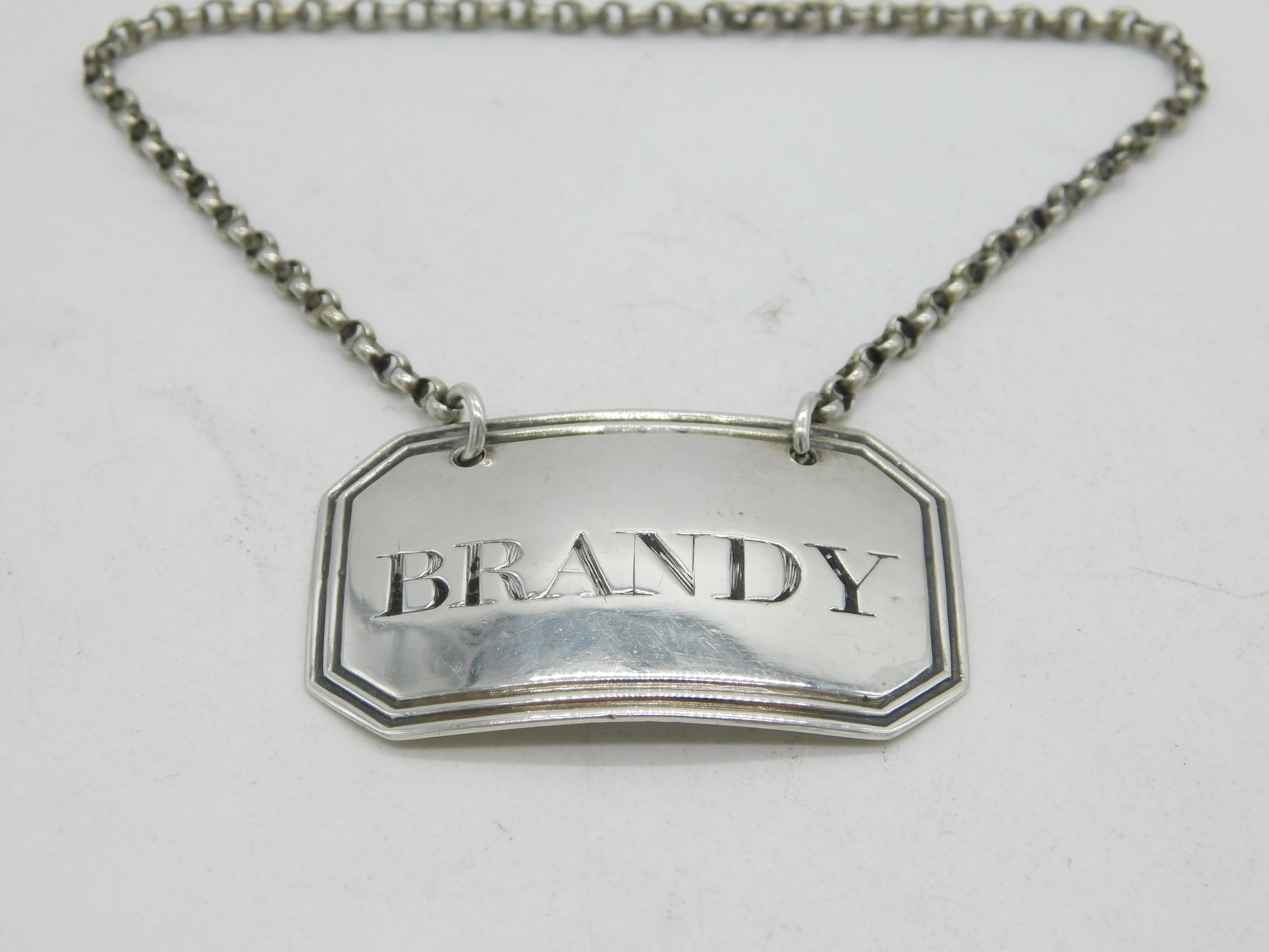 Details: A fantastic and wonderfully designed antique georgian sterling silver lined edge brandy decanter label with lovely detailing hallmarked Birmingham 1827 by George Unite. This is a wonderful item that would make a perfect gift or addition to any collection. The BOX pictured is for PRESENTATION ONLY and is NOT included in the listings but used to frame the pictures unless specifically stated otherwise.