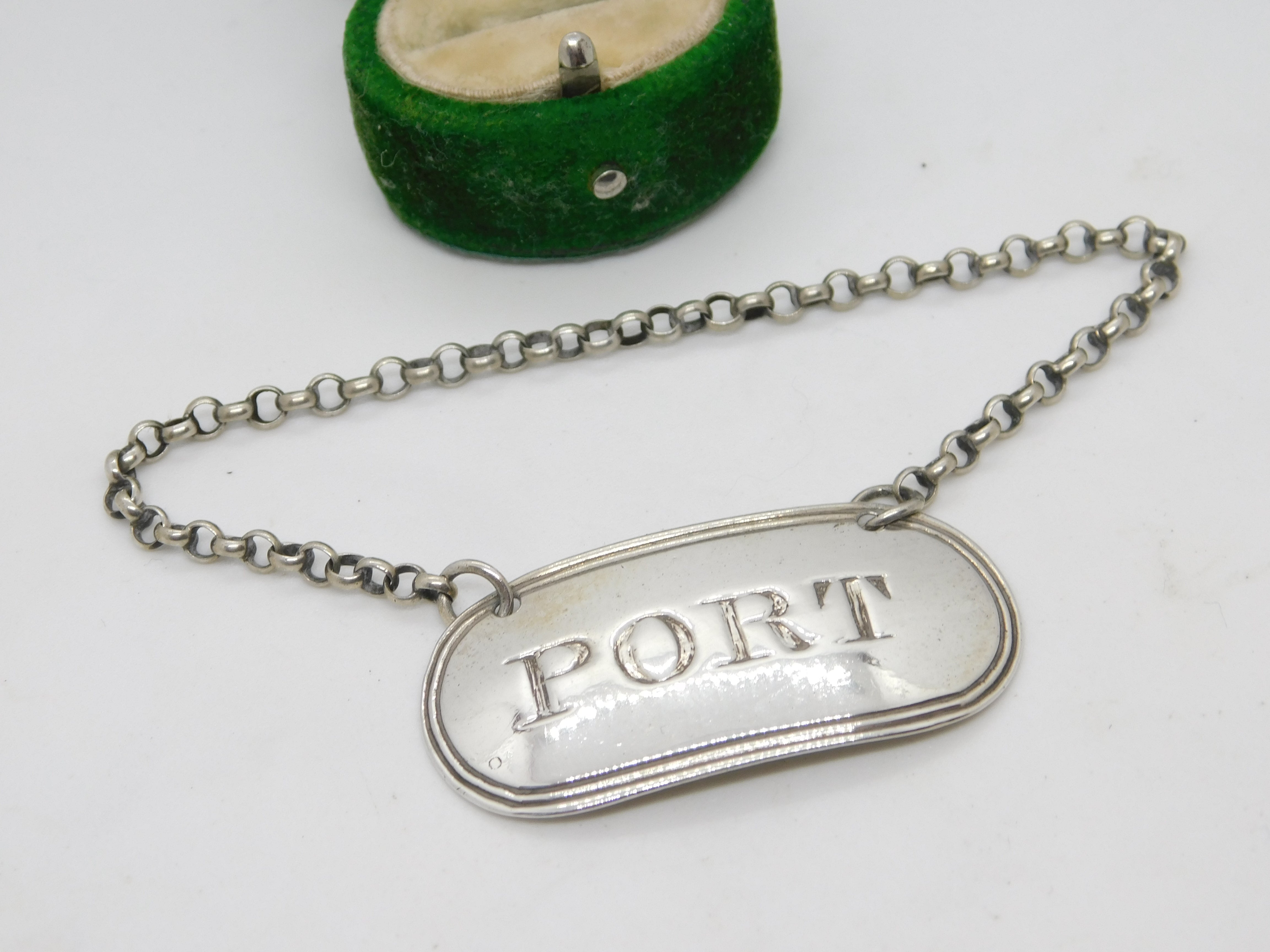 Details: A fantastic and wonderfully designed antique georgian sterling silver Port decanter label with bright cut lettering hallmarked London 1823 by George Knight. This is a wonderful item that would make a perfect gift or addition to any collection. The BOX pictured is for PRESENTATION ONLY and is NOT included in the listings but used to frame the pictures unless specifically stated otherwise.