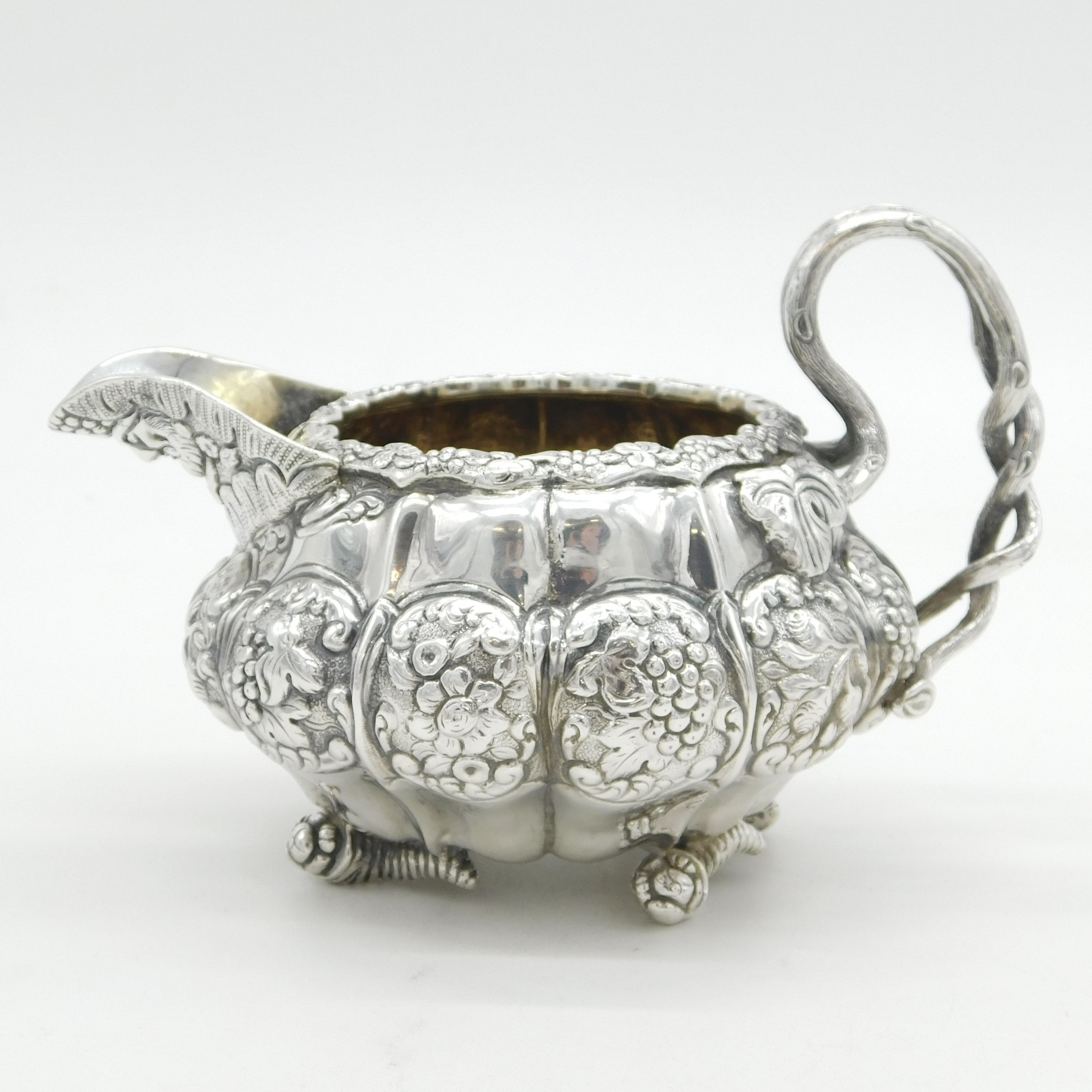 George IV Sterling Silver Cornucopia & Floral Cream Jug Antique 1821 London