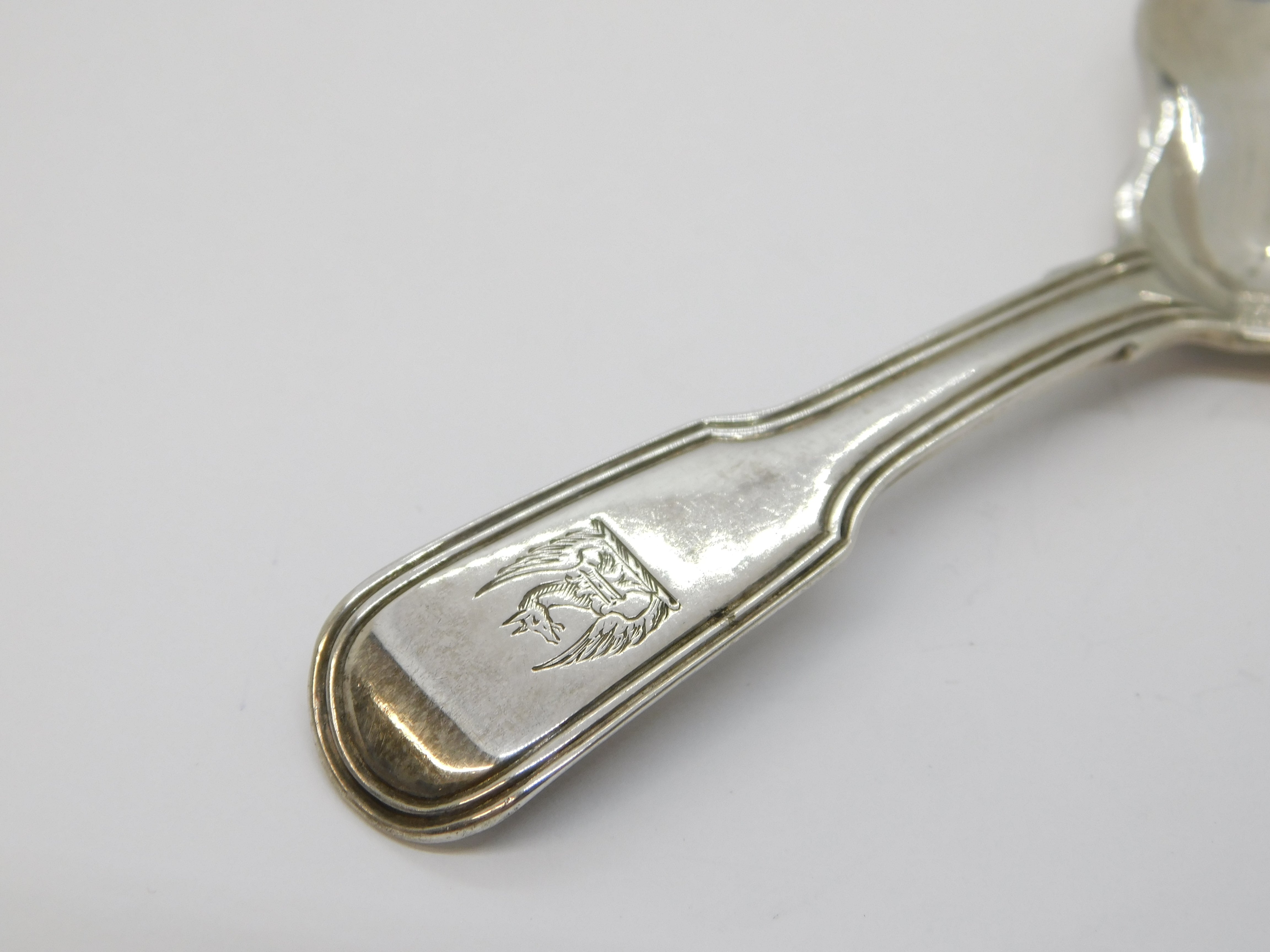 George IV Sterling SIlver Heraldic Crest Tea Caddy Spoon Antique 1826 London
