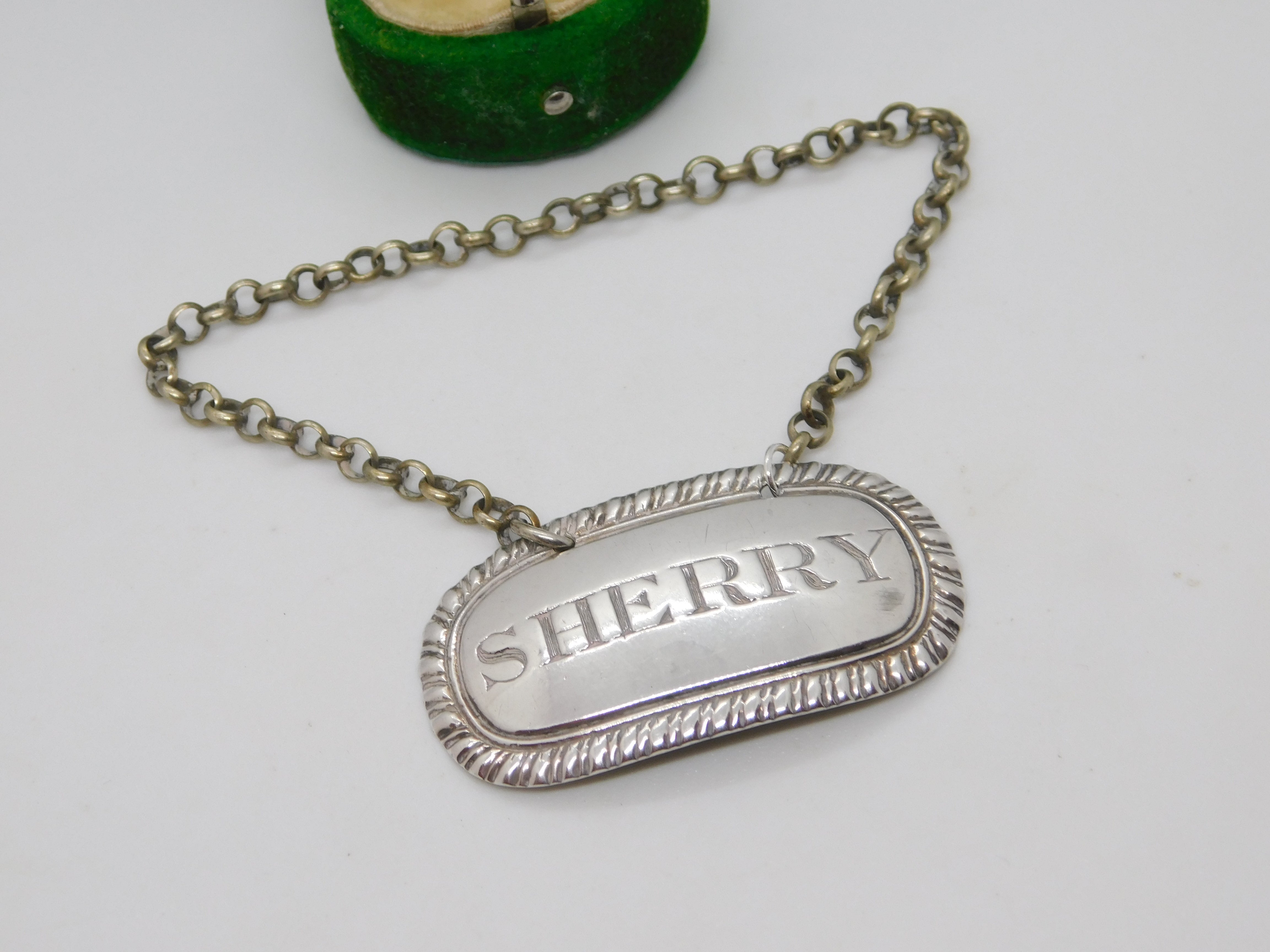 Details: A fantastic and wonderfully designed antique Georgian sterling silver sherry decanter label with lovely detailing hallmarked London 1824 by Charles Rawlings. This is a wonderful item that would make a perfect gift or addition to any collection. The BOX pictured is for PRESENTATION ONLY and is NOT included in the listings but used to frame the pictures unless specifically stated otherwise.