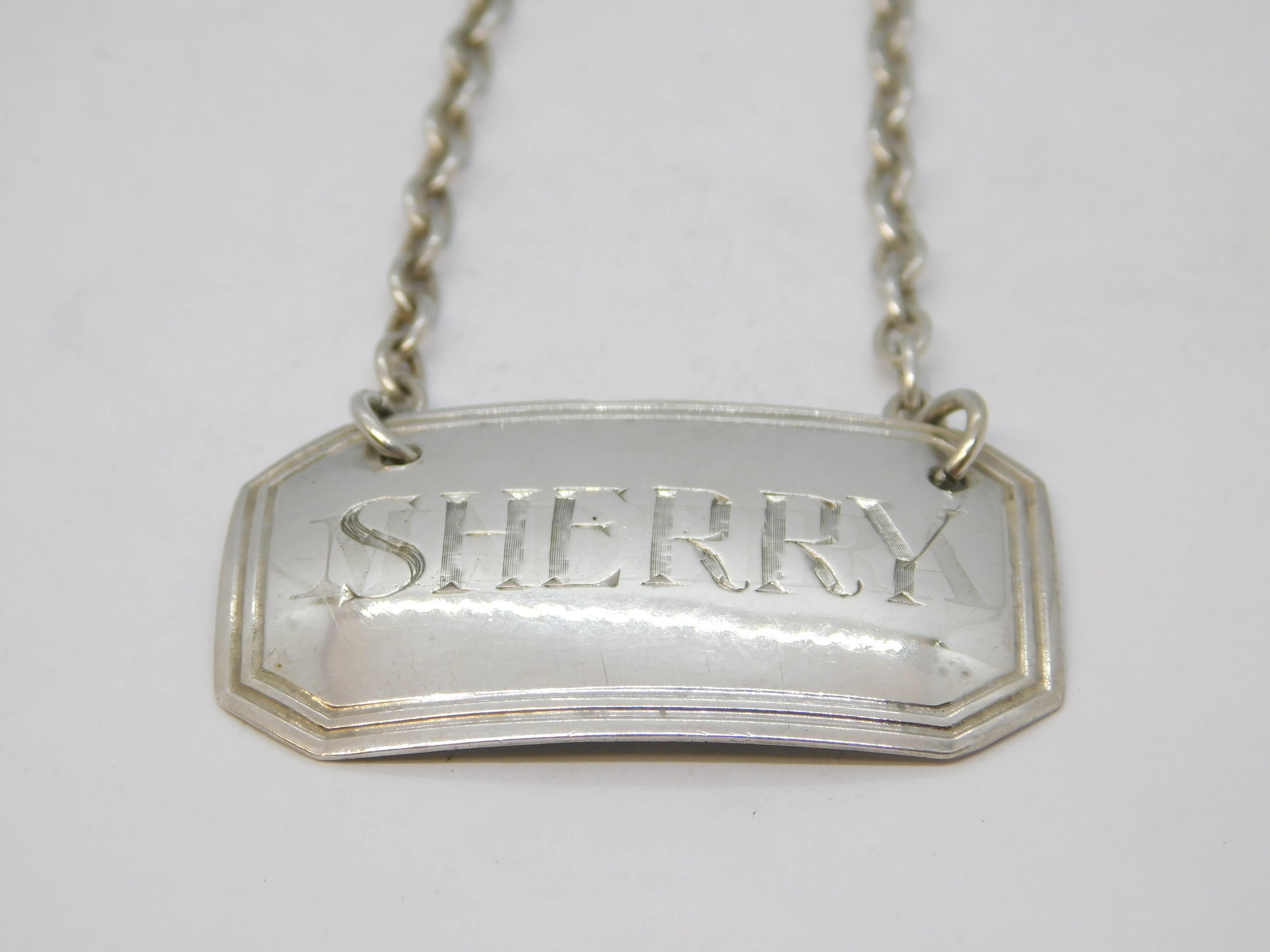 Details: A fantastic and wonderfully designed antique georgian sterling silver Sherry decanter label with lovely detailing hallmarked Birmingham 1829 by Joseph Willmore. This is a wonderful item that would make a perfect gift or addition to any collection. We are more than happy to provide XRF reports for items upon request.