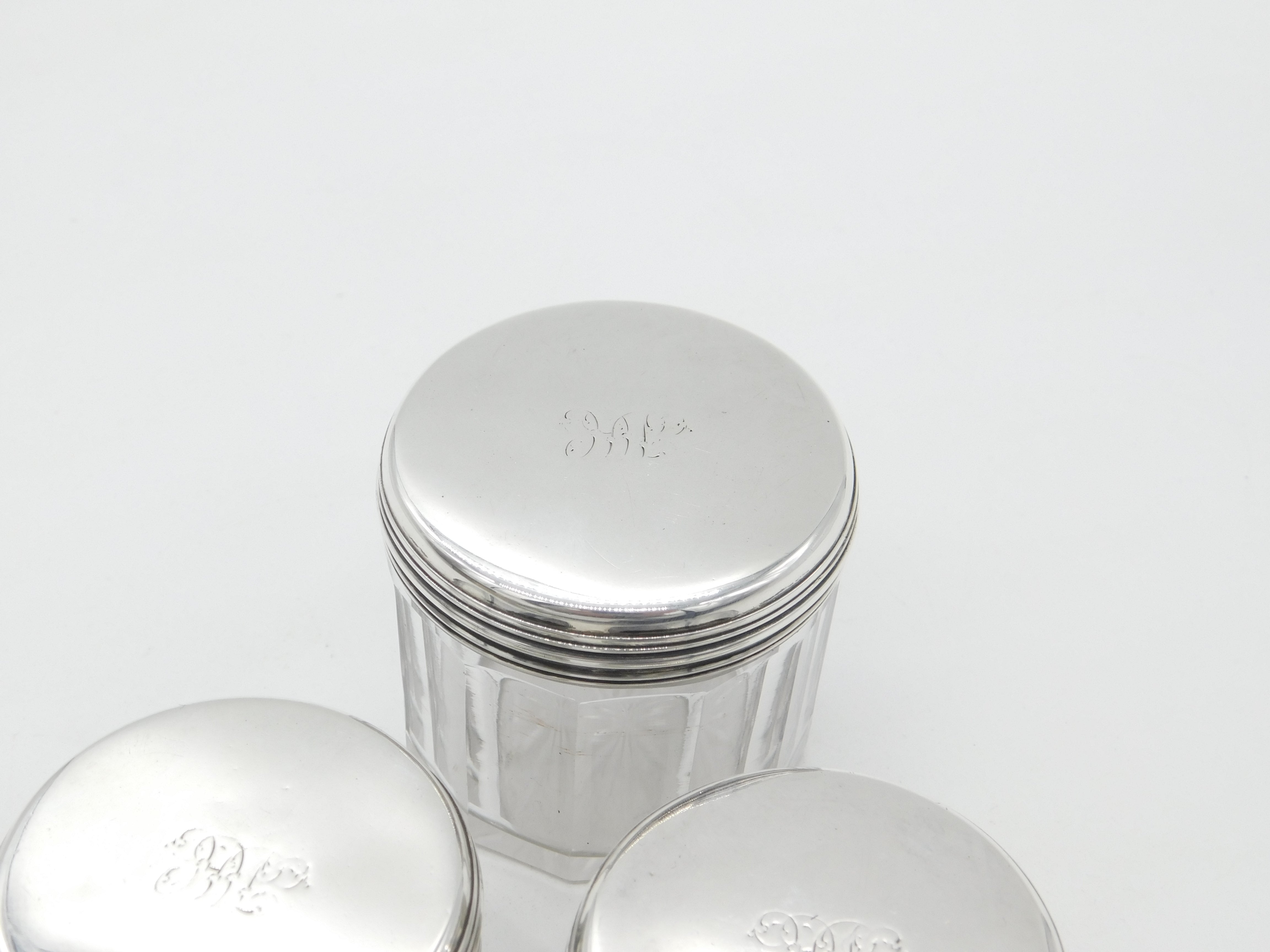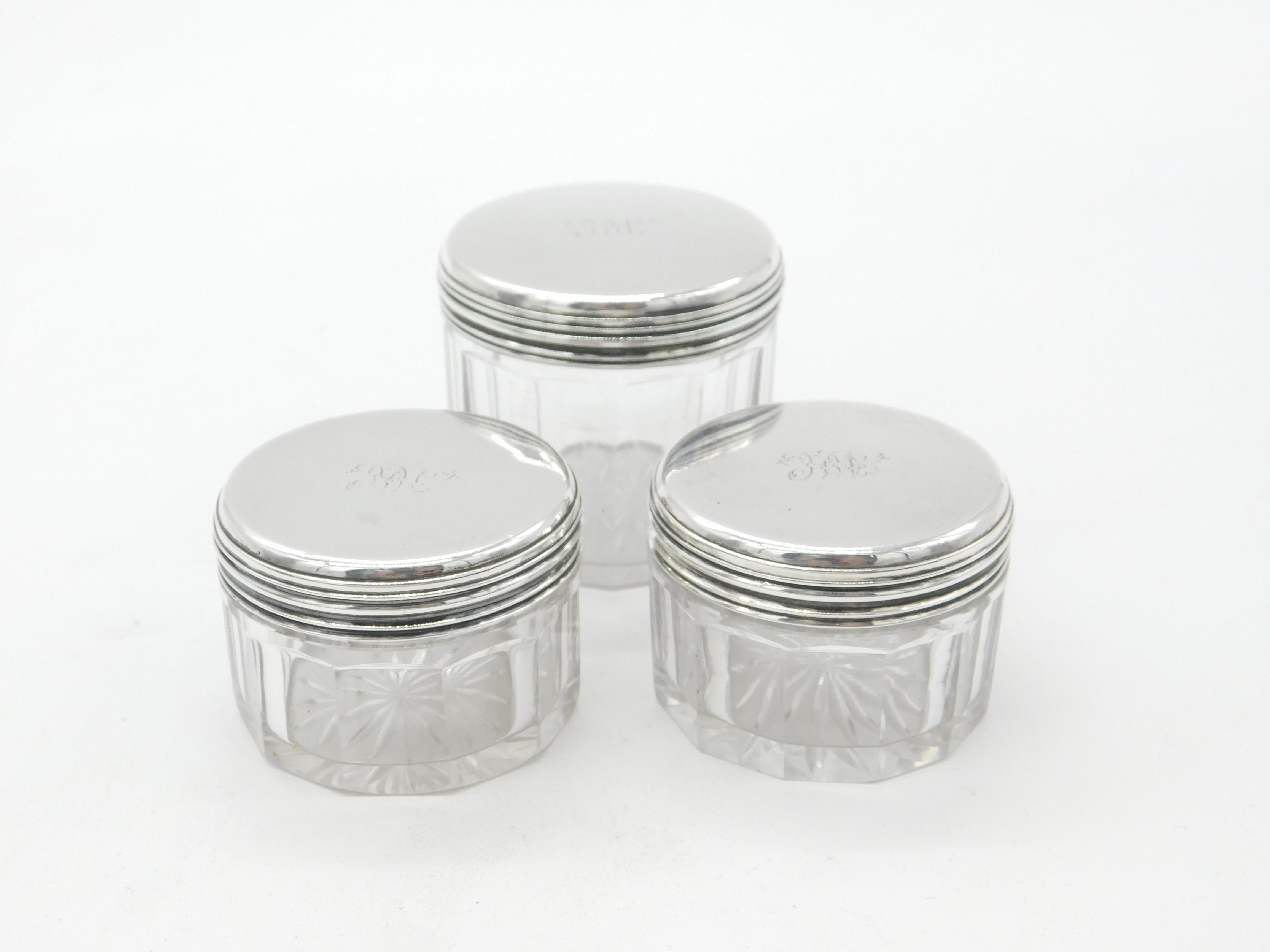 Georgian Set of 3 Sterling Silver Vanity Jars Antique 1836 London F. Douglas