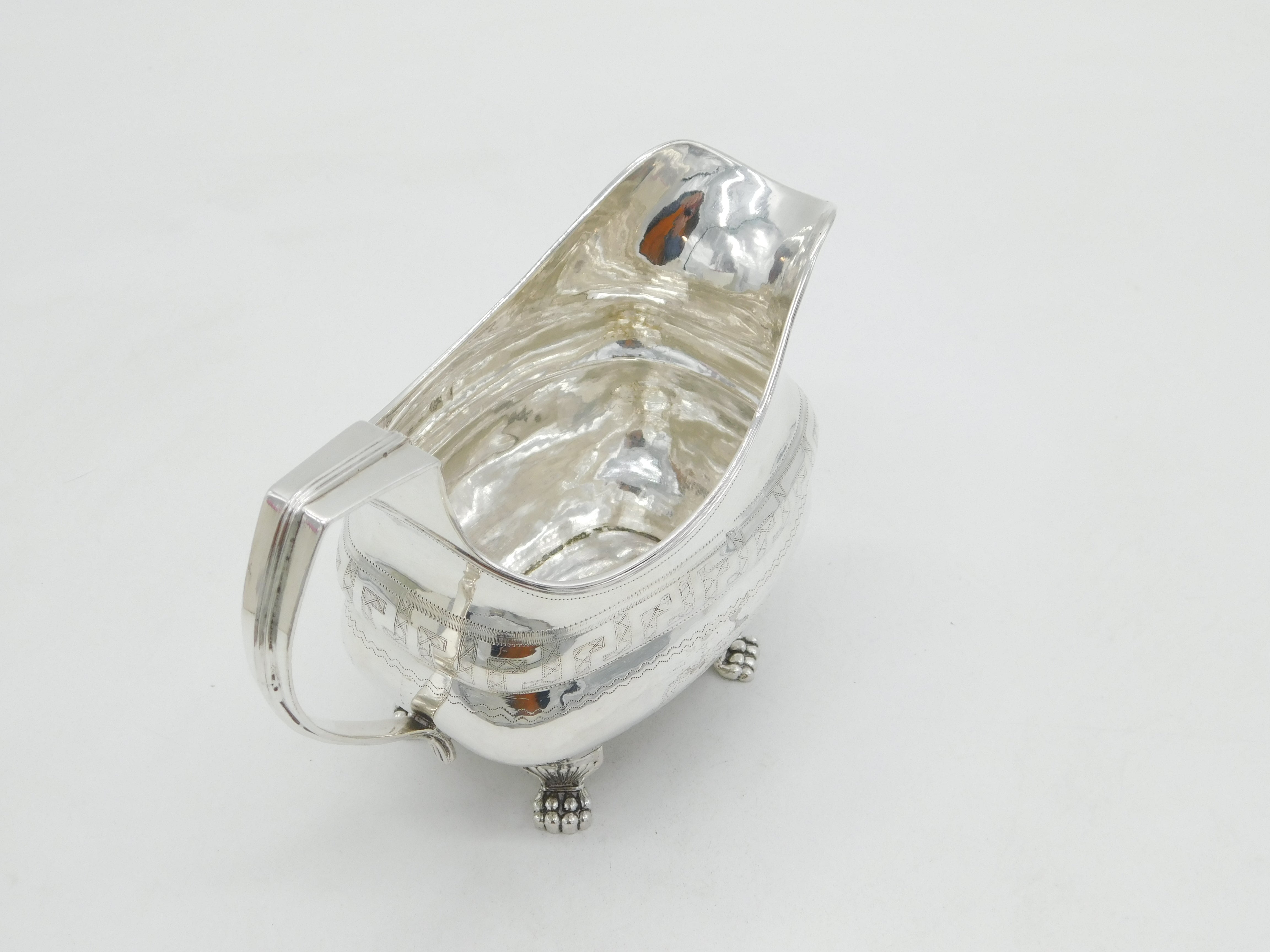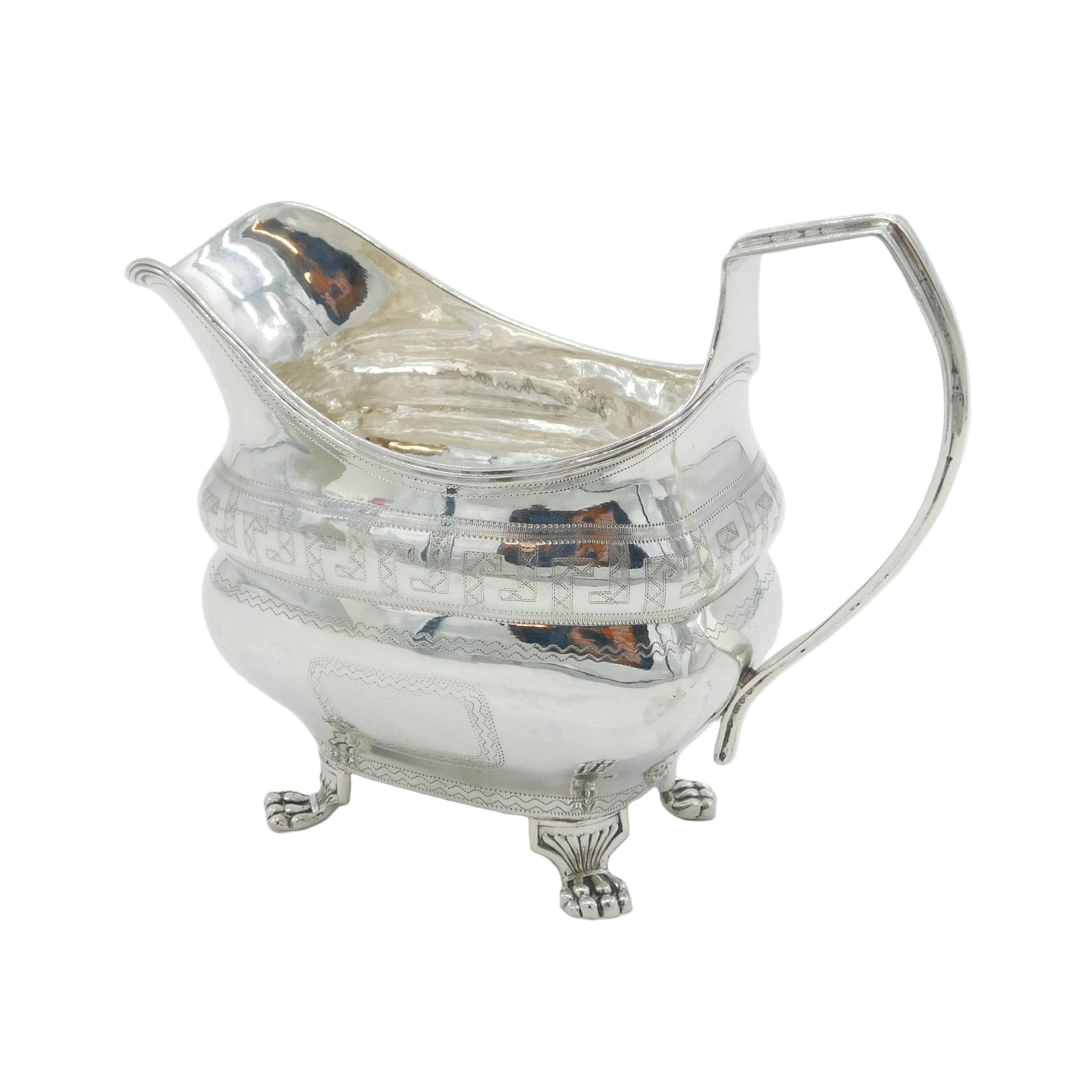 Details: A fantastic and wonderfully designed antique georgian Irish sterling silver paw foot cream jug with lovely bright cut decoration hallmarked Dublin 1806 by James Scott. Lovely detailing and nice quality. This is a wonderful item that would make a perfect gift or addition to any collection. We are more than happy to provide XRF reports for items upon request.