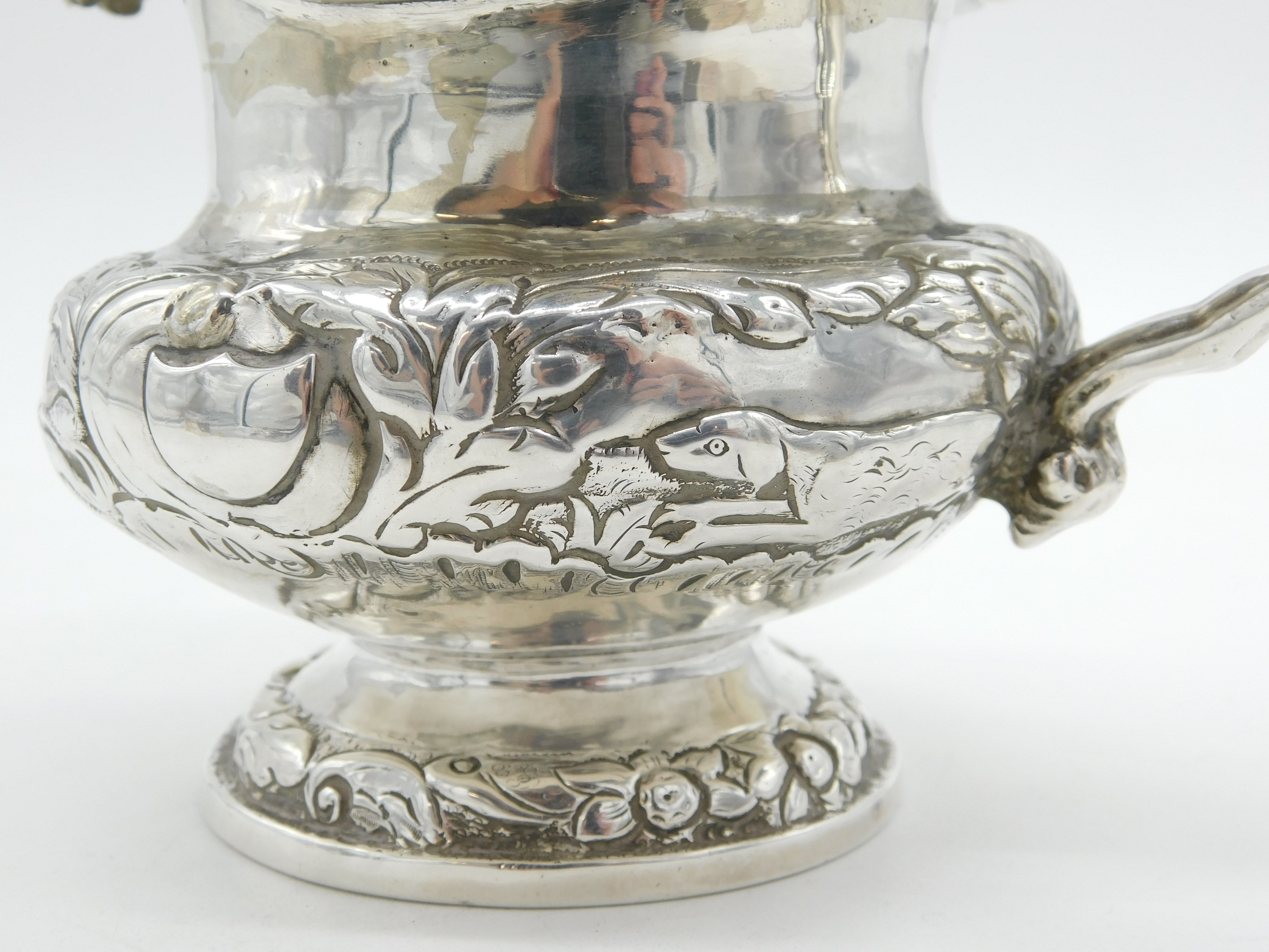 Irish William IV Sterling Silver Hunting Scene Cream Jug Antique 1832 Dublin