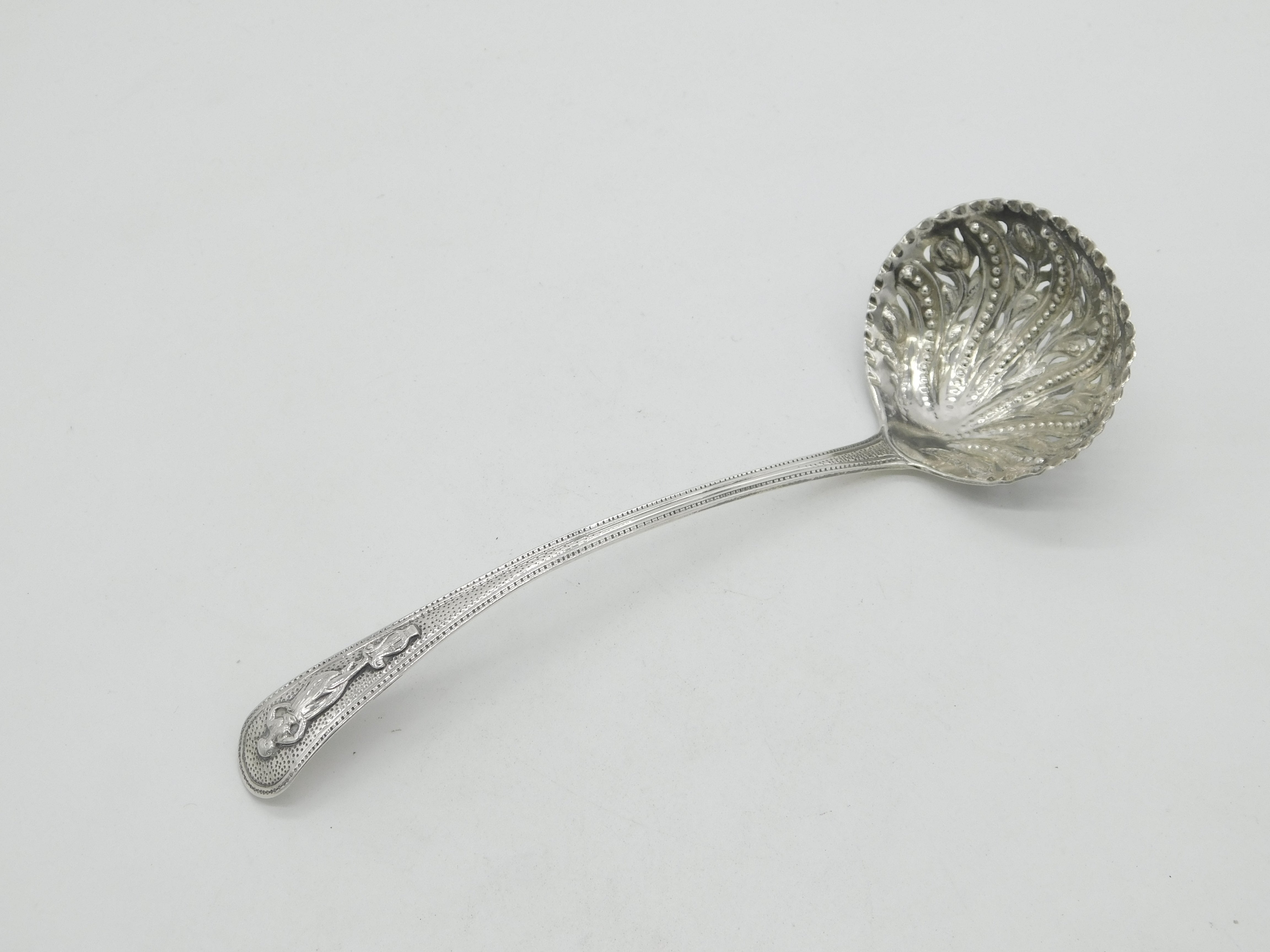 Large Georgian Sterling Silver Ornate Sugar Caster Ladle 1795 London Antique