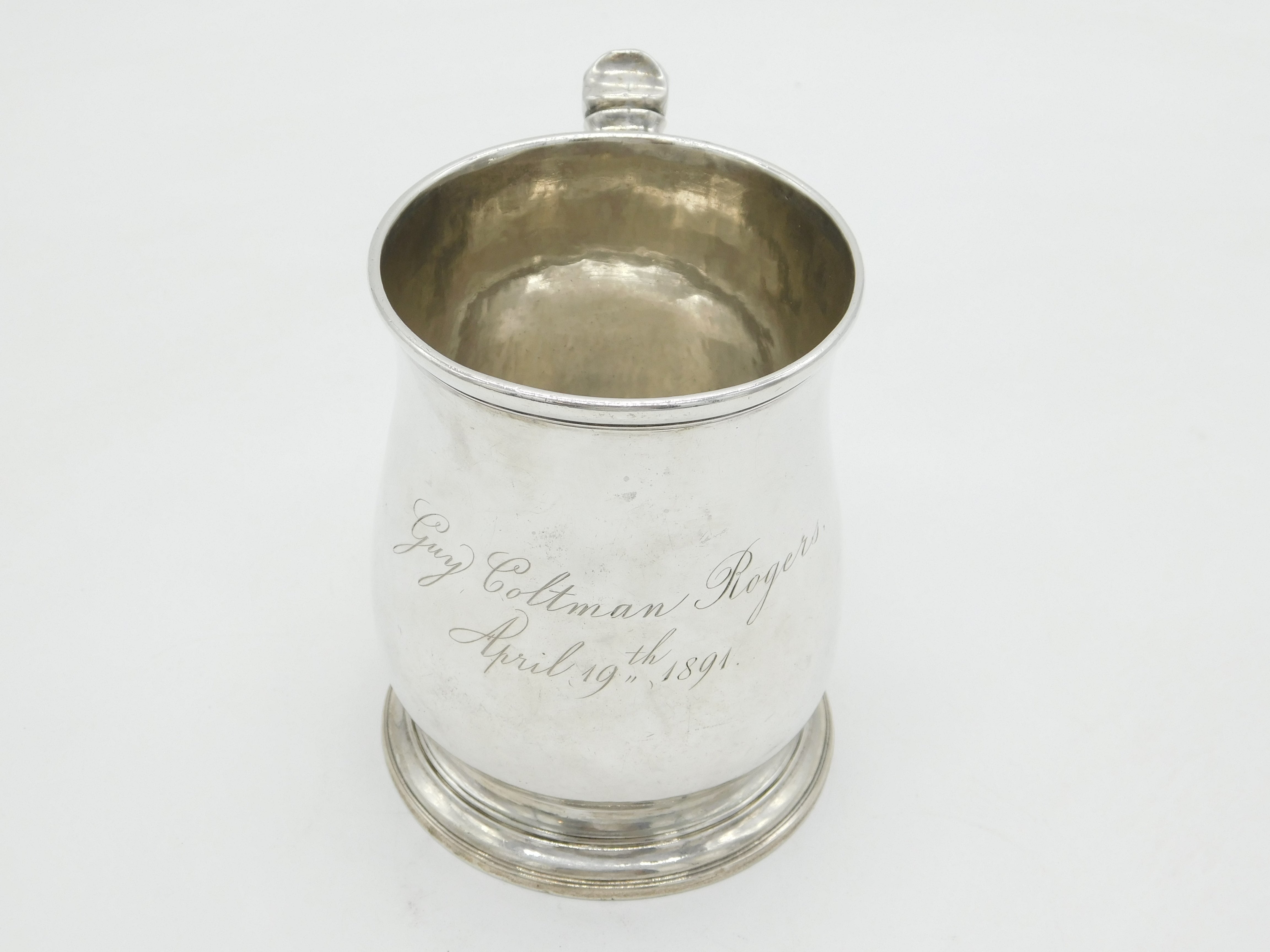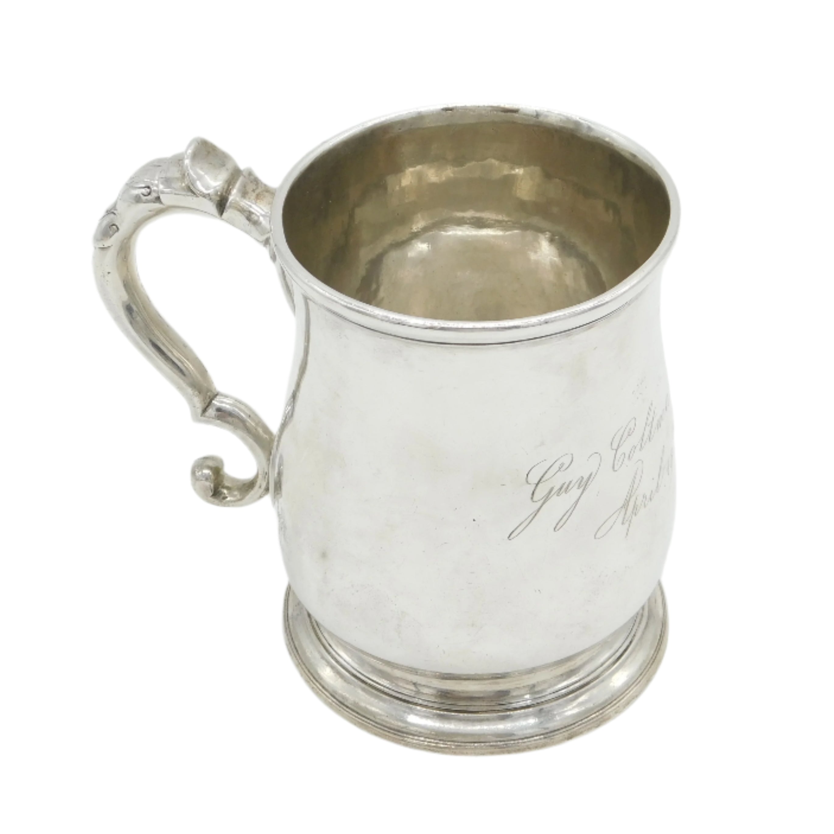Details: A fantastic and wonderfully designed antique early georgian Newcastle provincial sterling silver half-pint baluster tankard mug with gorgeous case floral handle hallmarked to the base with lovely hallmarks, Newcastle 1743 by William Partis of Tyne Bridge. Later Victorian engraving to the front please note. This is a wonderful item that would make a perfect gift or addition to any collection.