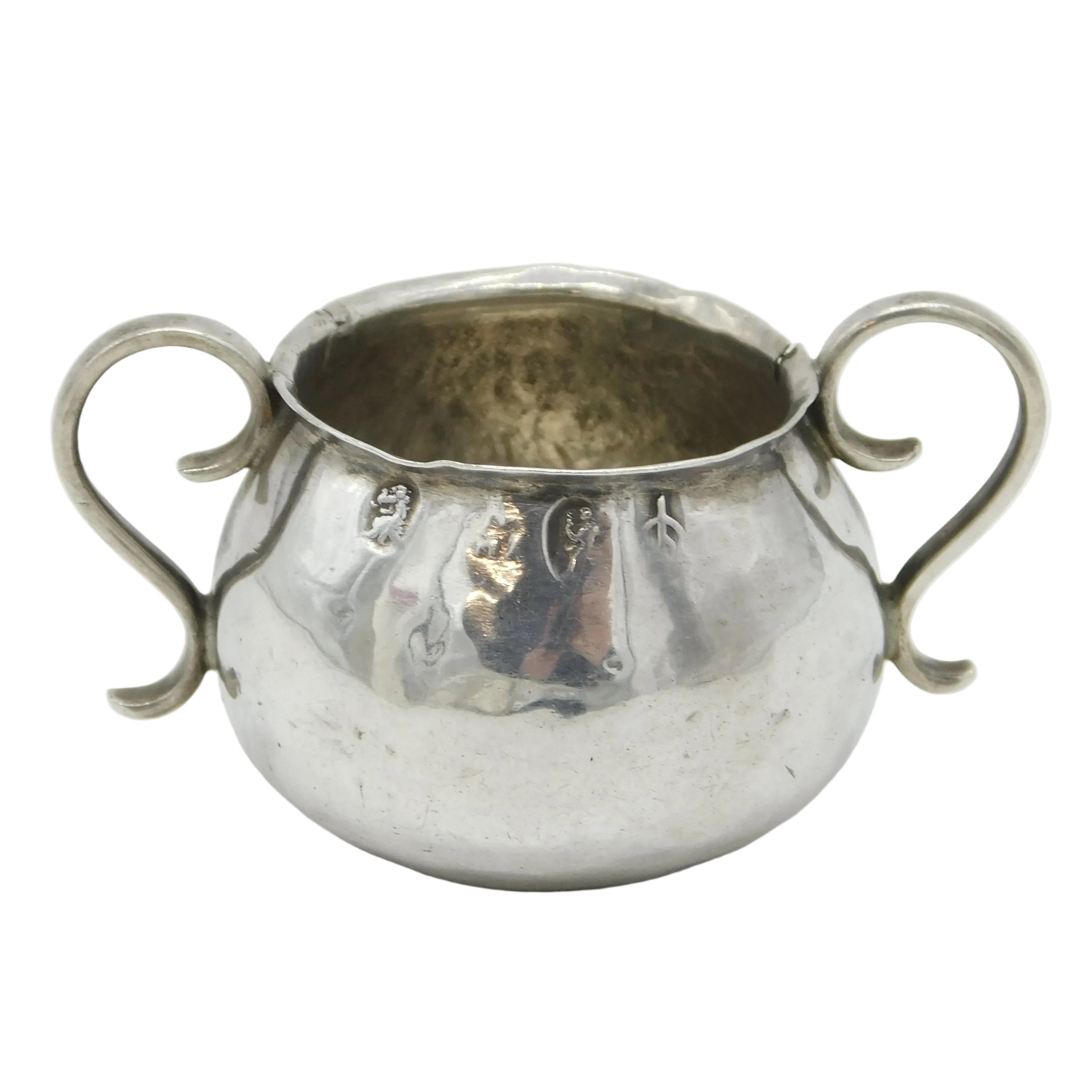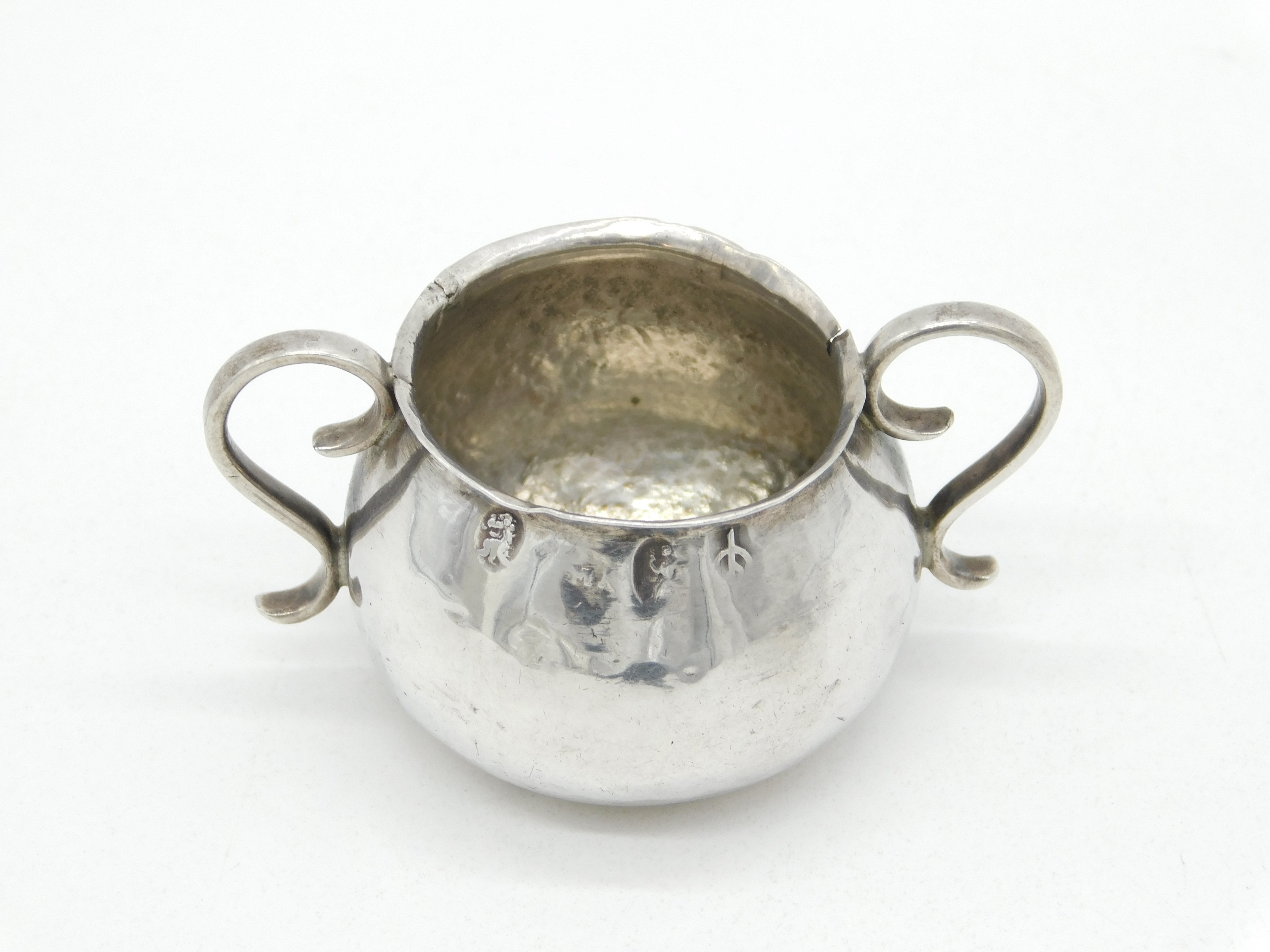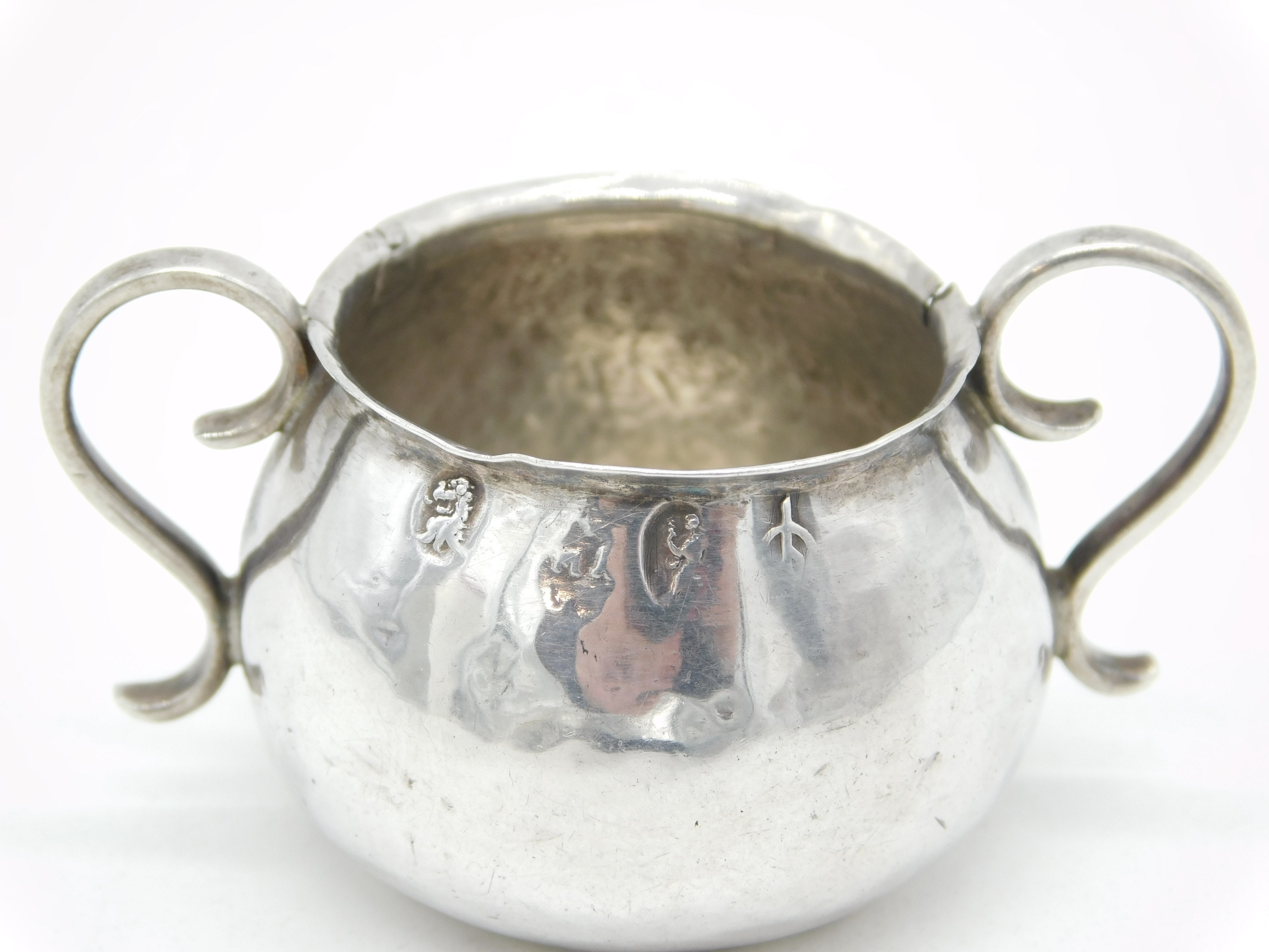 Details: A fantastic and wonderfully designed antique Queen Anne period Britannia standard silver miniature porringer with lovely hammered detailing nicely hallmarked London 1708 by William Matthew I. Small split to the edge of the handle and small solder repair to the outer edge. This is a wonderful item that would make a perfect gift or addition to any collection. We are more than happy to provide XRF reports for items upon request.