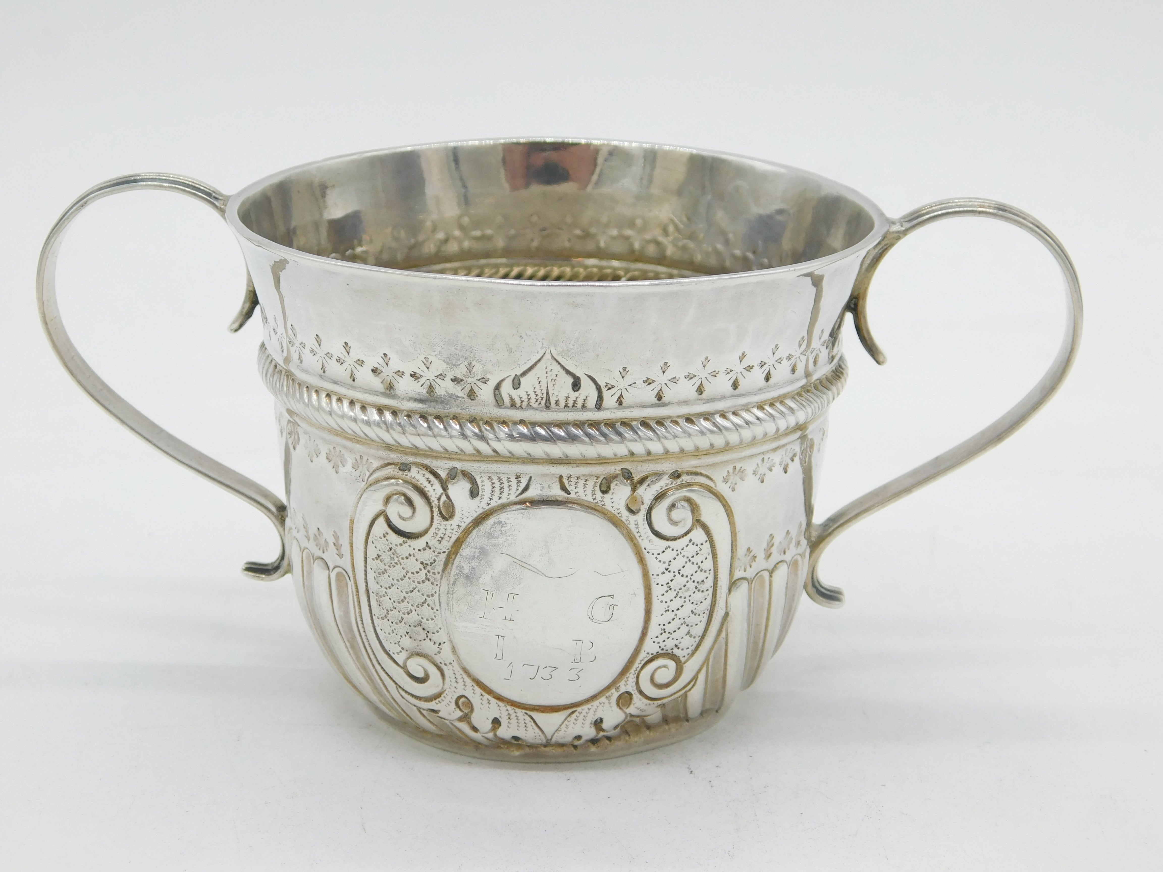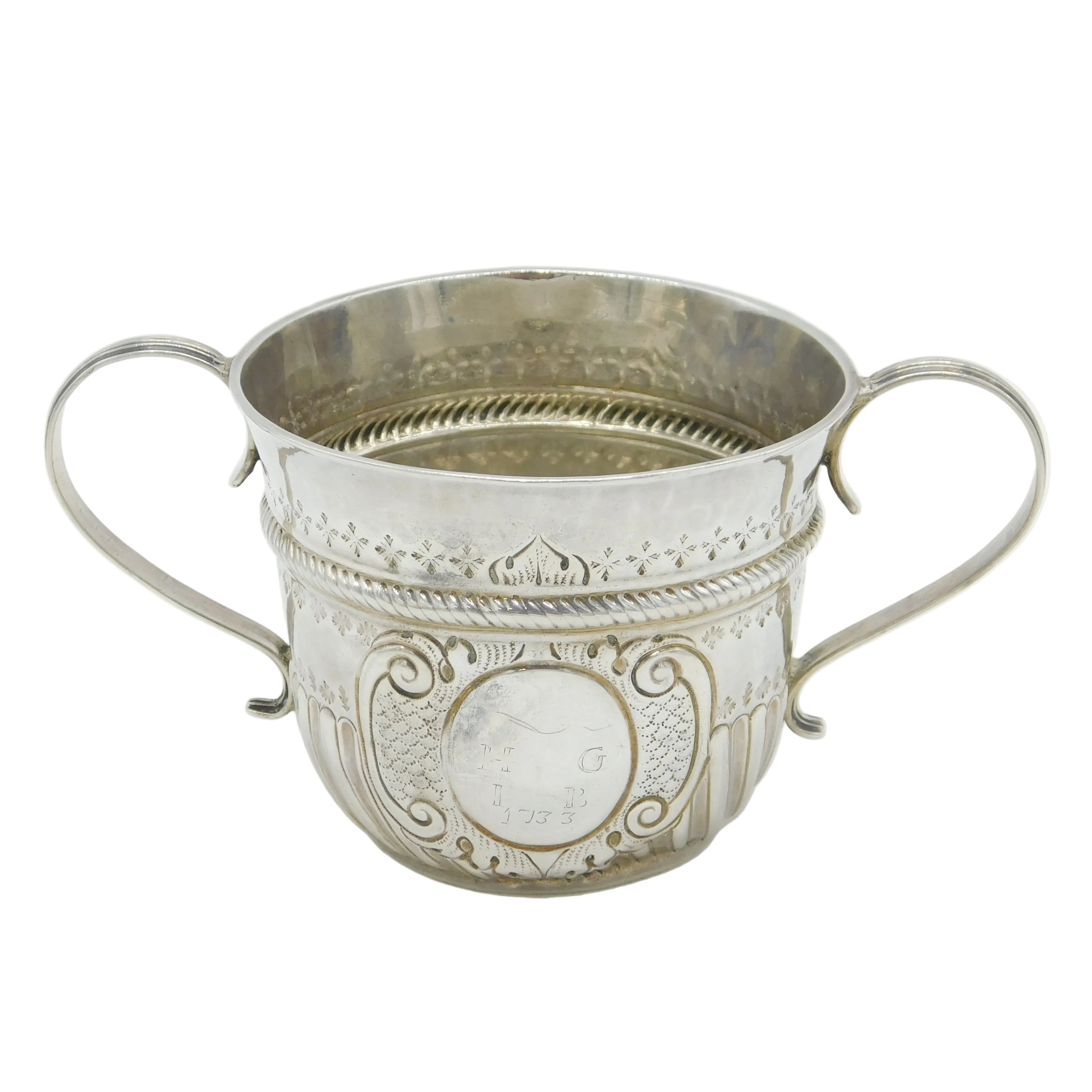 Details: A fantastic and wonderfully designed antique early britannia standard silver fluted two-handled porringer with bright cut floral decoration, hallmarked to the top edge for London 1708 by Robert Cooper. This is a wonderful item that would make a perfect gift or addition to any collection. We are more than happy to provide XRF reports for items upon request.