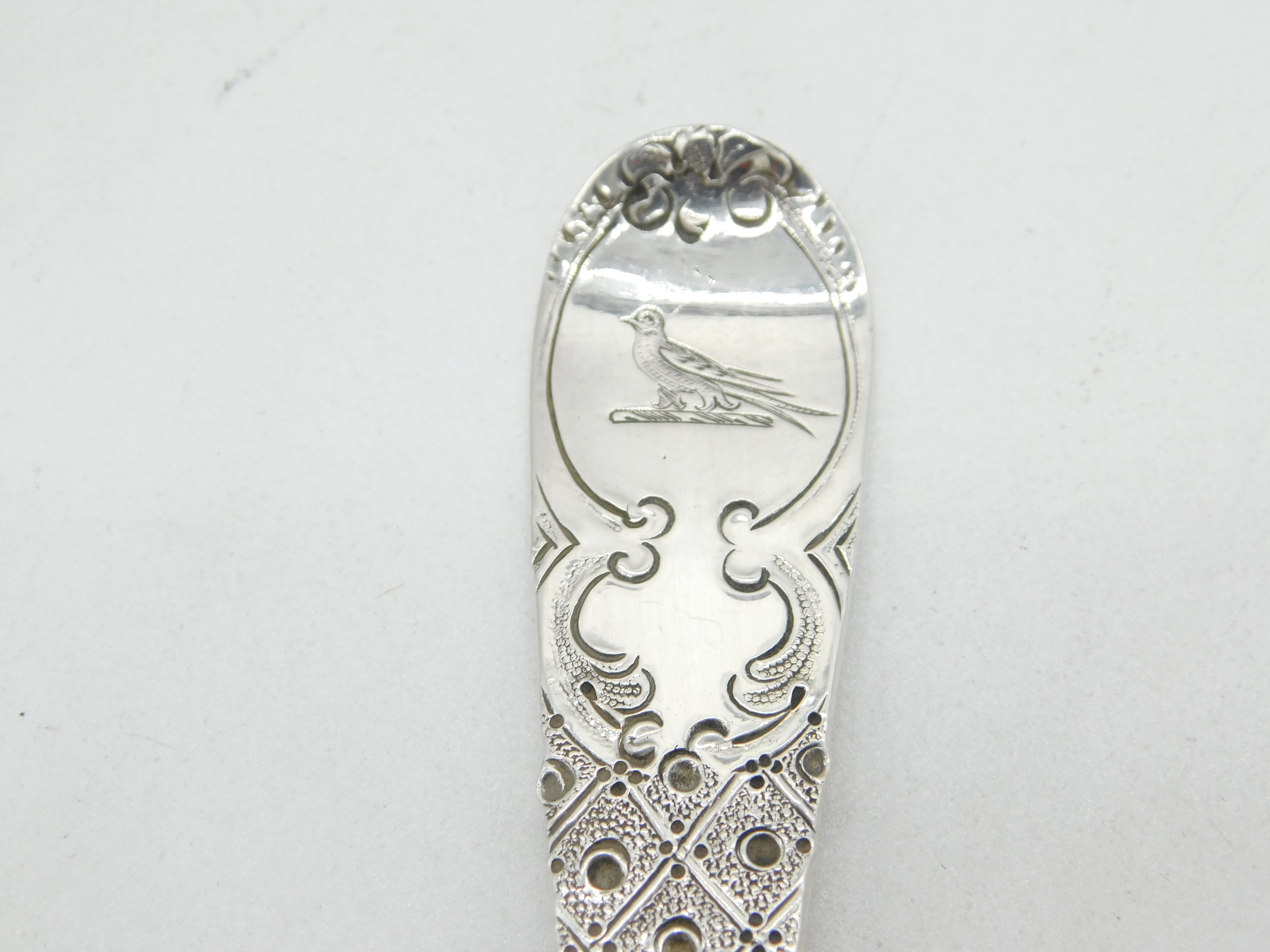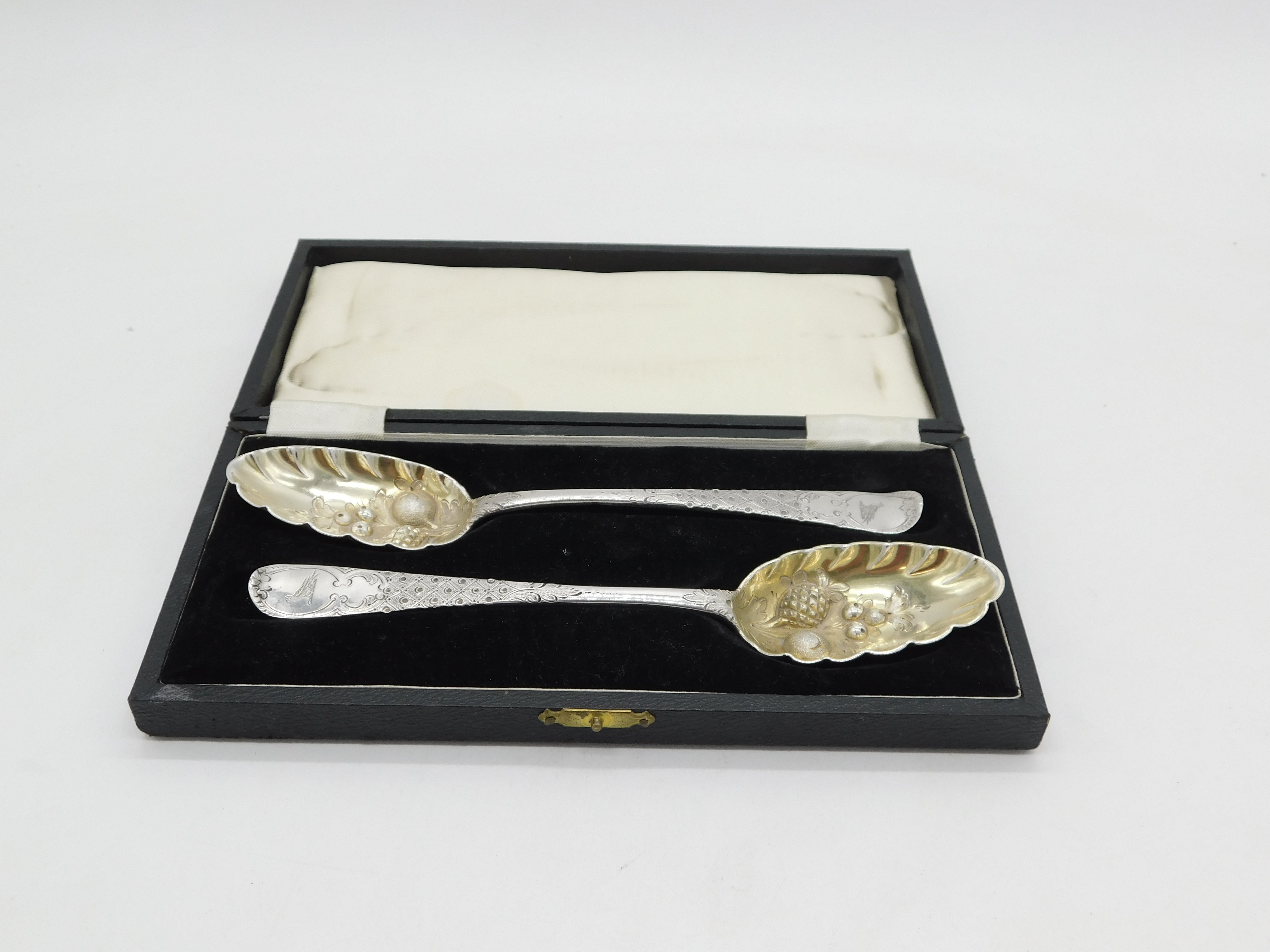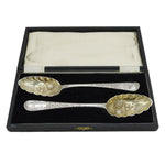 Details: A fantastic and wonderfully designed antique georgian boxed pair of Scottish sterling silver ornate berry spoons both with charming bird crests hallmarked Edinburgh c1790 by David Marshall. This is a wonderful item that would make a perfect gift or addition to any collection. We are more than happy to provide XRF reports for items upon request.