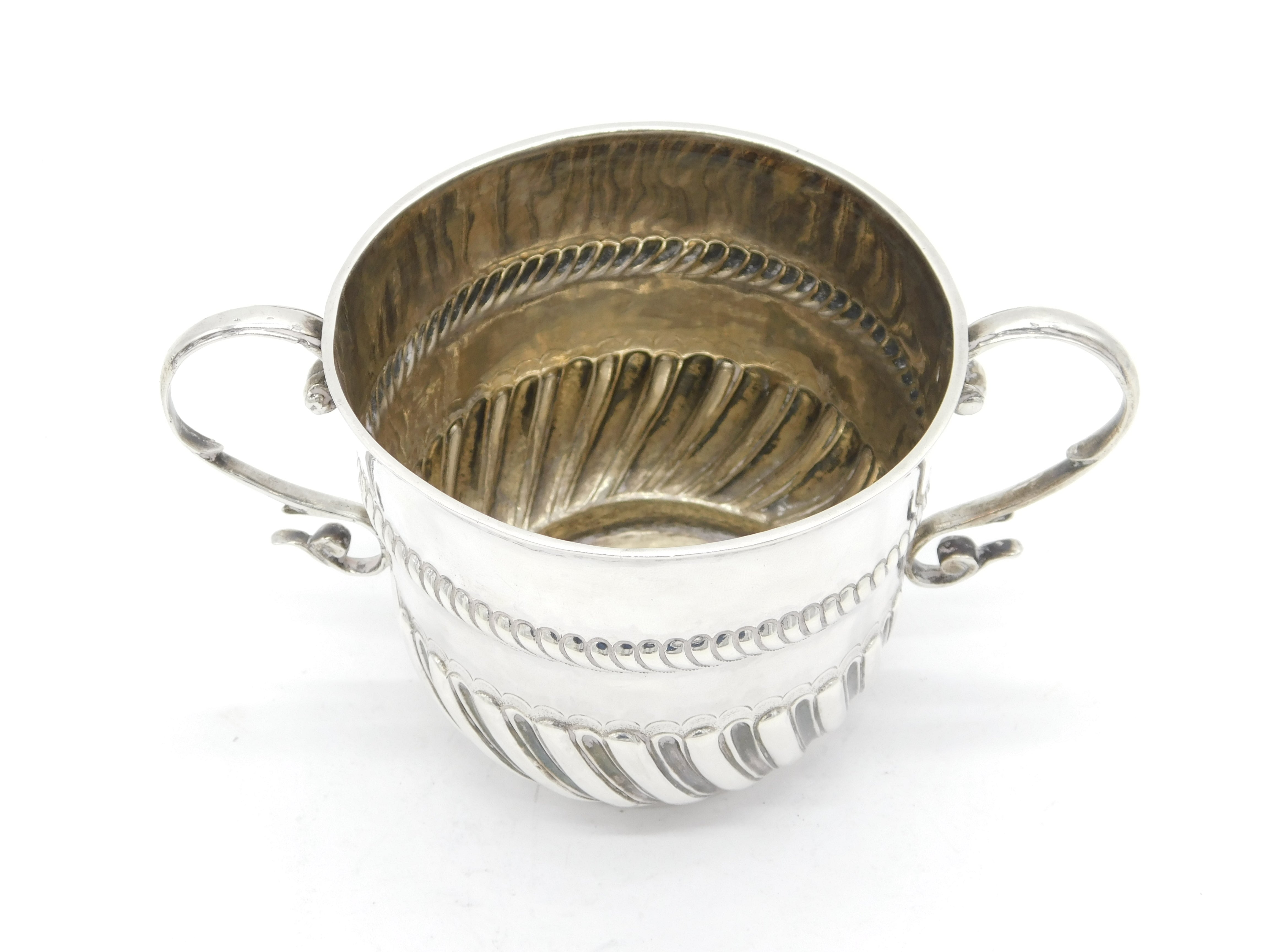 William III Sterling Silver Fluted Porringer Antique 1690 London Jonah Kirke