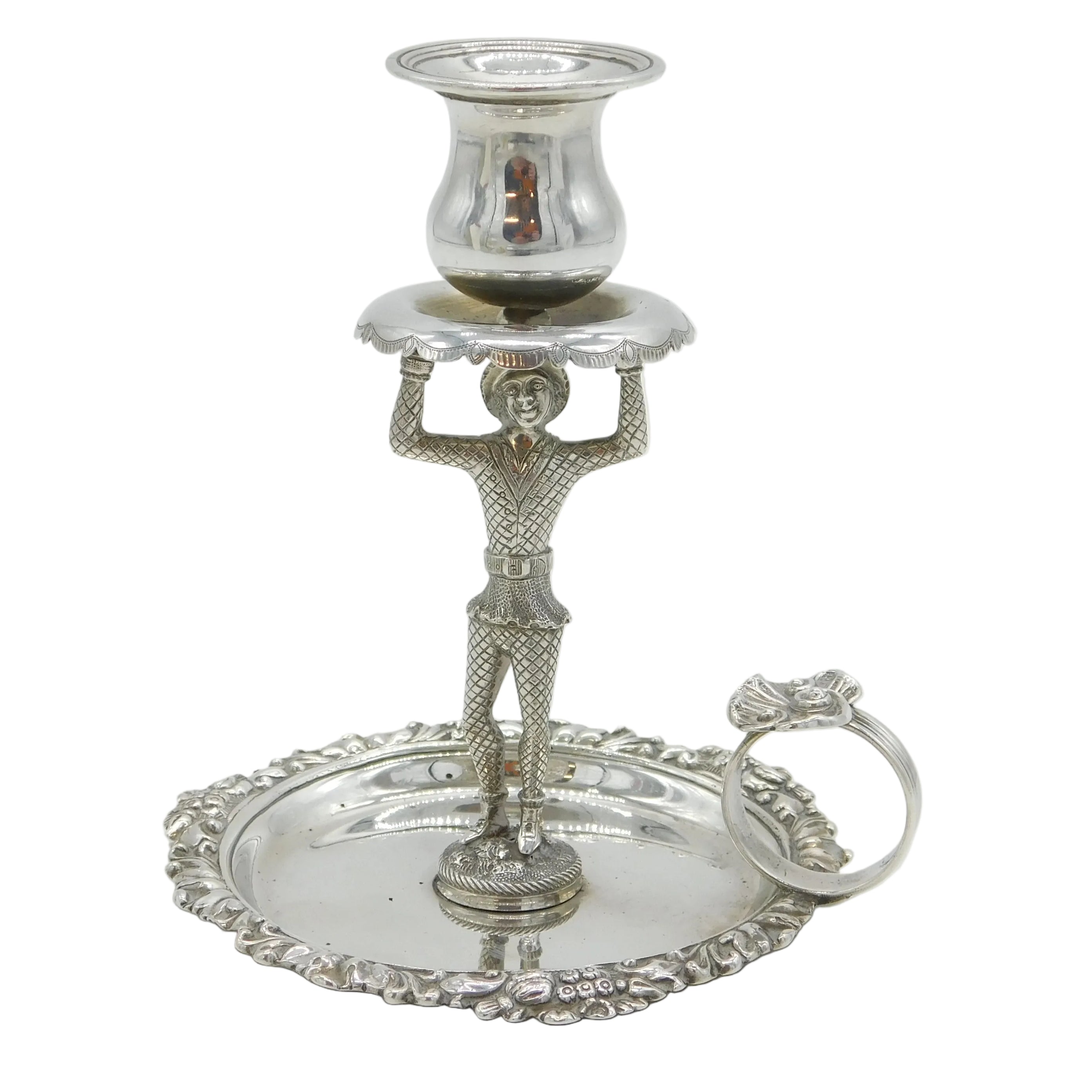 William IV Sterling Silver Novelty Harlequin Candle Taperstick Antique London