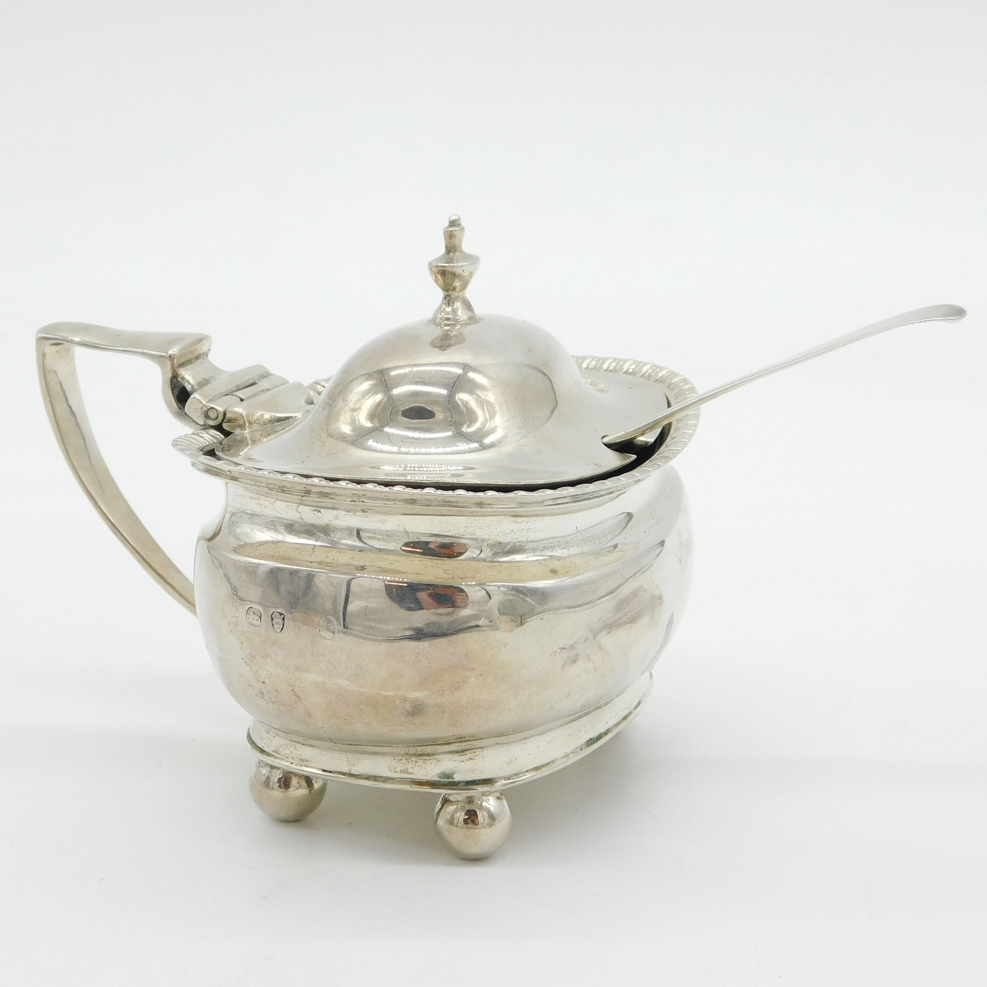 George III Sterling Silver Blue Glass Lined Mustard Pot Antique c1800 London