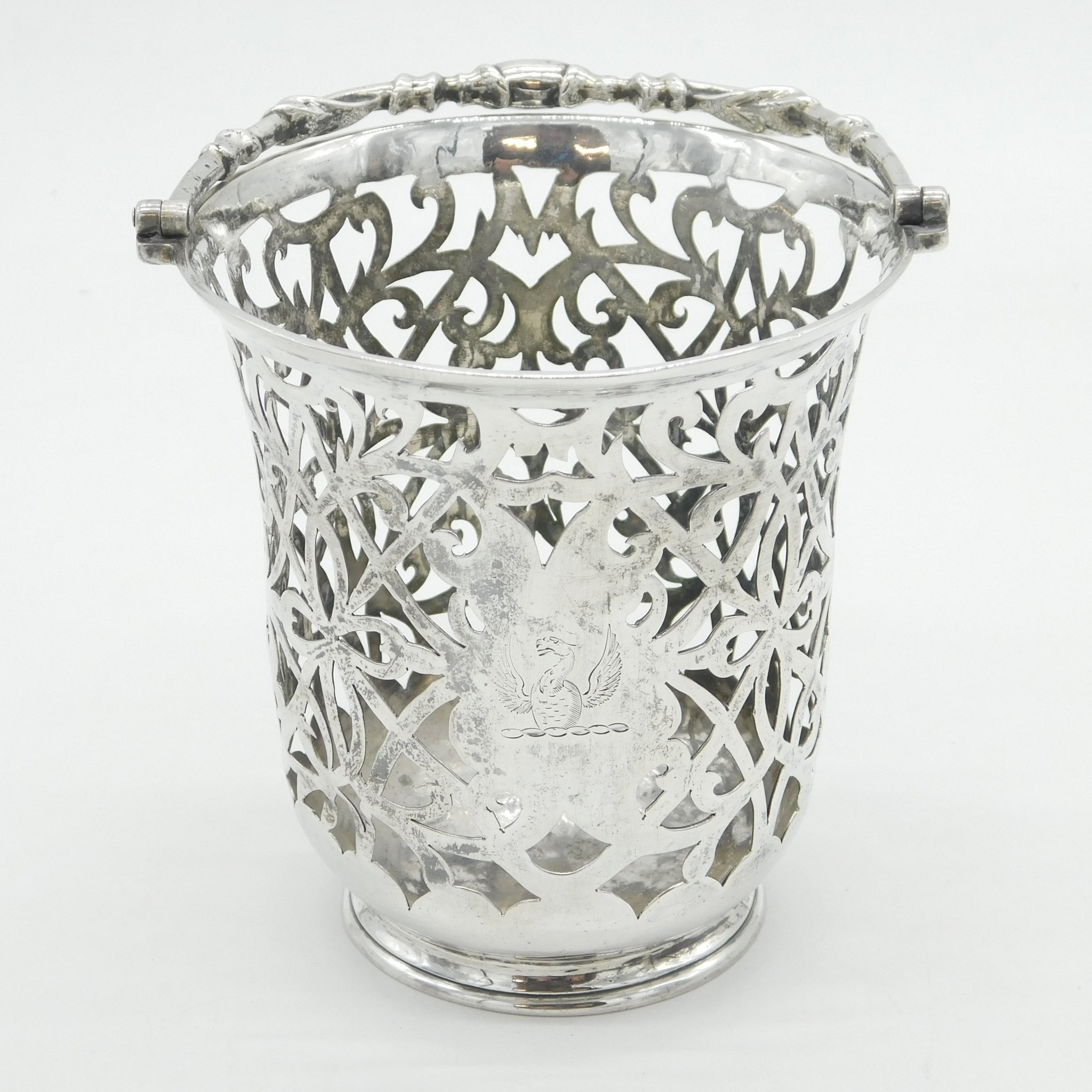 George II Sterling Silver Pierced Crested Treat Basket Antique 1751 London