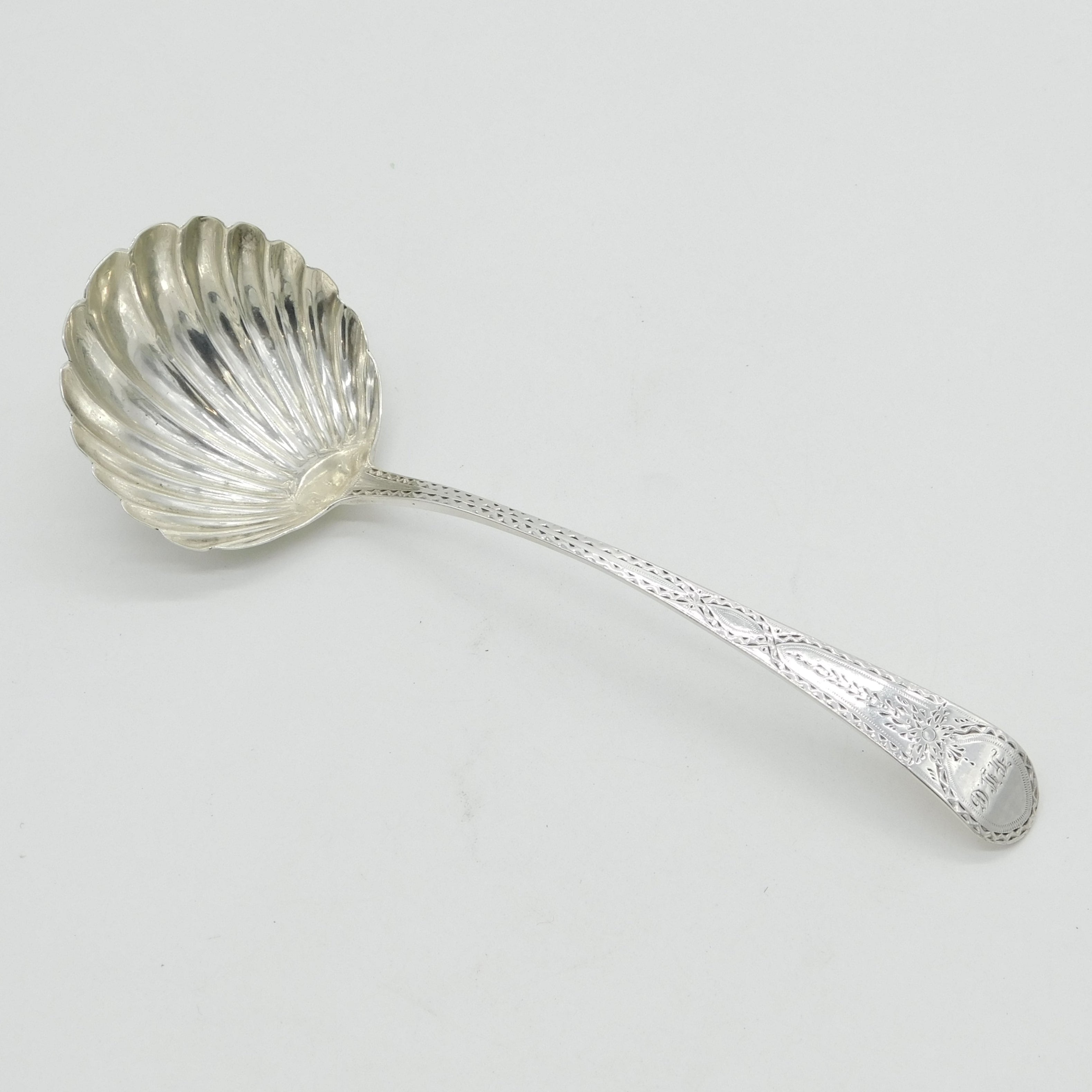 George III Sterling Silver Bright Cut Shell Bowl Ladle Spoon Antique 1784 London