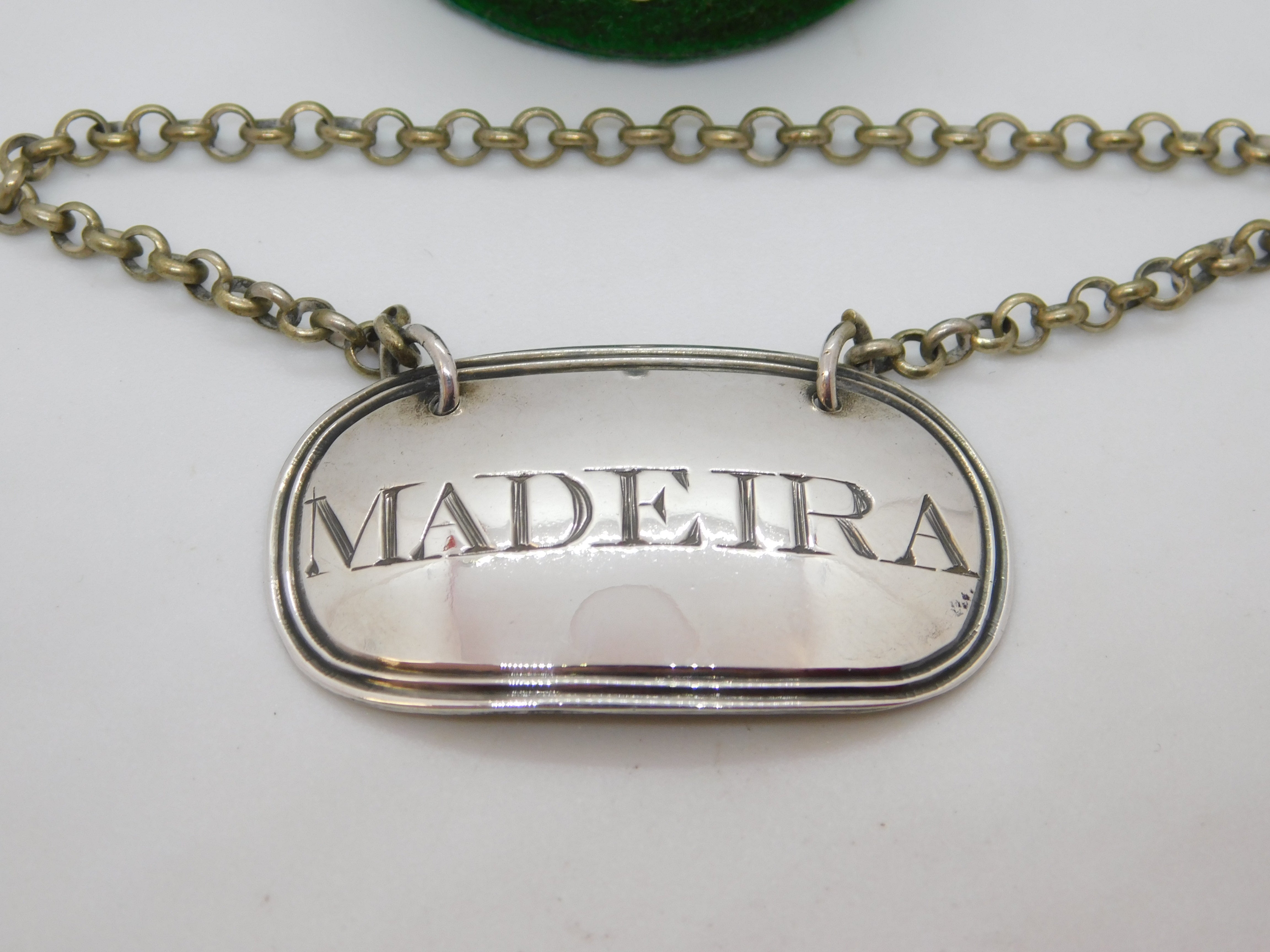 George III Sterling Silver Bright Cut Madeira Decanter Label Antique 1803 London