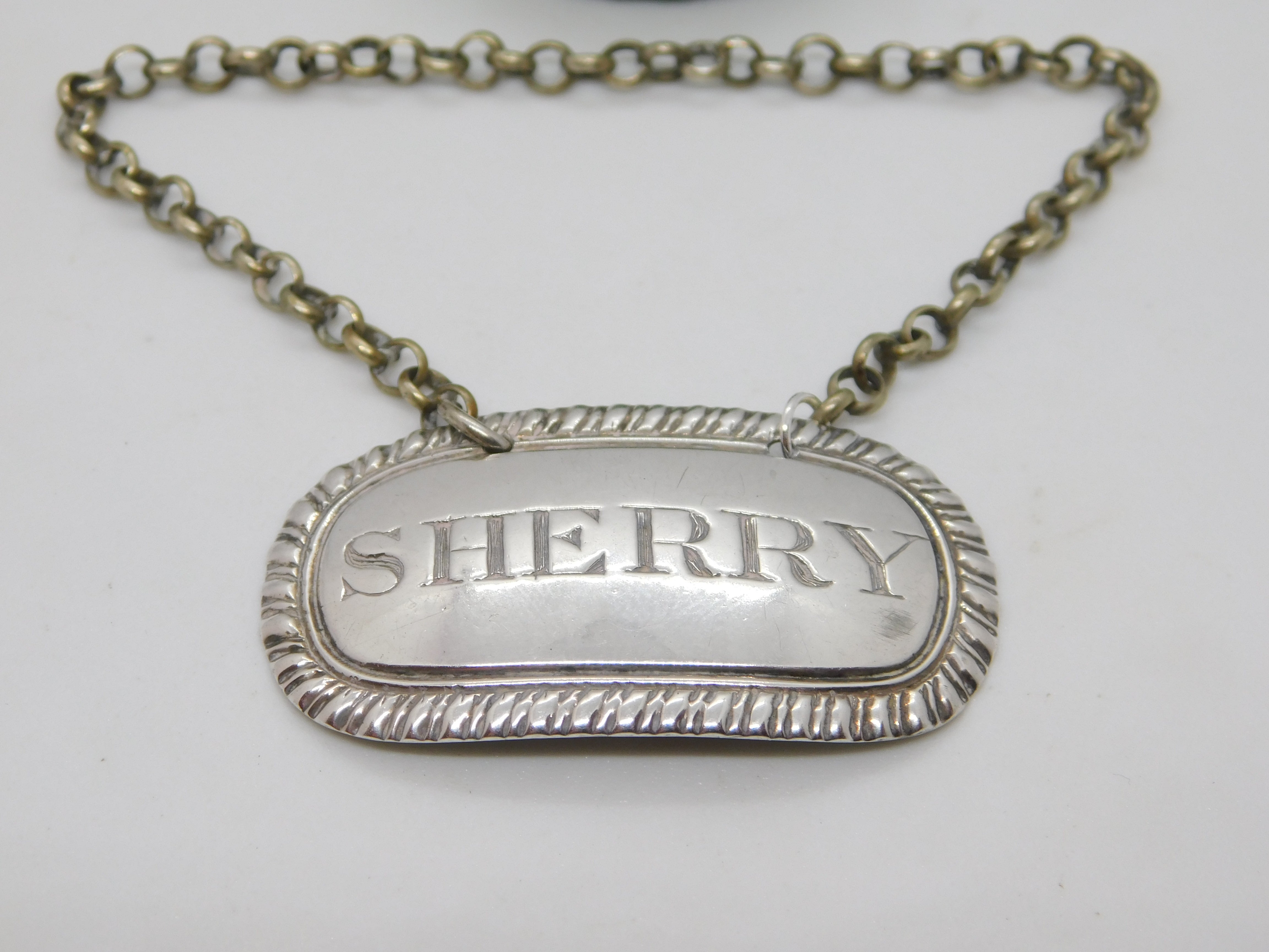 George III Sterling Silver Bright Cut Sherry Decanter Label Antique 1807 London