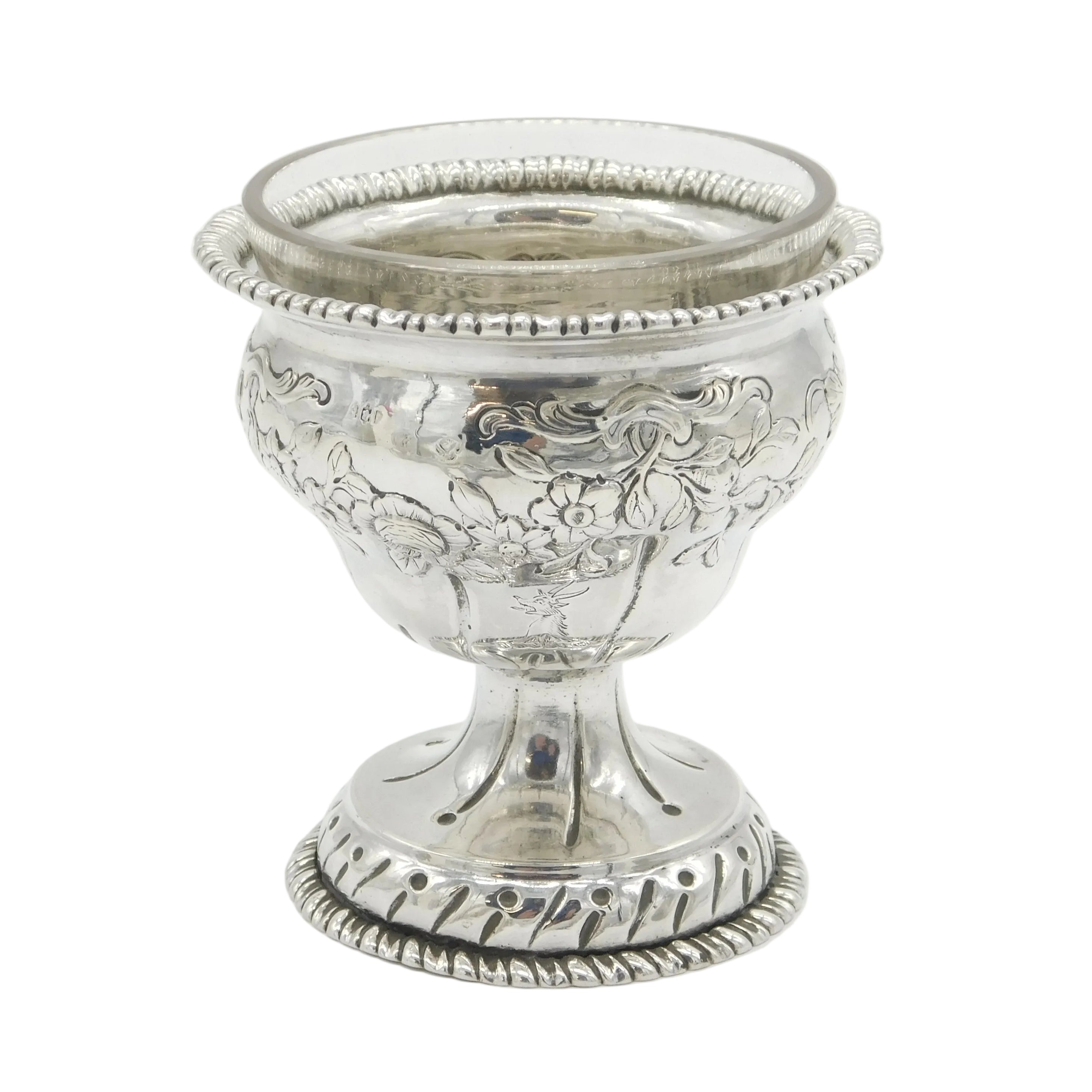 Irish George II Sterling Silver Floral Pedestal Salt Cellar Antique c1750 Dublin