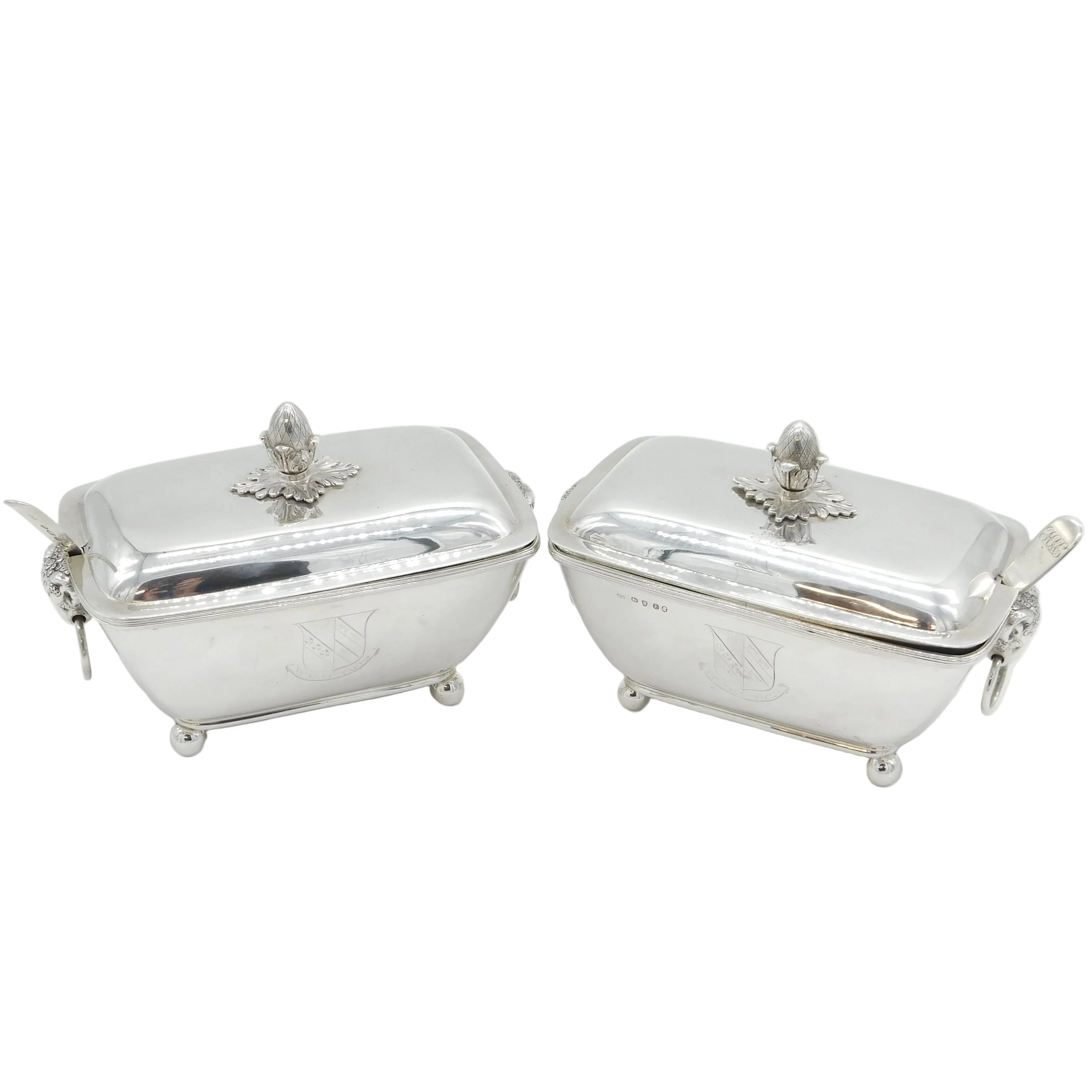 George III Pair of Sterling Silver Ram Mask Sauce Tureens Antique 1800 London