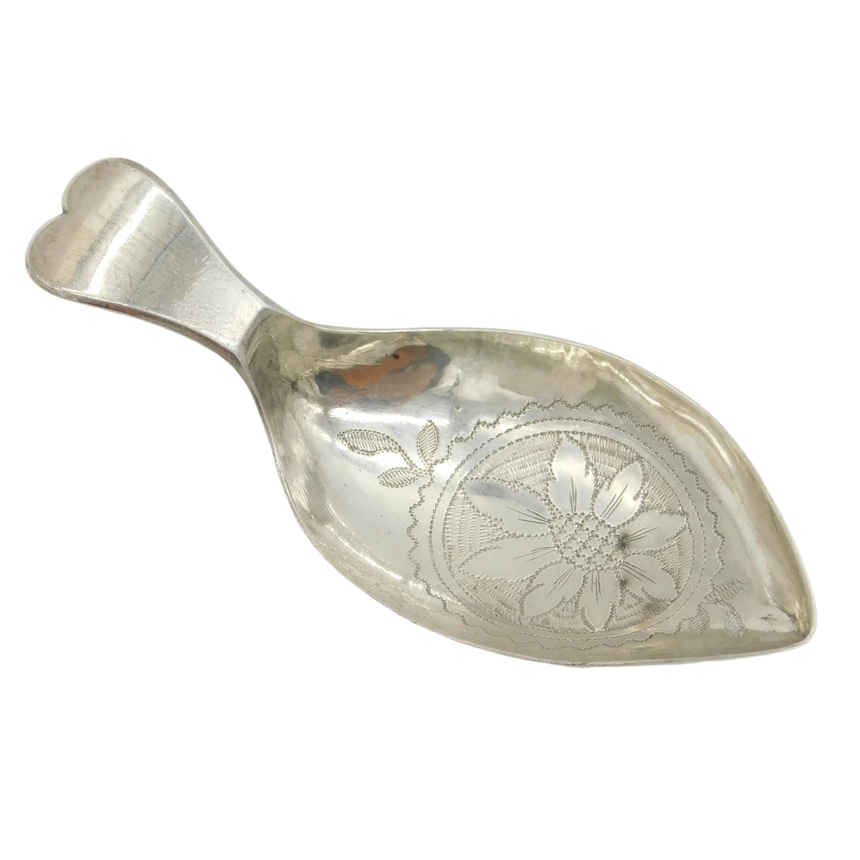 George III Sterling Silver Floral Pattern Tea Caddy Spoon Antique c1805