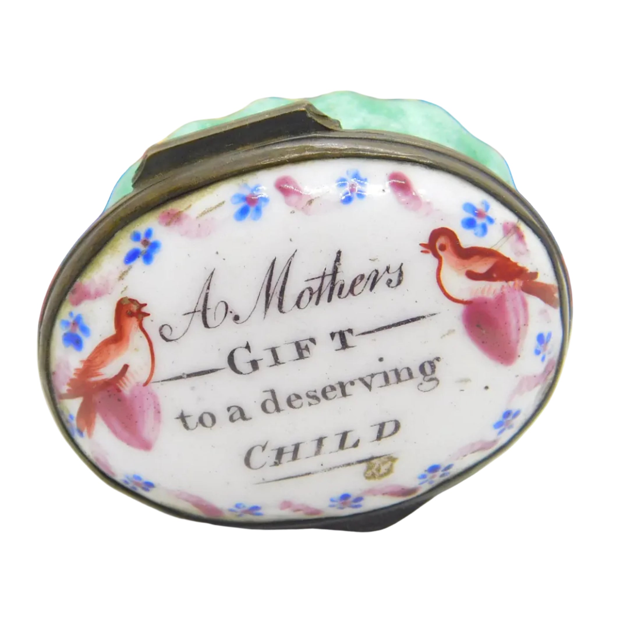 Georgian Bilston Enamel 'A Mothers Gift to a deserving Child' Patch Box c1780