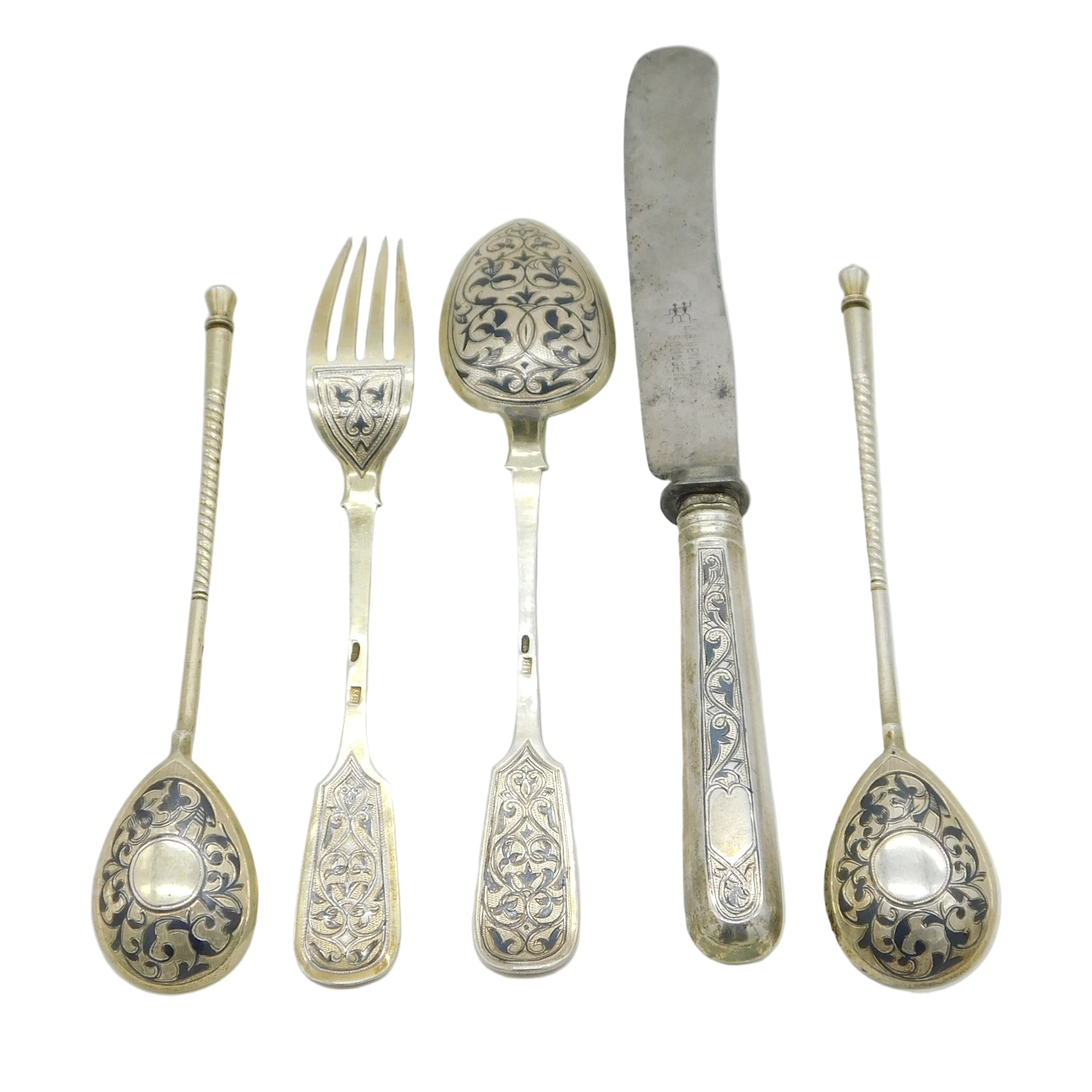 19th Century Imperial Russian .84 Silver Set of Graduating Cutlery Antique c1880 Moscow