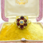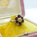 14ct Gold, Almandine Garnet & Water Opal Cluster Ring Antique c1920 Art Deco