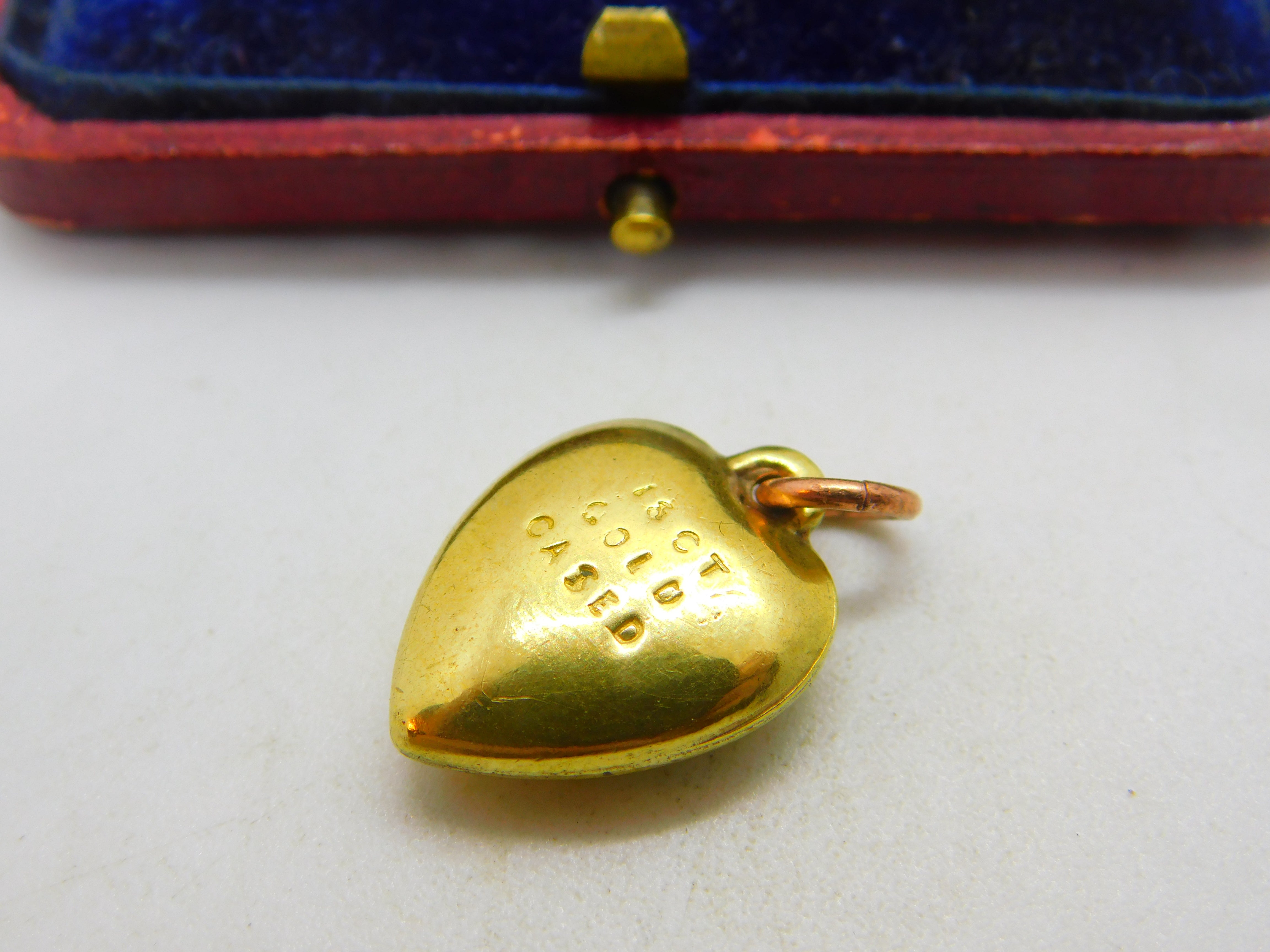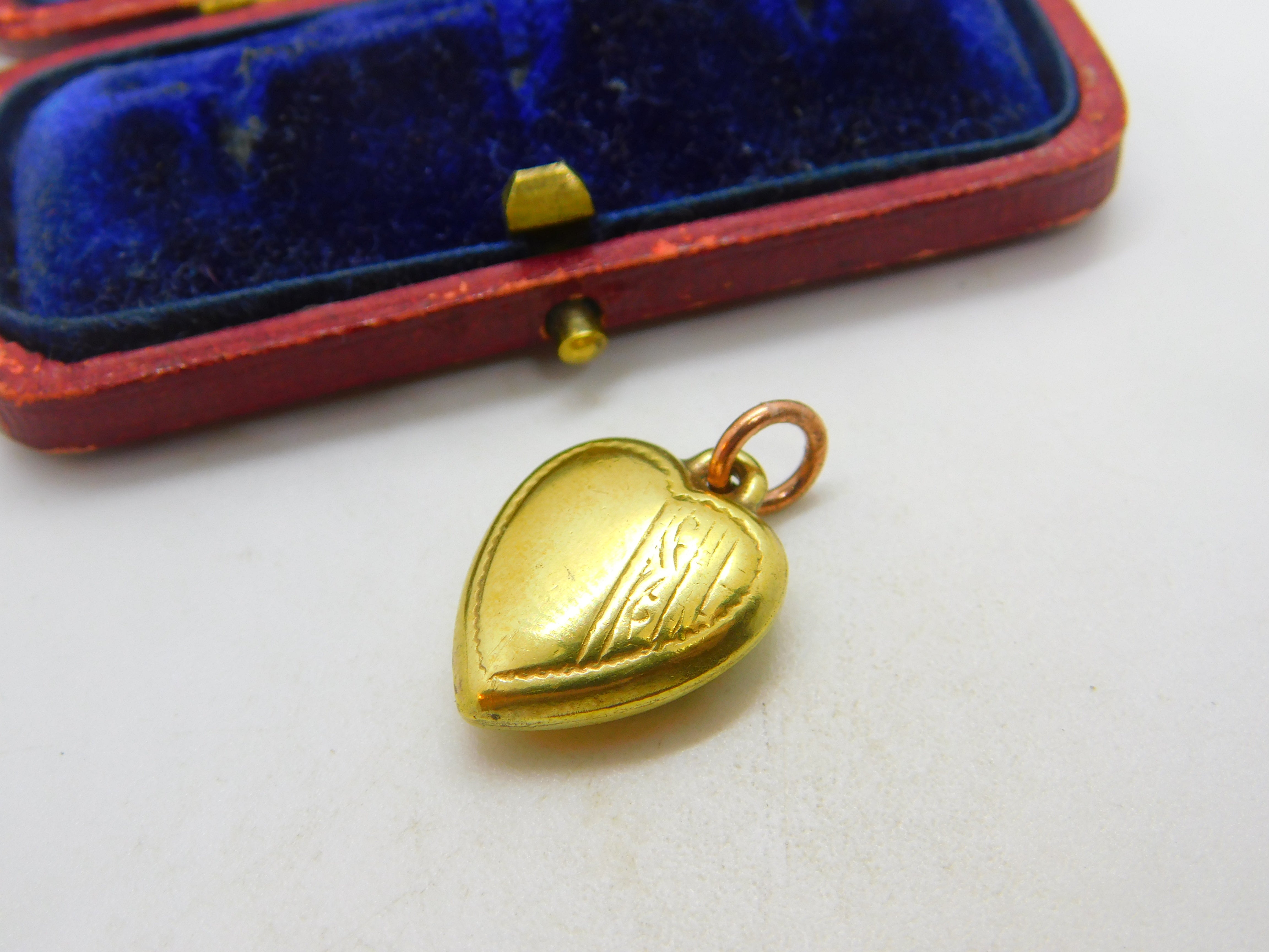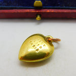 15ct Yellow Gold Cased Puffy Heart Charm or Pendant Antique c1930 Art Deco