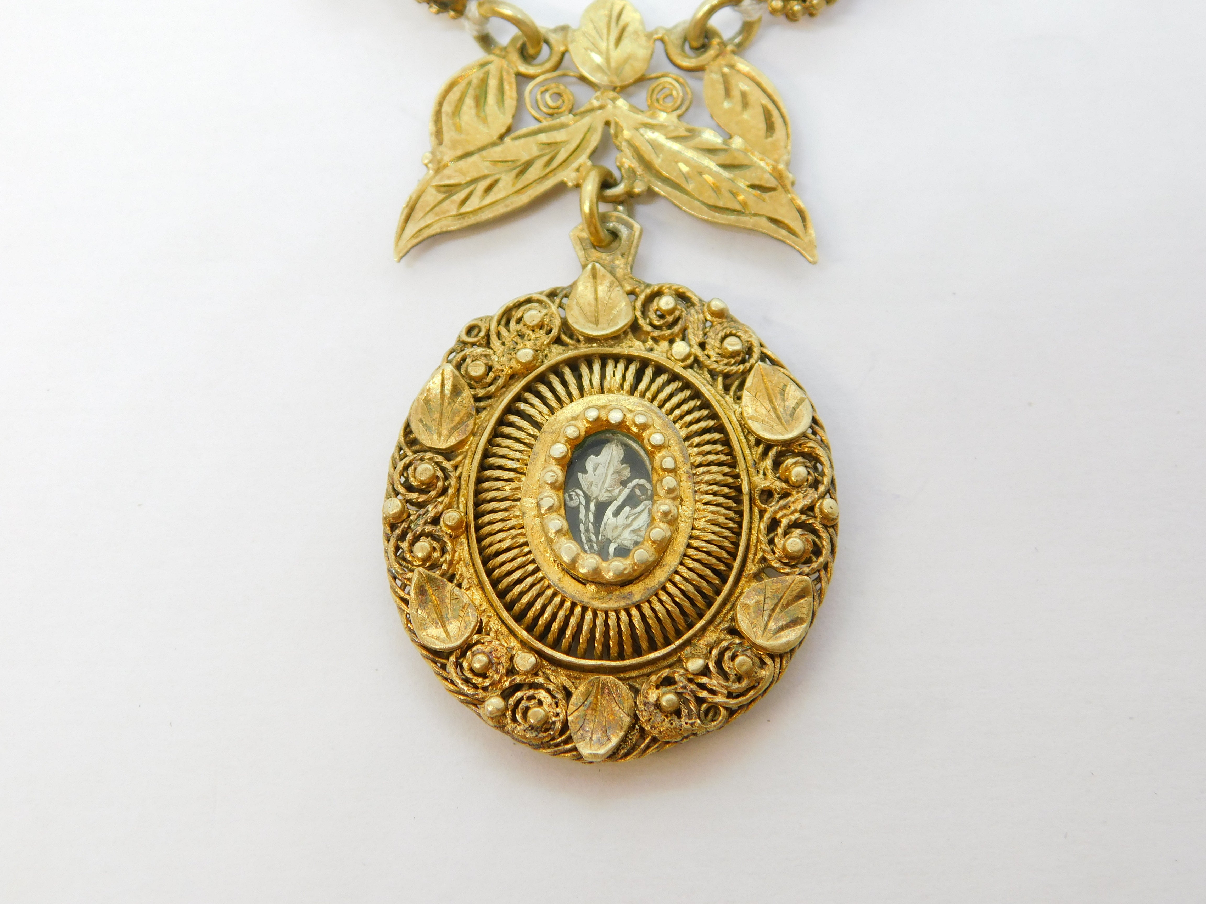 17th Century Spanish Colonial Silver Gilt Cannetille Reliquary Floral Necklace Antique