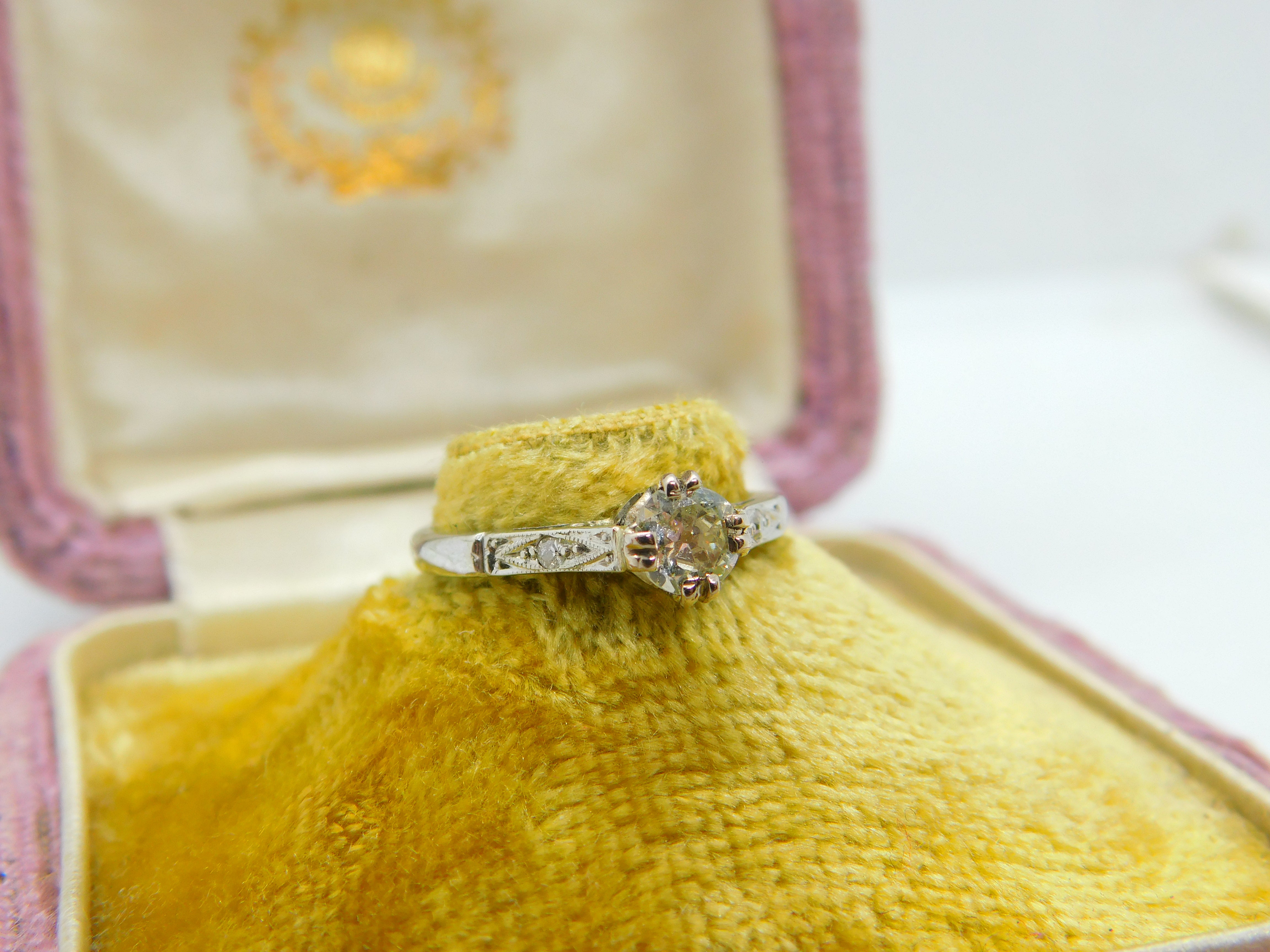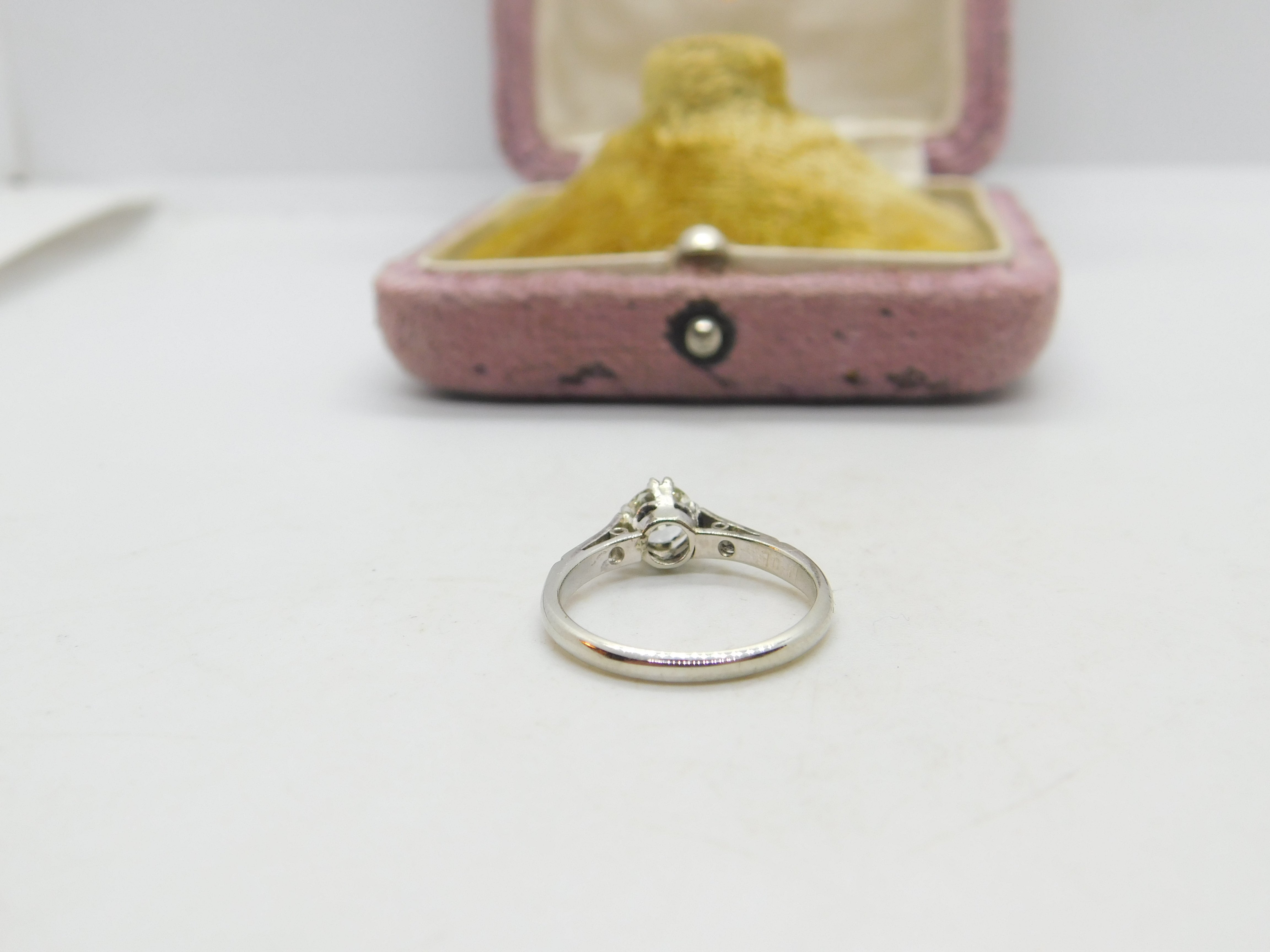 Details: A fantastic and wonderfully designed antique art deco 18ct gold solitaire or engagement ring set with a stunning 0.25ct natural diamond to the centre with great colour and clarity marked 18ct & PLAT to the inner band c1920. The stone has been tested. This is a wonderful item that would make a perfect gift or addition to any collection. The BOX pictured is for PRESENTATION ONLY and is NOT included in the listings but used to frame the pictures unless specifically stated otherwise.