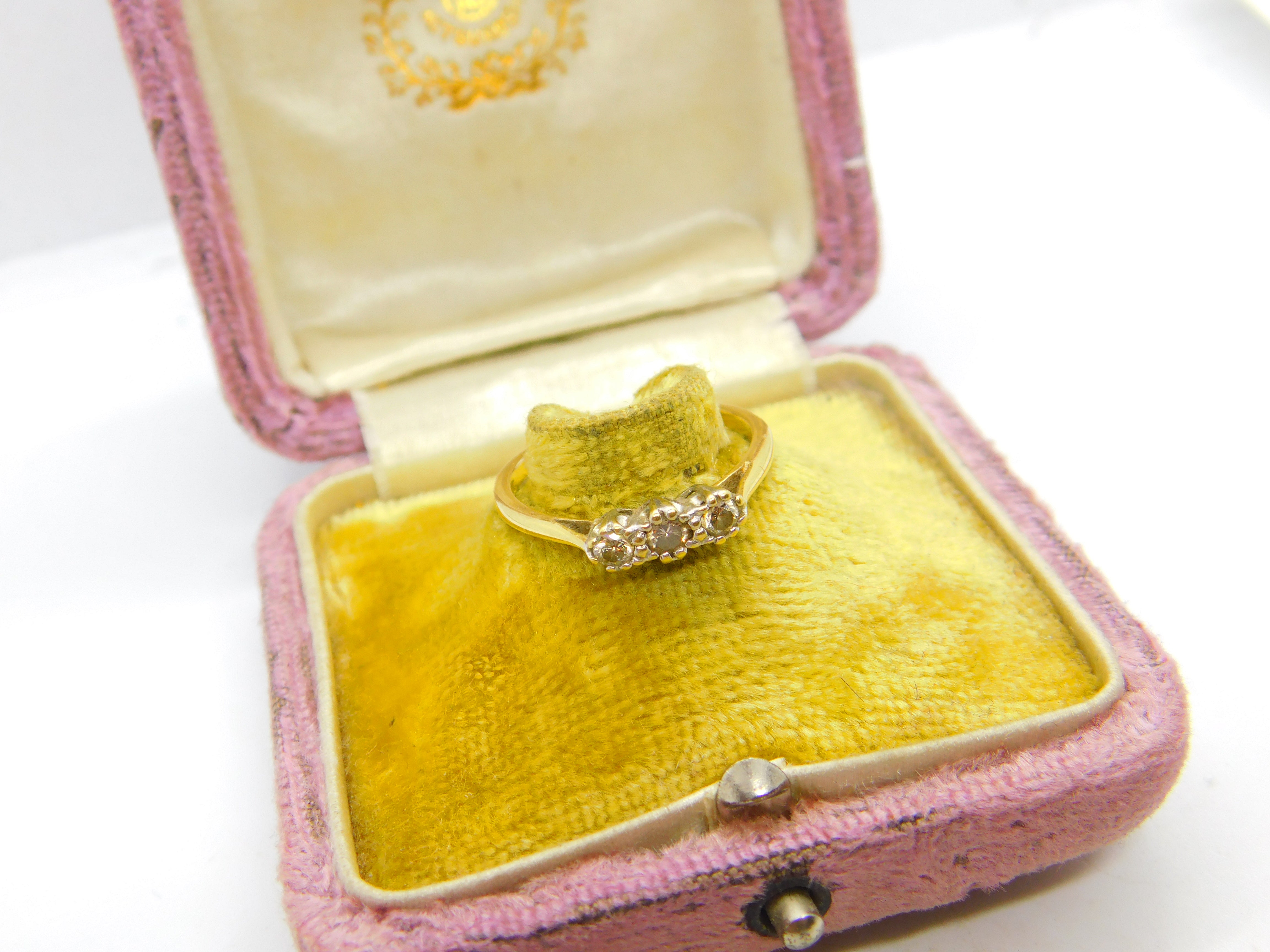 18ct Yellow Gold & 0.3ct Diamond Three Stone Ring Vintage c1970 London