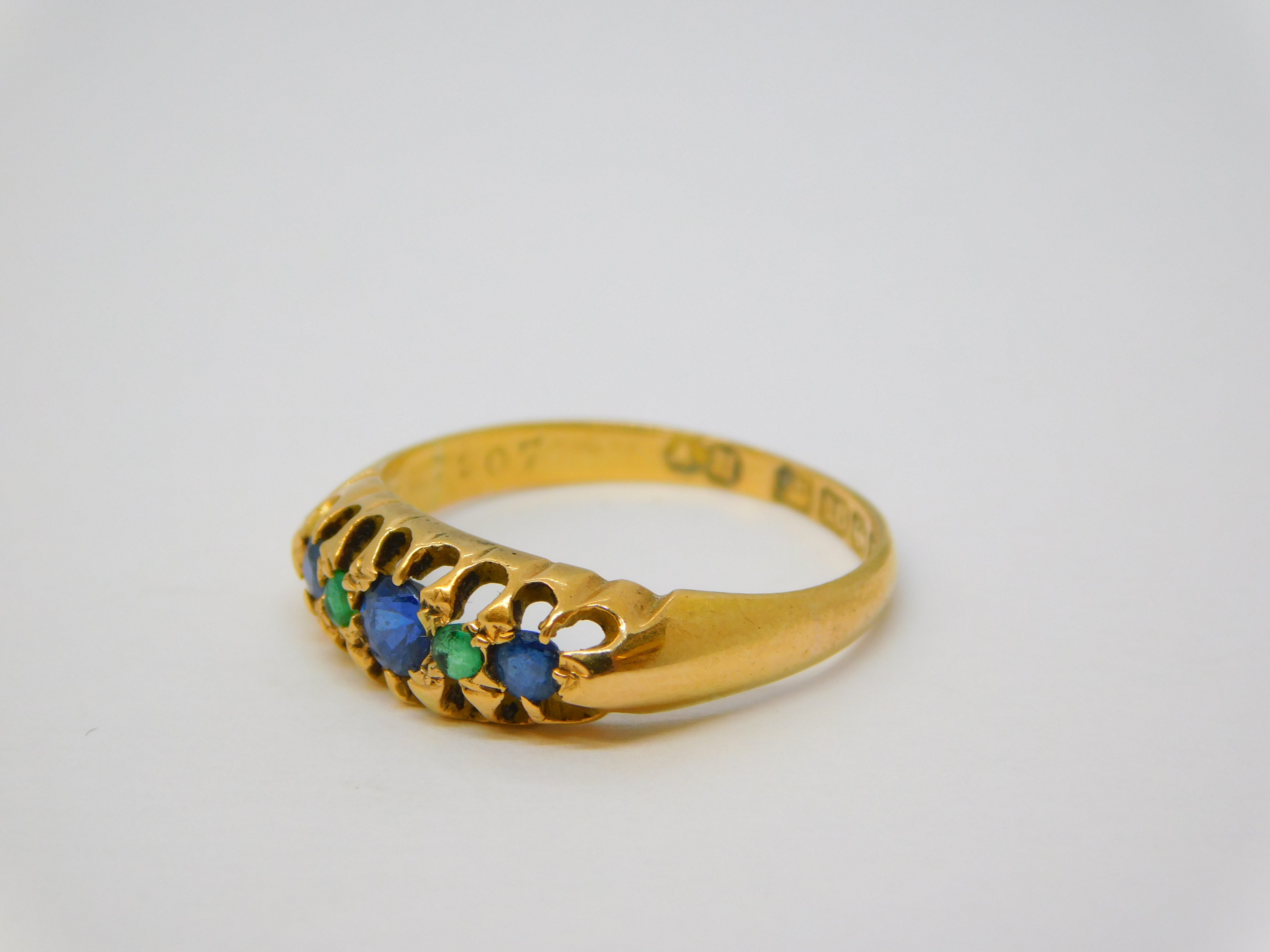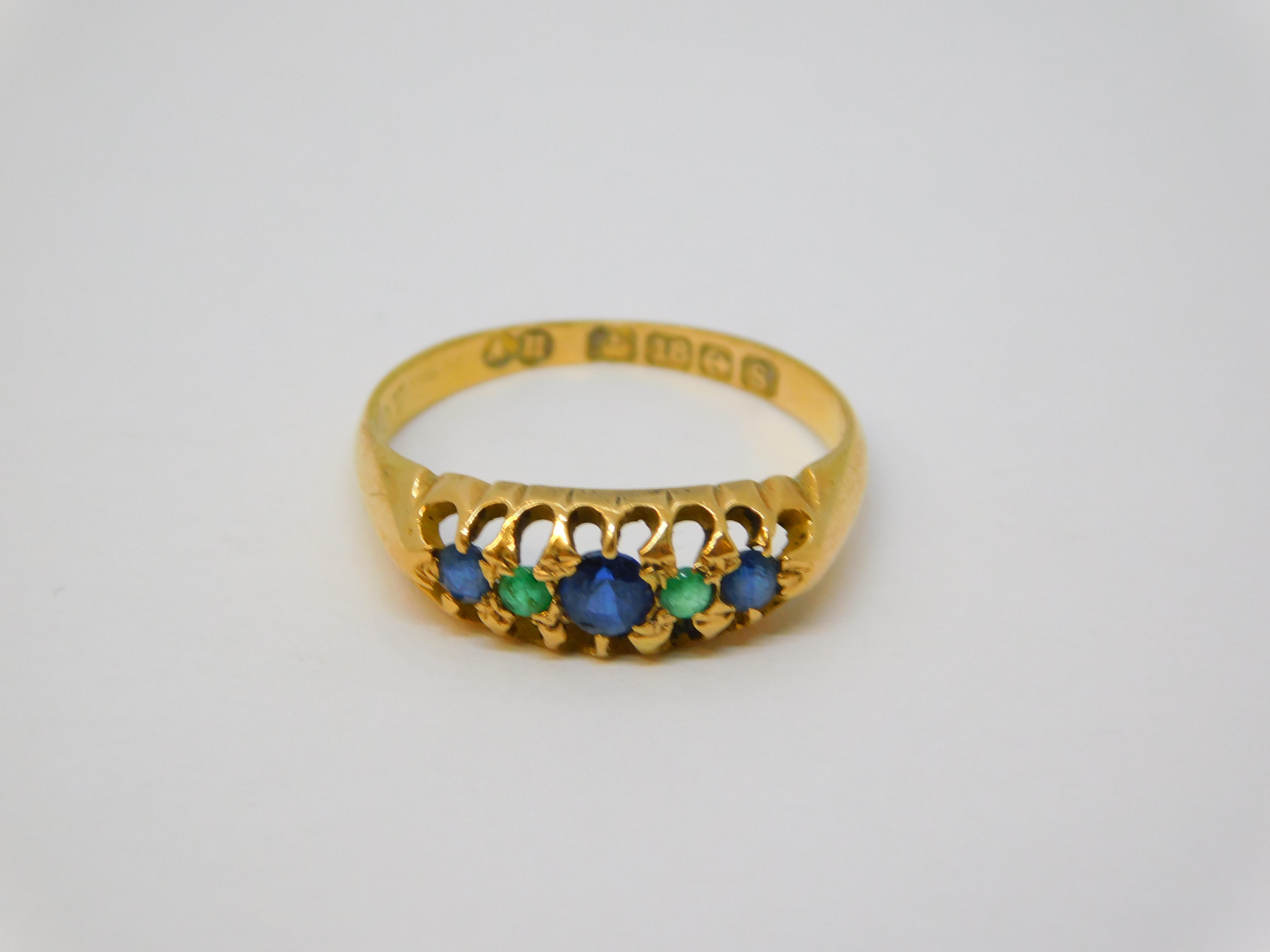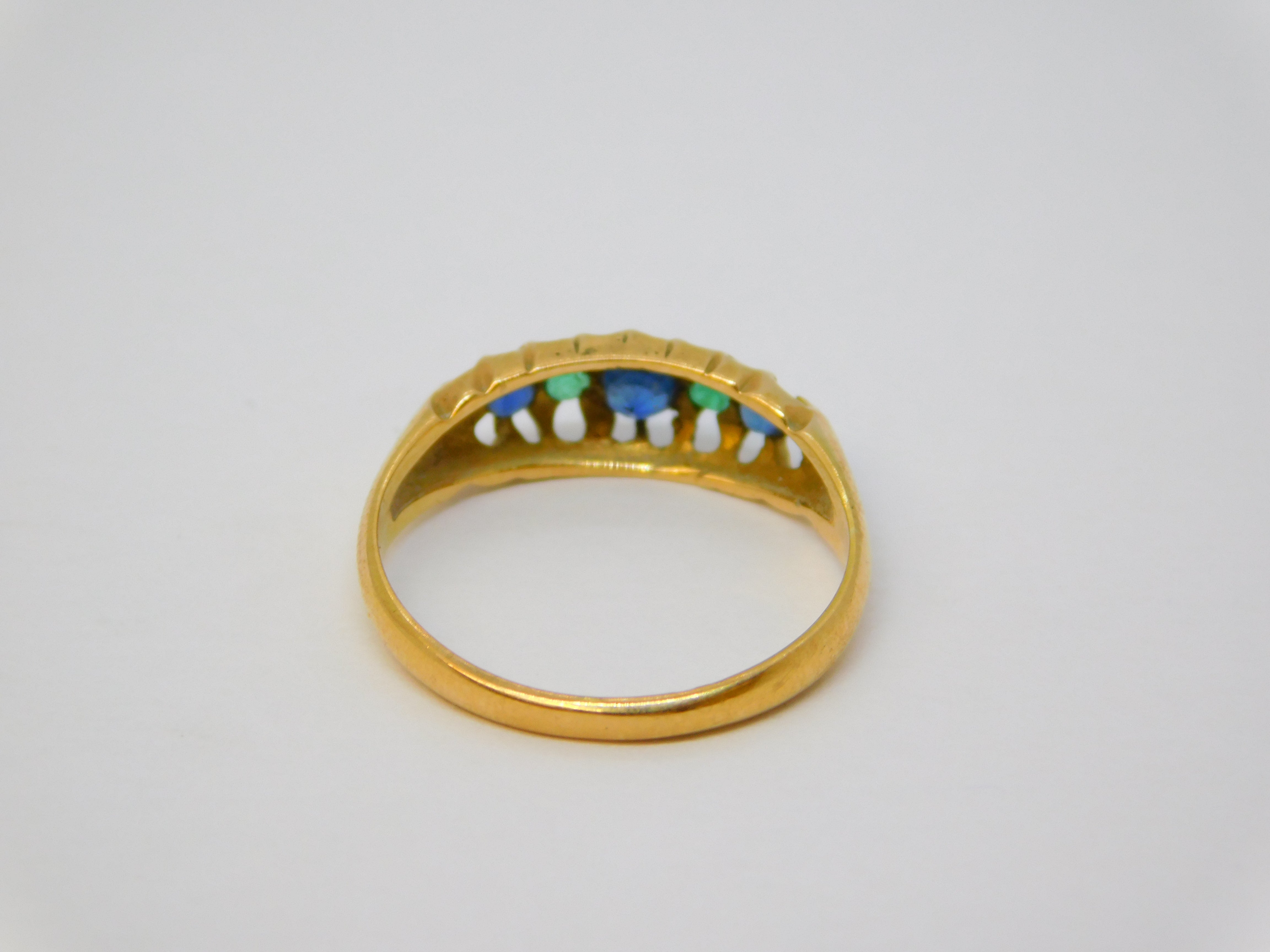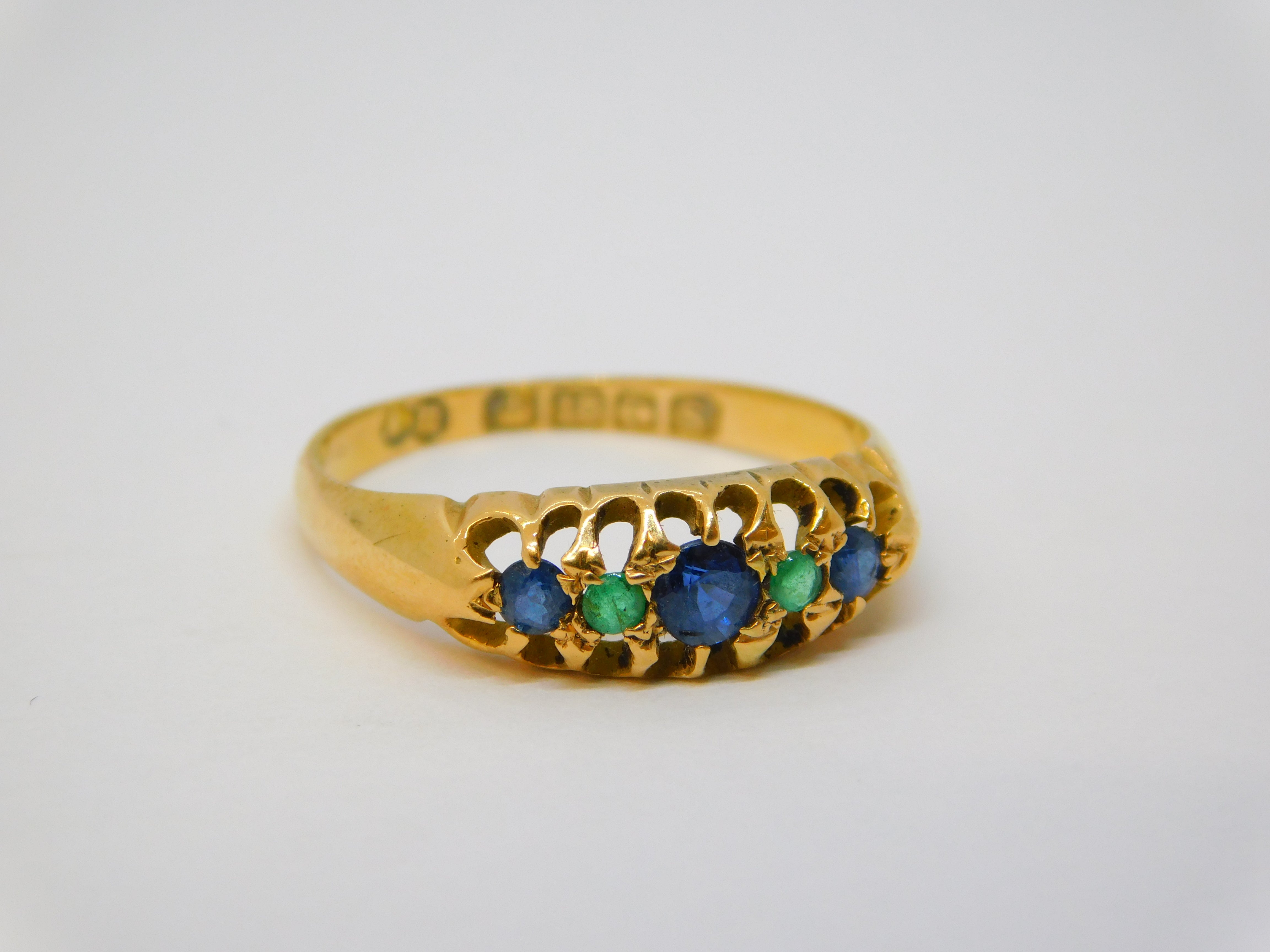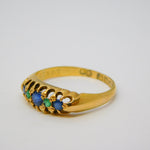 18ct Yellow Gold Sapphire & Emerald Boat Ring Antique 1917 Birmingham