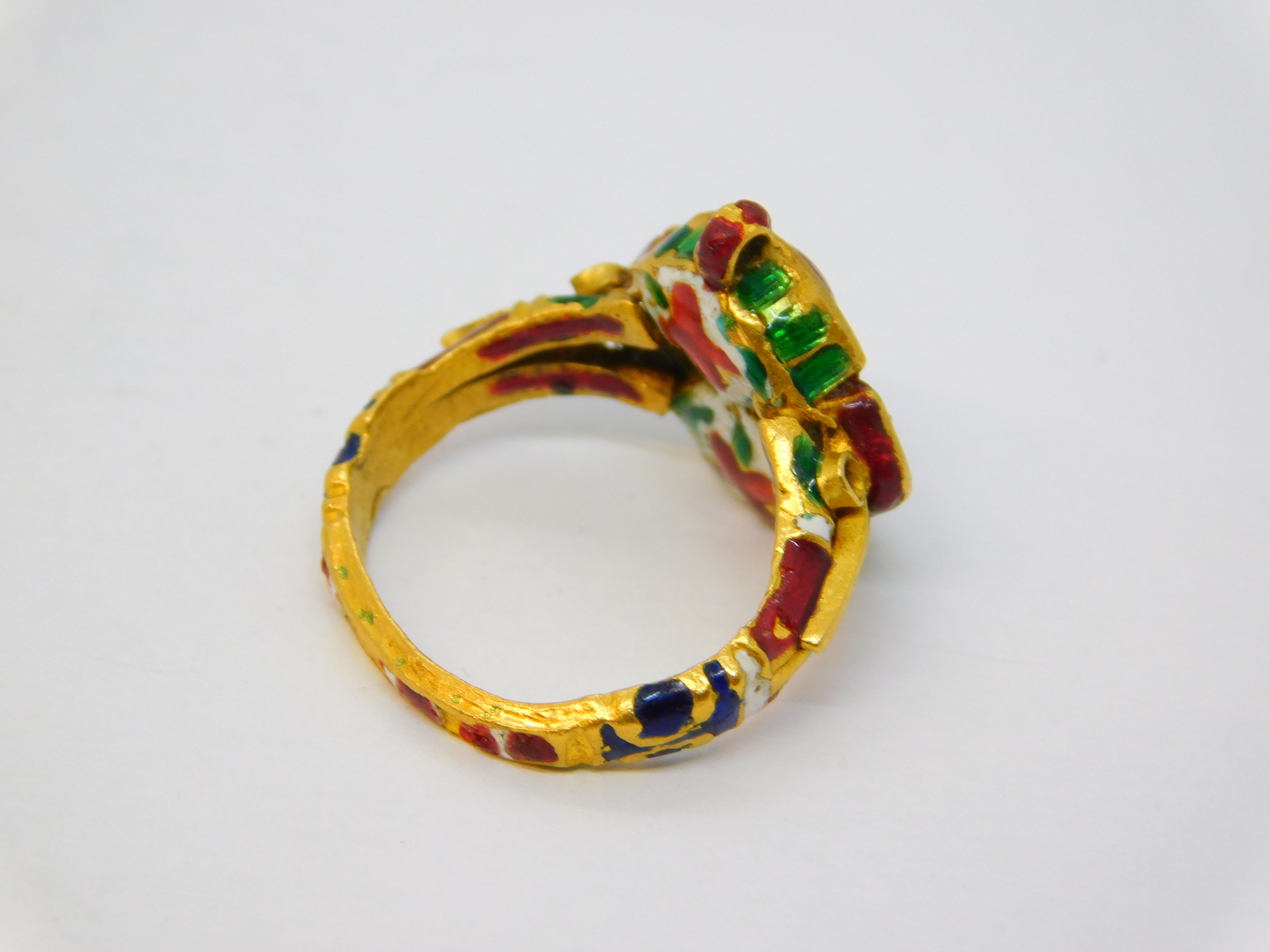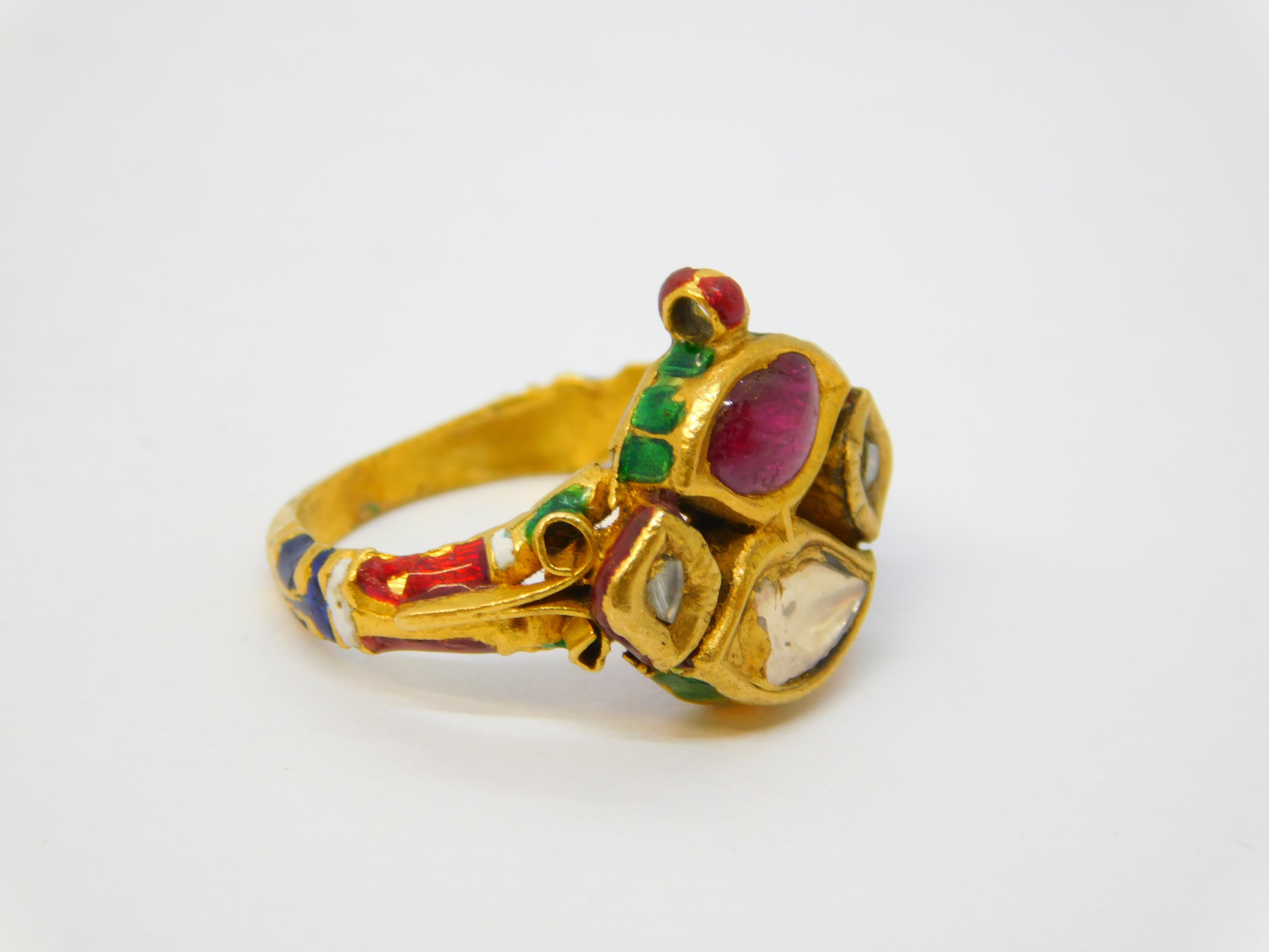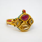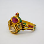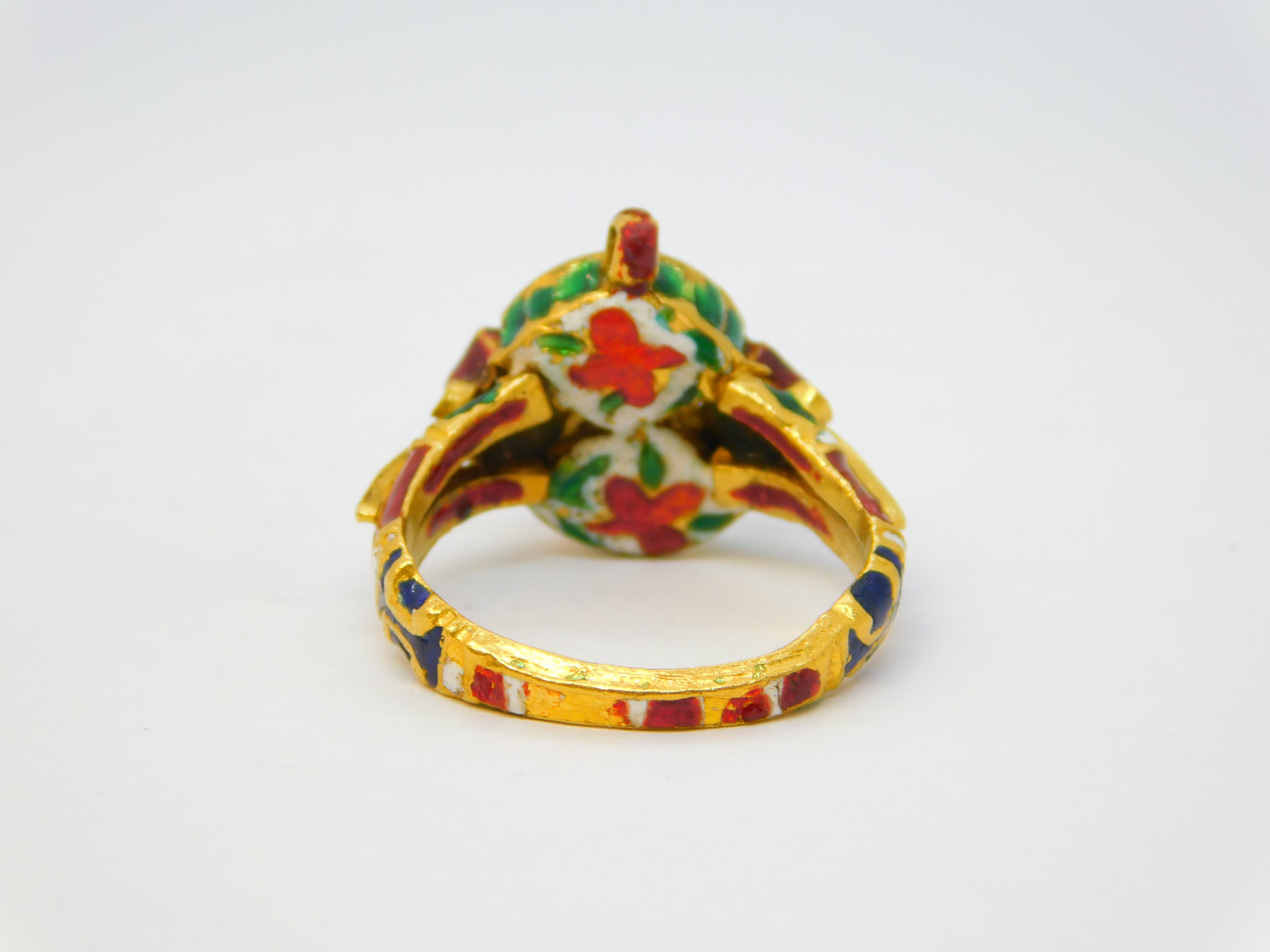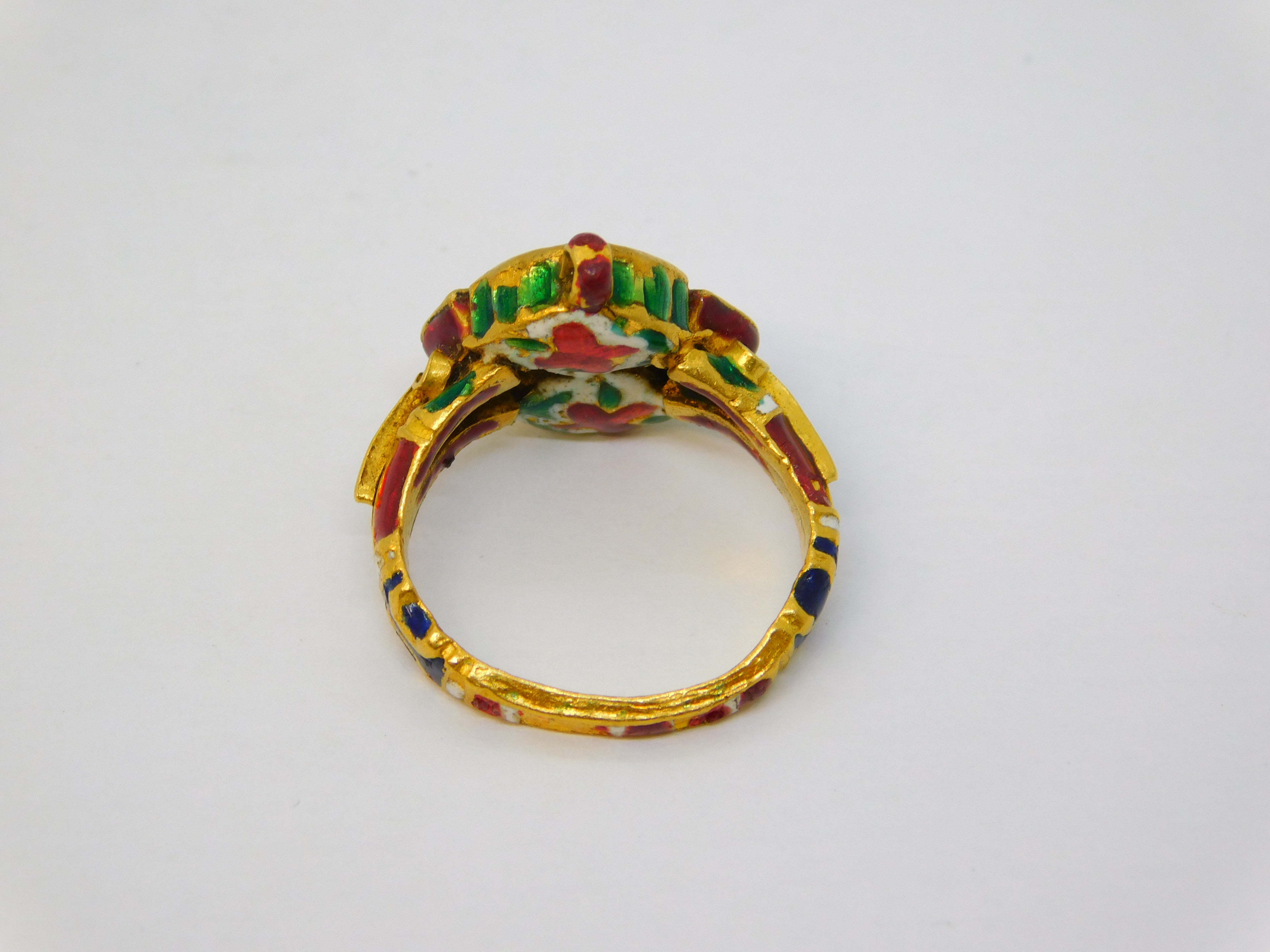 18th Century Mughal High-Carat Gold, Diamond, Ruby & Enamel Ring Antique Indian