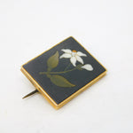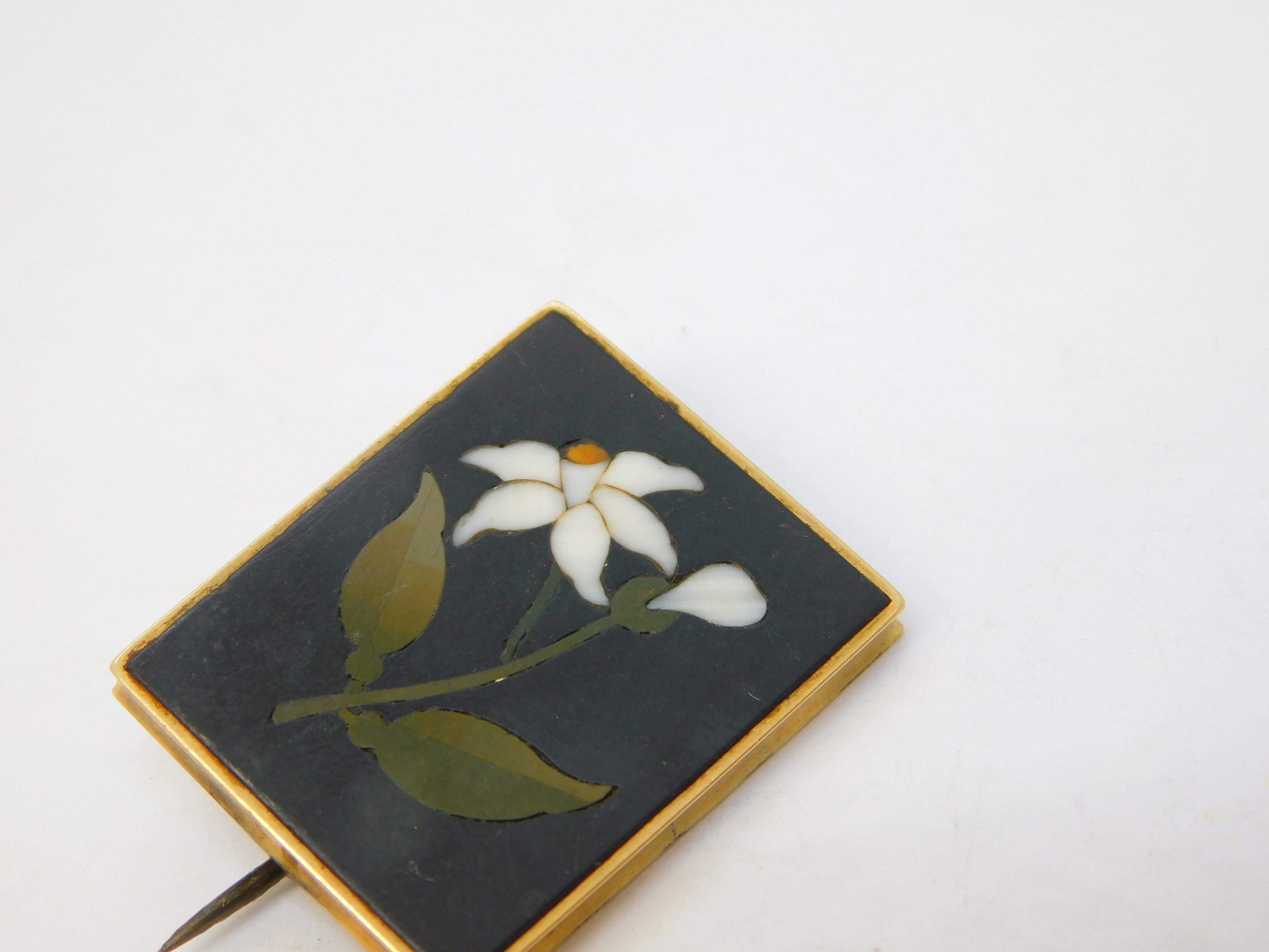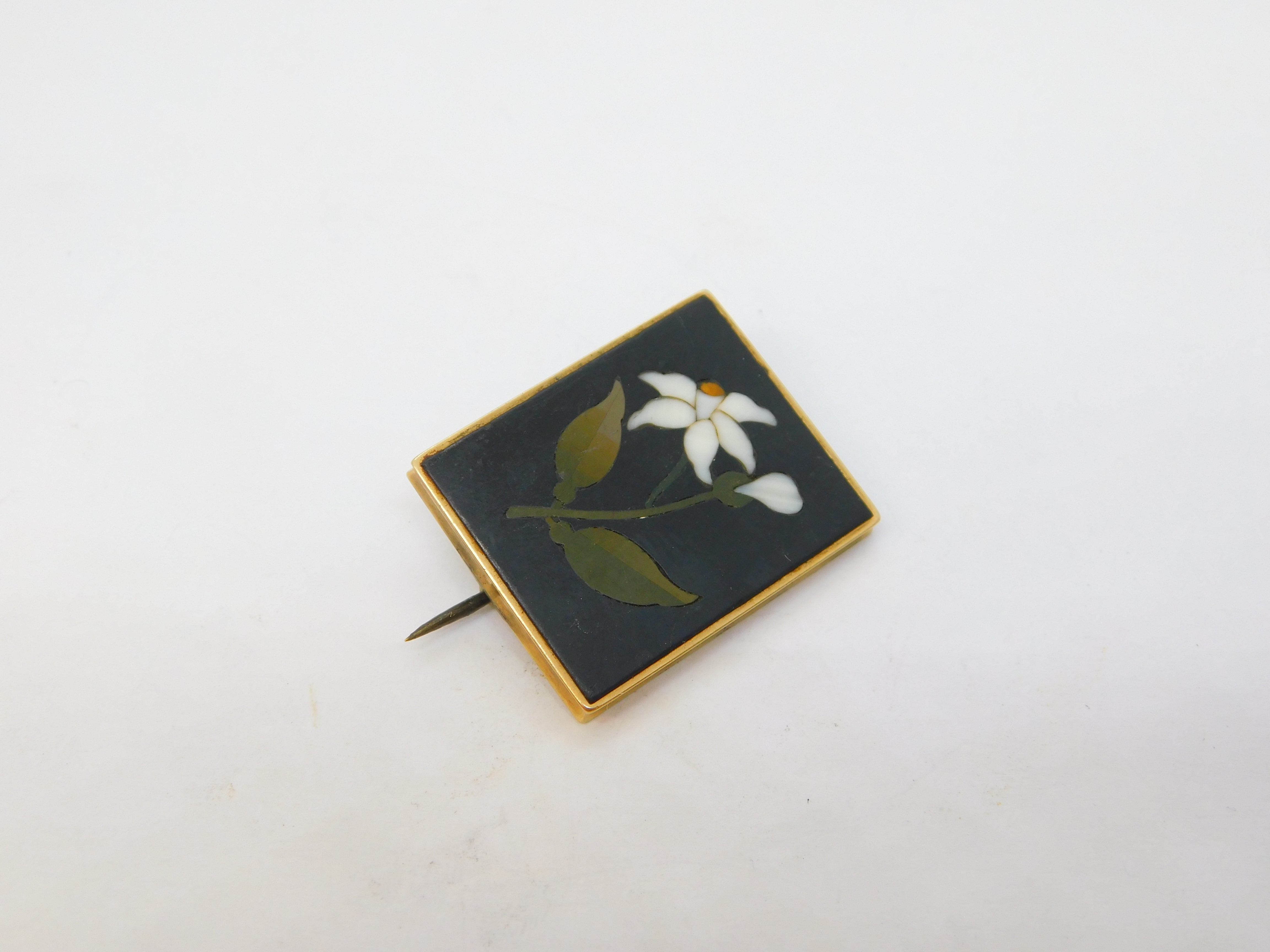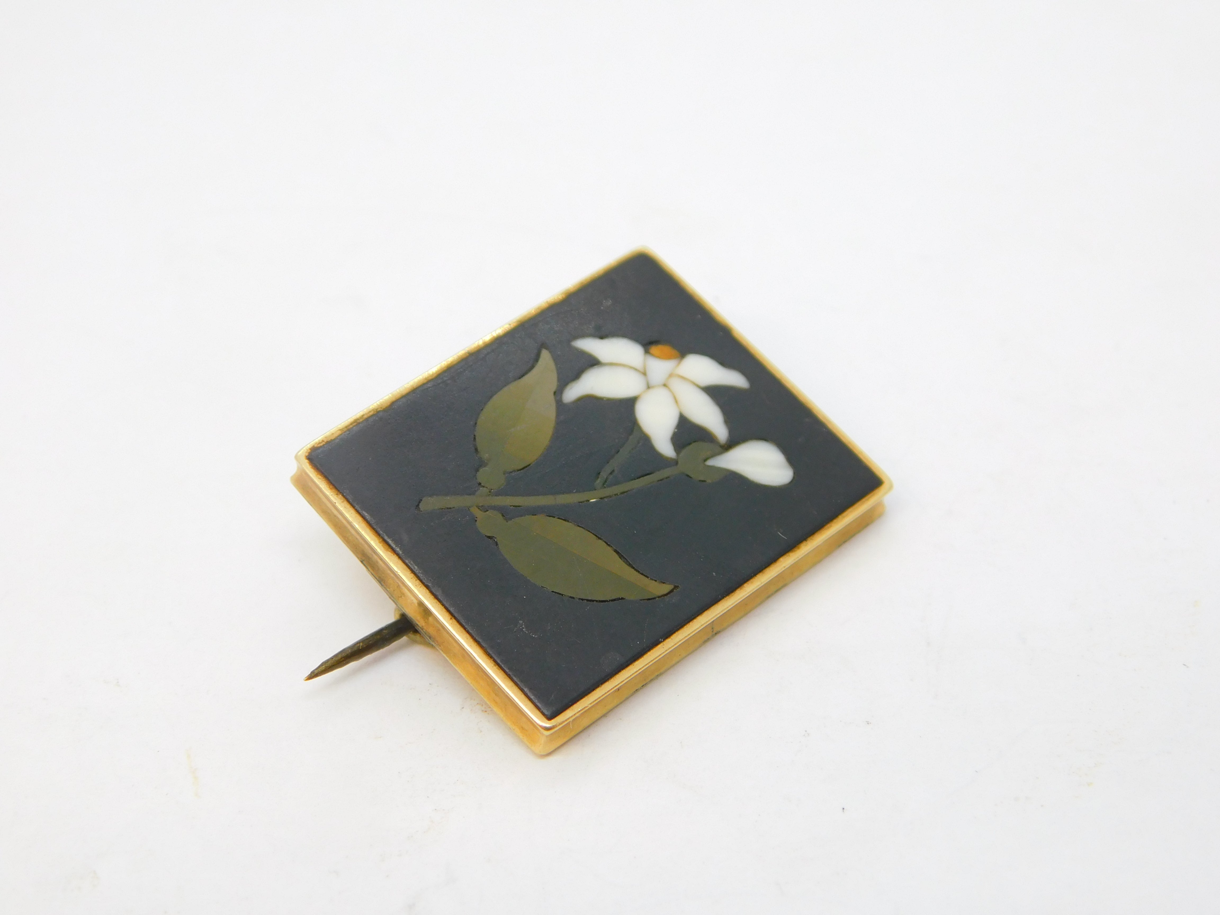 19th Century 15ct Gold Mounted Pietra Dura Lily Flower Brooch Antique c1880